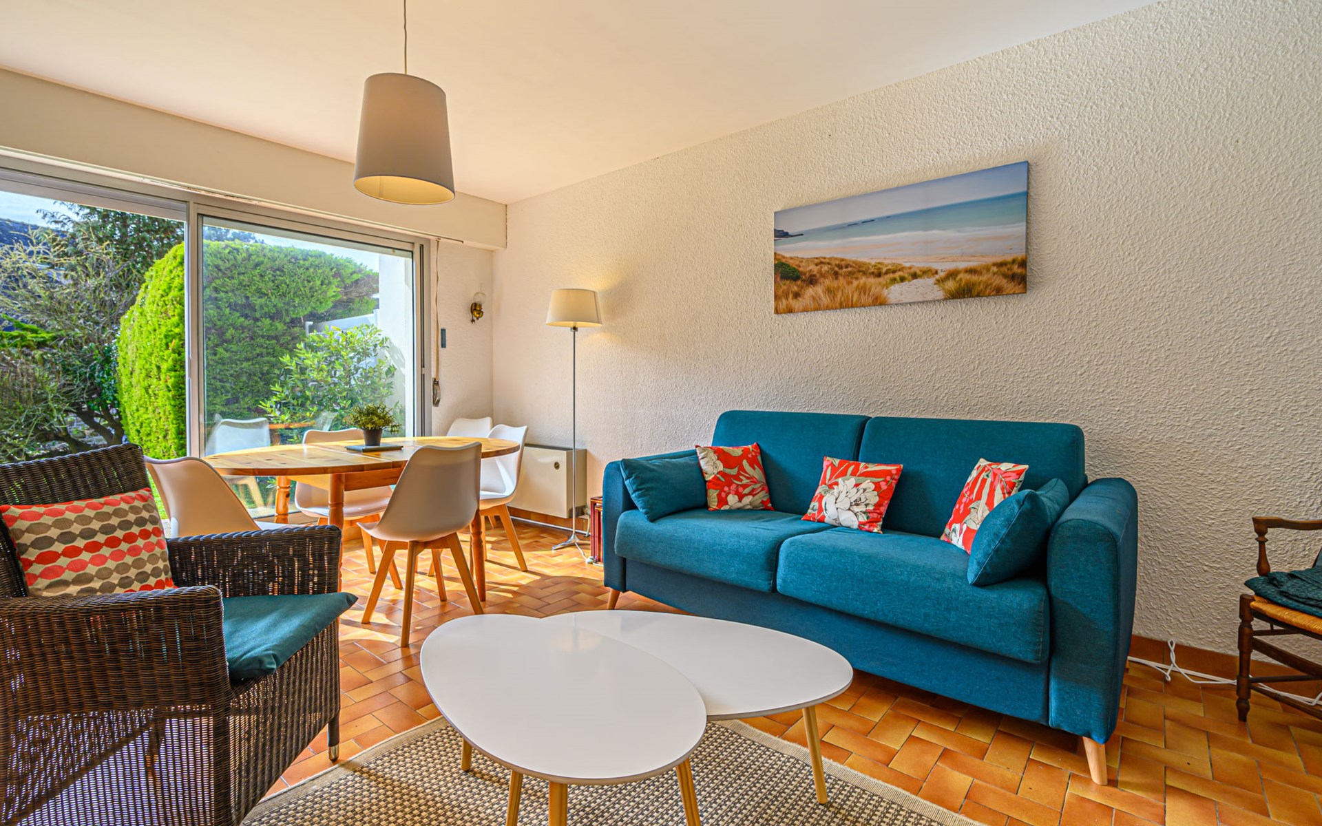 Residence "La Sauvagère", 2 storeys. On the outskirts, 500 m from the sea, from the beach, in a cul-de-sac. Shop 1.7 km, supermarket 150 m, restaurant 1.7 km, railway station "Auray" 17 km, sandy beach 500 m. Golf course (18 hole) 16 km, sailing school 4 km. Nearby attractions: Alignements de Carnac 4.6 km, La Trinité sur Mer 3 km, Presqu'Ile de Quiberon 16 km, Auray 16 km, Vannes 32 km, Lorient 53 km. Hiking paths: Le Golfe du Morbihan, Belle île en Mer, Houat, Hoedic.