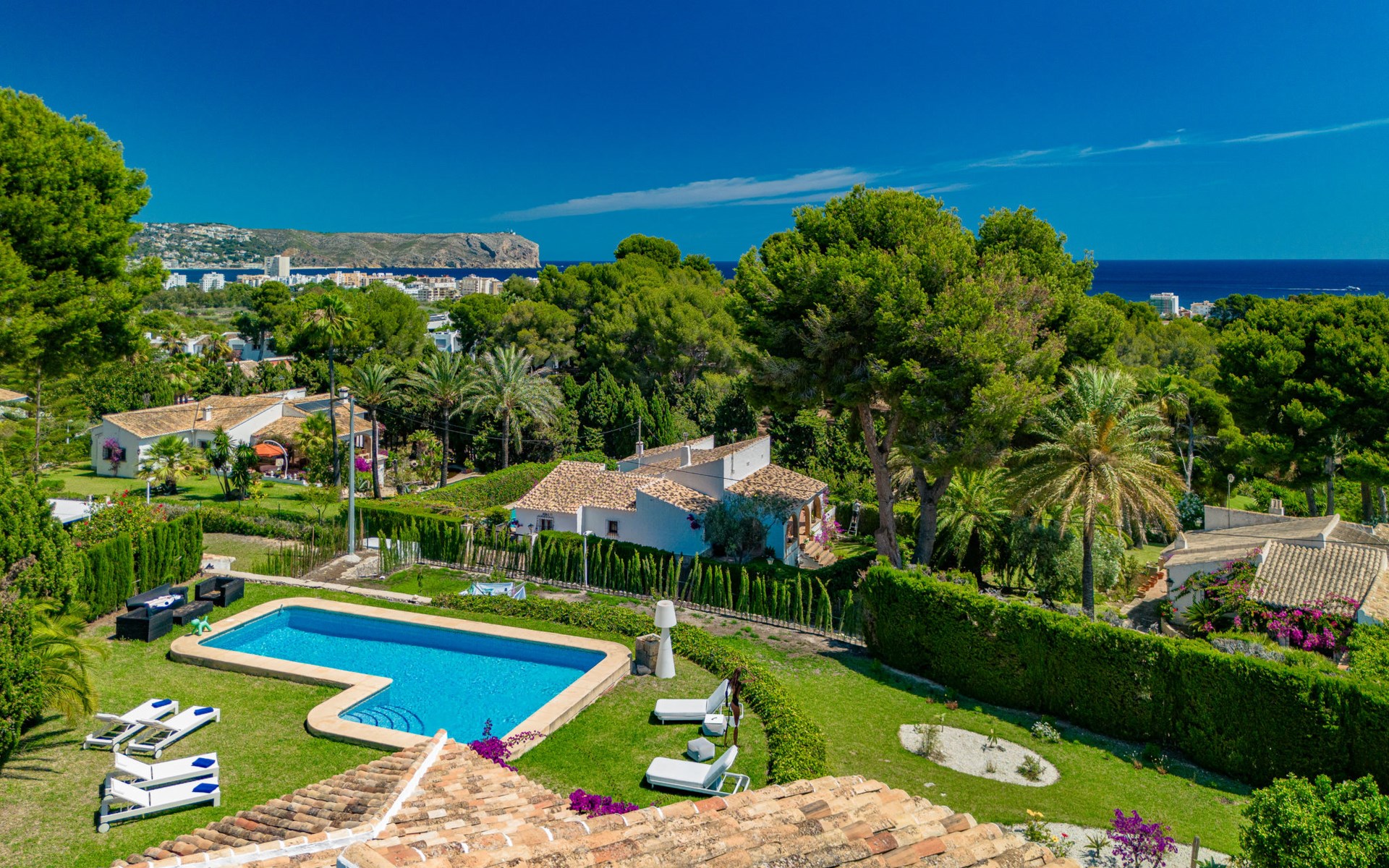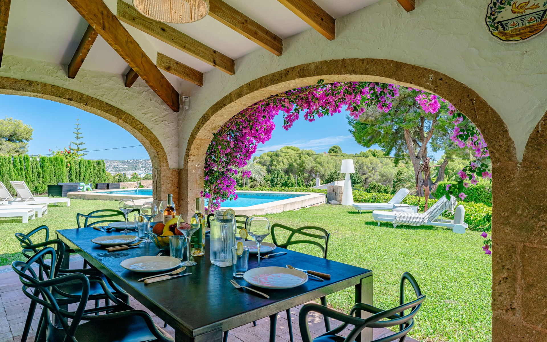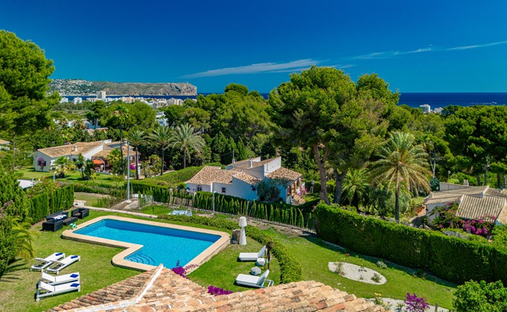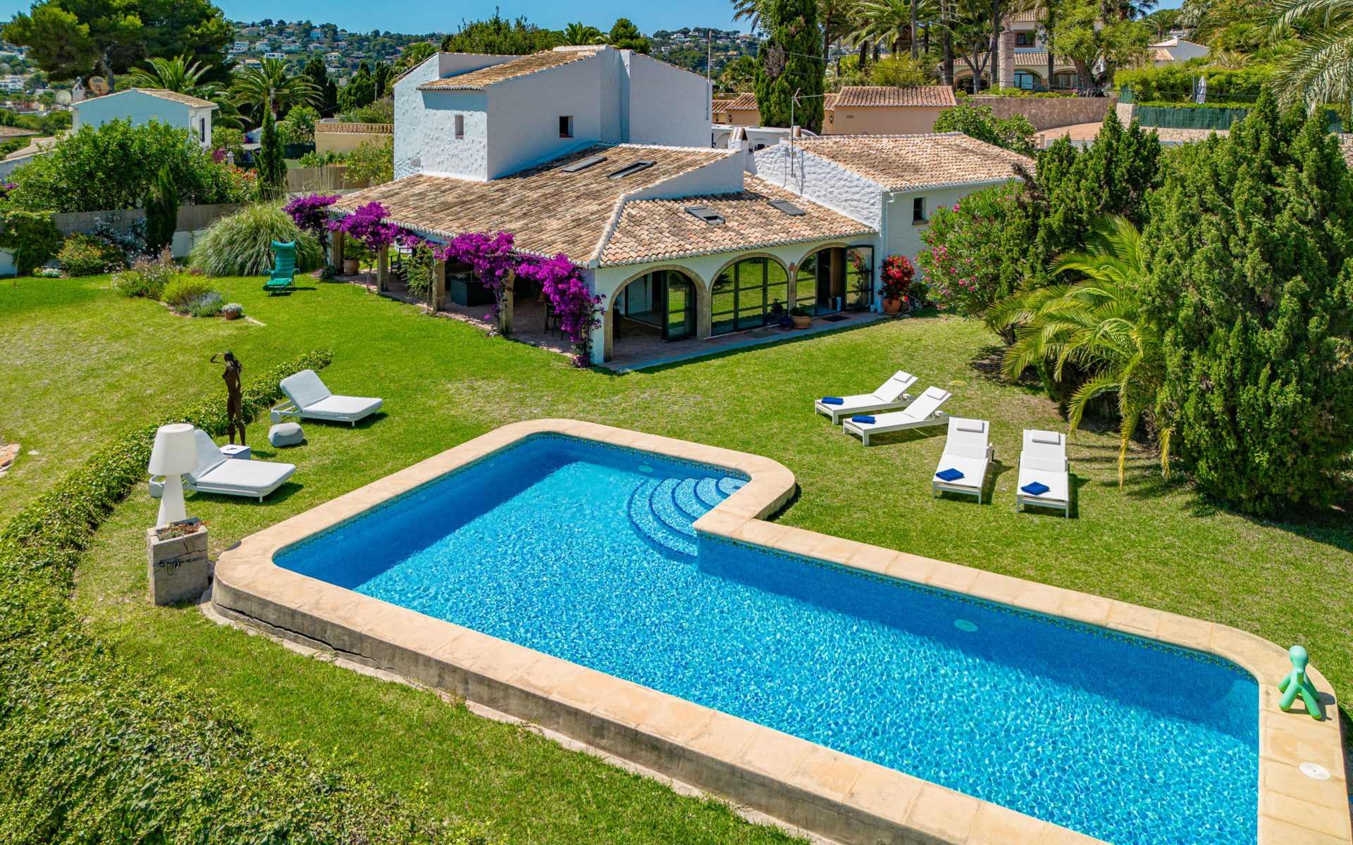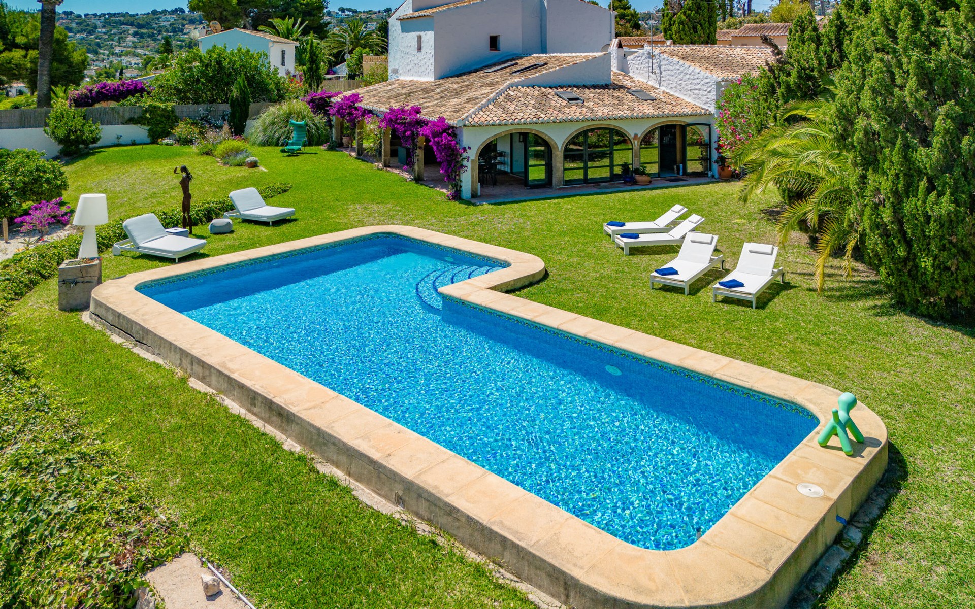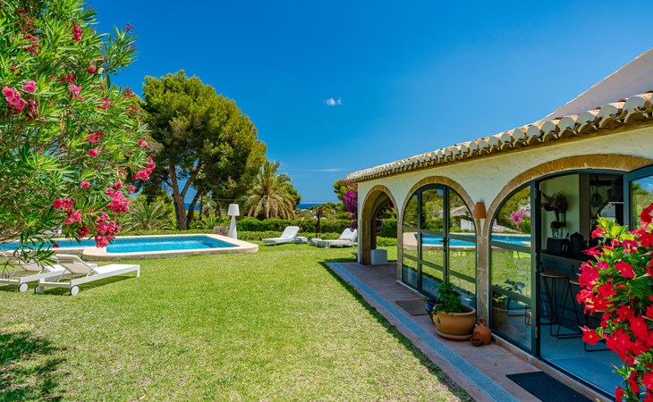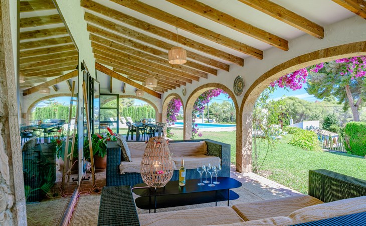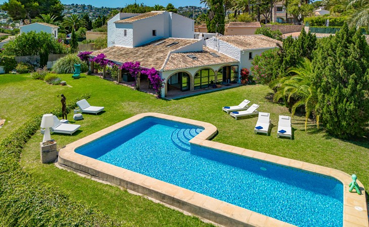 Large, beautiful, comfortable villa "Javea Beauty". In the district of El Tosalet, in a quiet, sunny position, in a cul-de-sac. Private: natural state property, large, beautiful, well-kept garden, lawn for sunbathing, swimming pool angular (10 x 6 m, depth 140 - 210 cm, seasonal availability: 01.Jan. - 31.Dec.) with internal staircase. Outdoor shower, patio, pergola, parking (for 3 cars). Supermarket 600 m, restaurant 350 m, café 600 m, bus stop 2 km, sandy beach "El Arenal Javea" 2.2 km. Sports harbour 2.5 km, surf school 2.5 km, sailing school 2.5 km, tennis 2.5 km. Please note: not suitable for small children. The owner does not accept any youth groups.