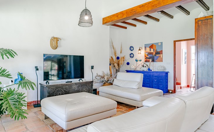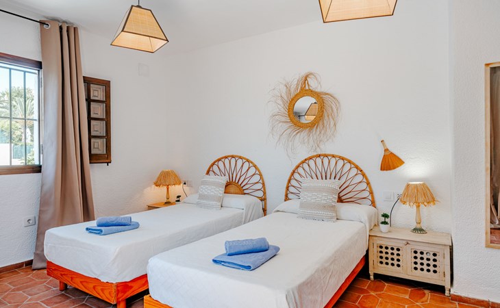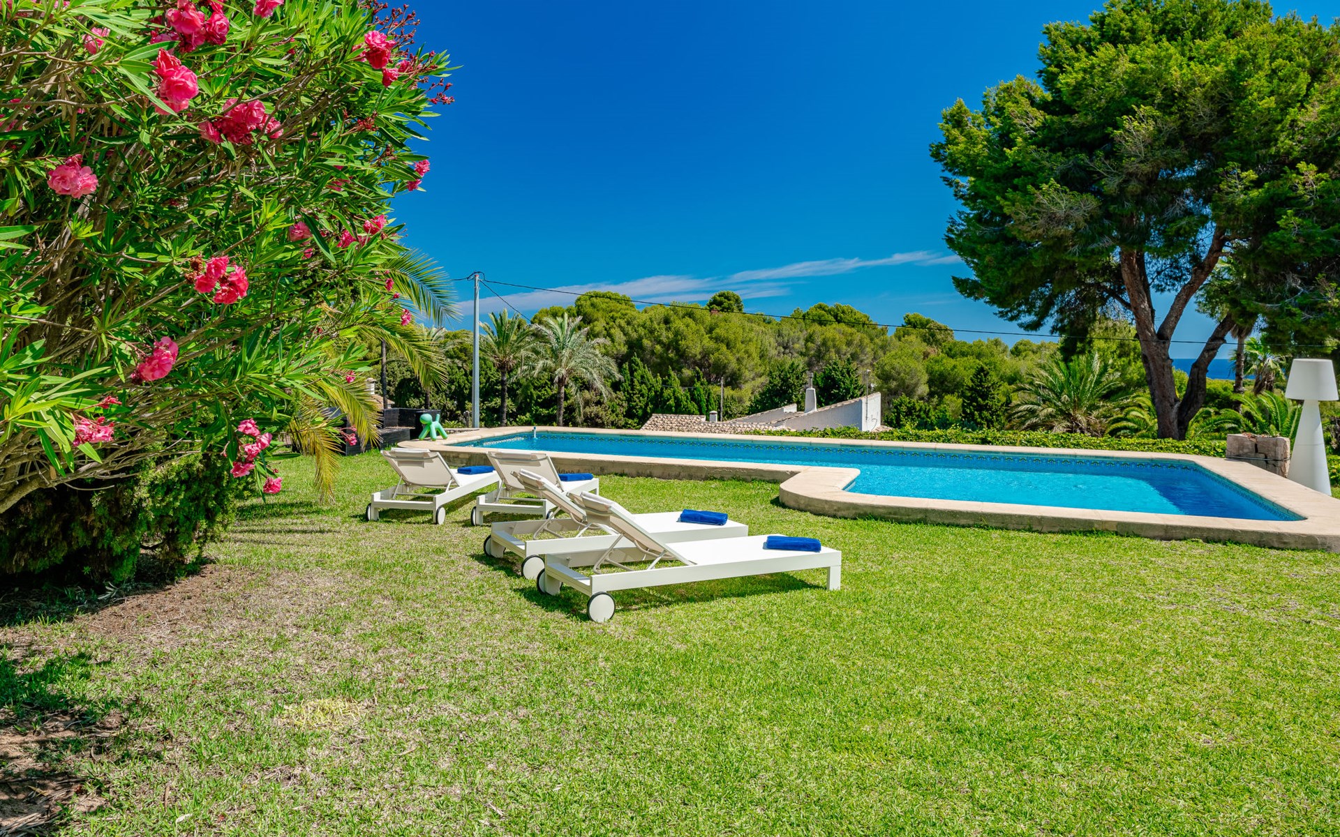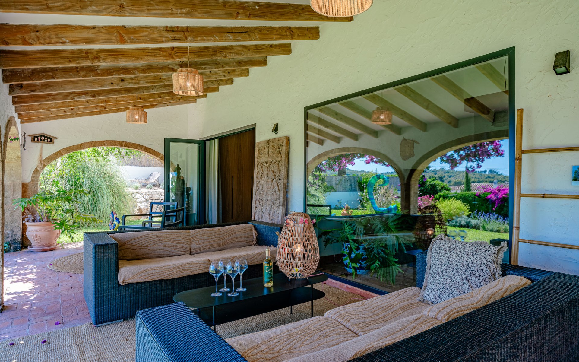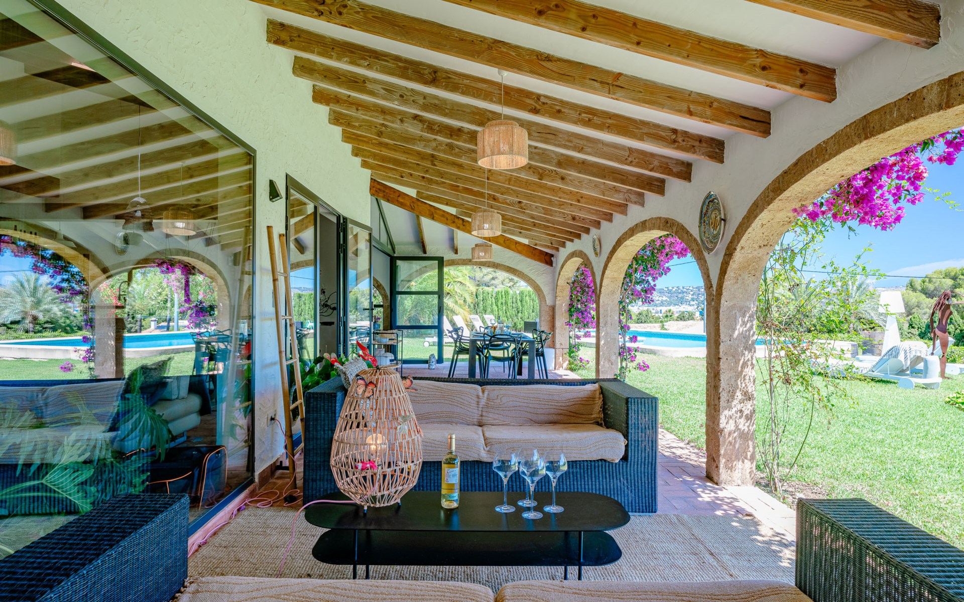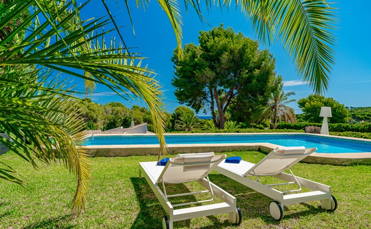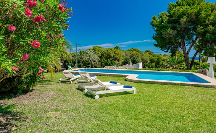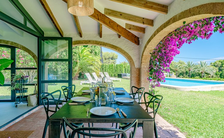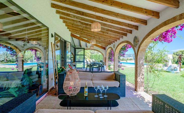 Large, beautiful, comfortable villa "Javea Beauty". In the district of El Tosalet, in a quiet, sunny position, in a cul-de-sac. Private: natural state property, large, beautiful, well-kept garden, lawn for sunbathing, swimming pool angular (10 x 6 m, depth 140 - 210 cm, seasonal availability: 01.Jan. - 31.Dec.) with internal staircase. Outdoor shower, patio, pergola, parking (for 3 cars). Supermarket 600 m, restaurant 350 m, café 600 m, bus stop 2 km, sandy beach "El Arenal Javea" 2.2 km. Sports harbour 2.5 km, surf school 2.5 km, sailing school 2.5 km, tennis 2.5 km. Please note: not suitable for small children. The owner does not accept any youth groups.