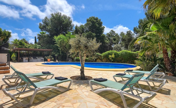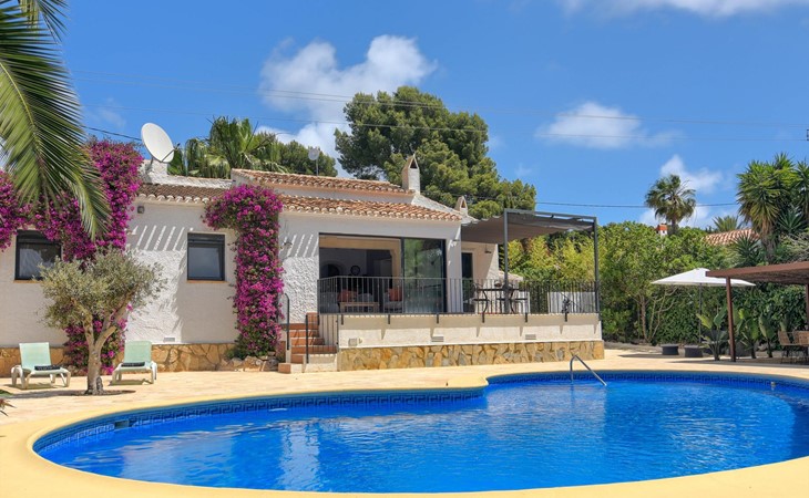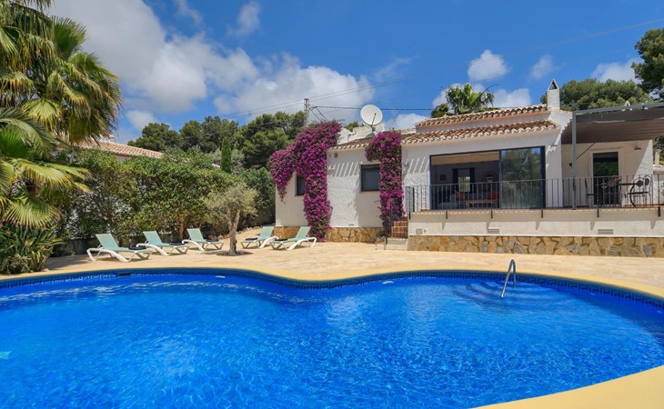 Beautiful and comfortable villa in Javea, on the Costa Blanca, Spain with private pool for 4 persons. The house is situated in a residential beach area and at 3 km from Cala de la Barraca, Javea beach.
