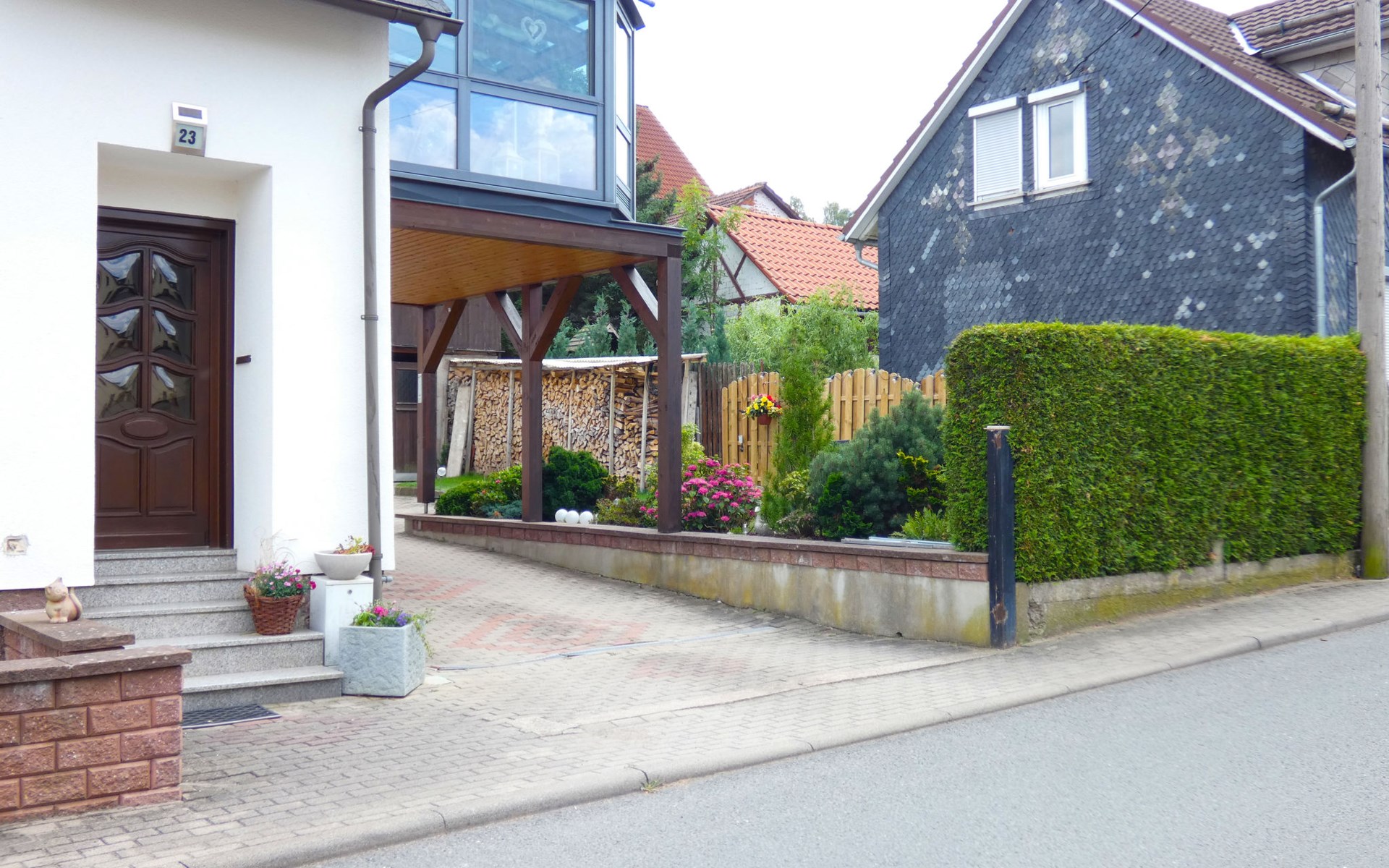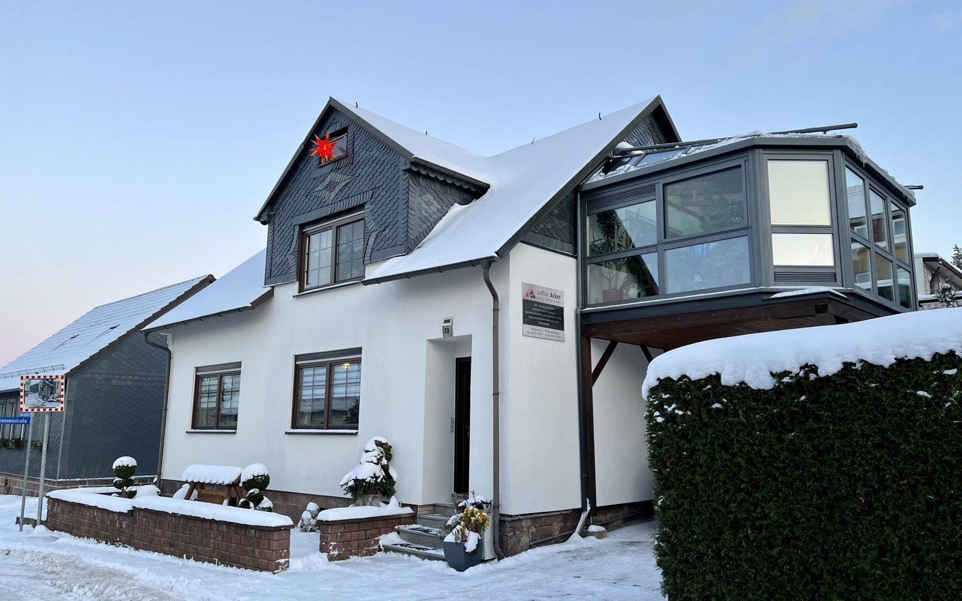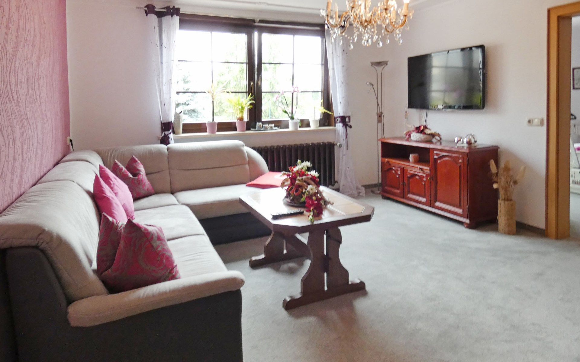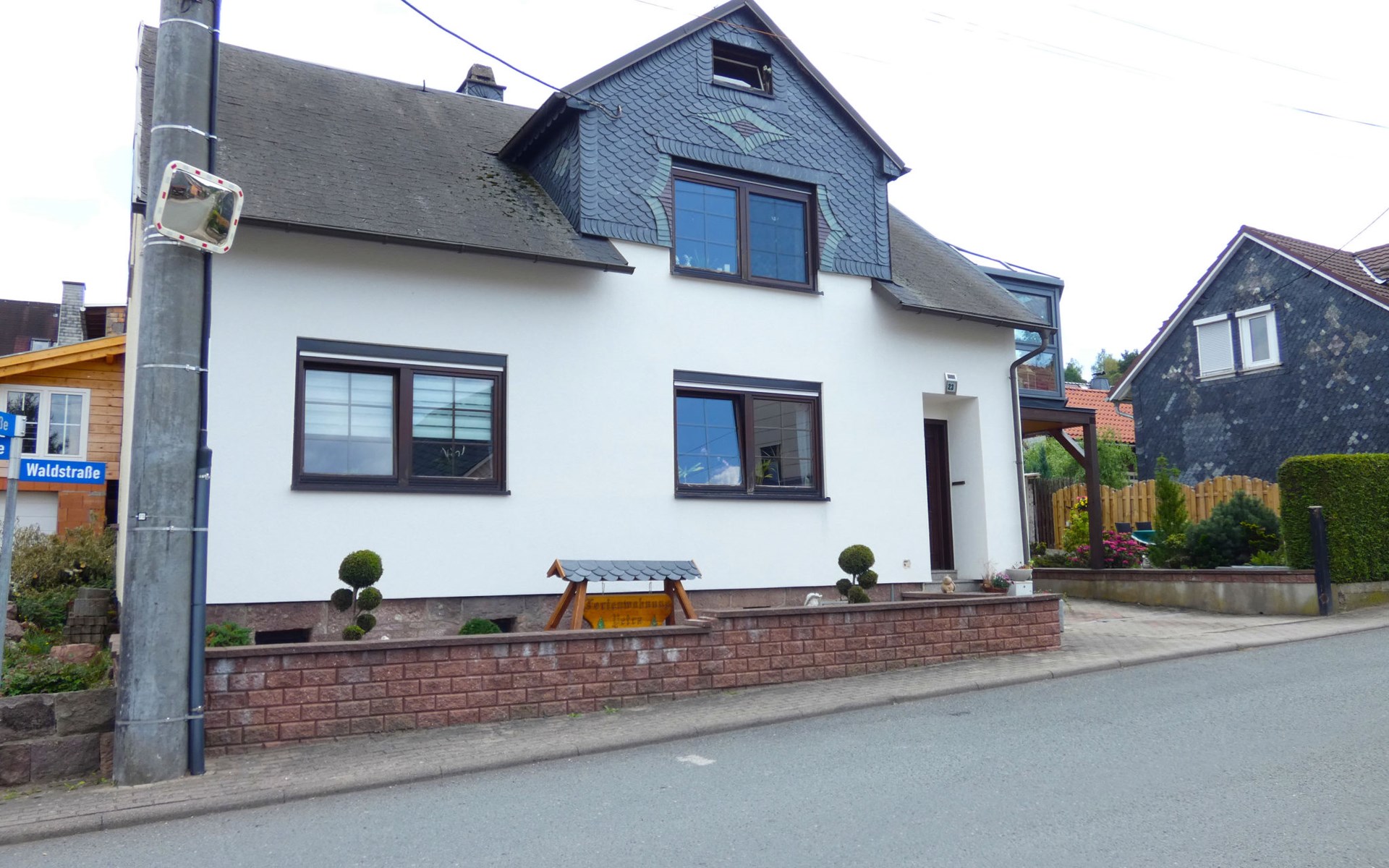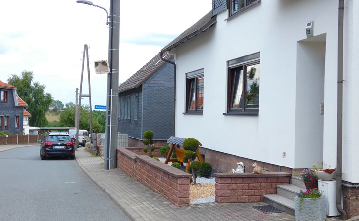 Frankenhain 5 km from Geschwenda: 2-family house "Petra". In the resort 500 m from the centre of Frankenhain, in a quiet position, 300 m from the edge of the forest, 5 km from the lake. Parking at the house. Shop 300 m, grocery 300 m, supermarket 3 km, shopping centre 3 km, restaurant 300 m, bus stop 200 m, railway station "Gräfenroda" 3 km, outdoor swimming pool 15 km, indoor swimming pool 15 km, bathing lake 5 km. Golf course (18 hole) 26 km, ski lift 15 km, chair lift 15 km, skisport facilities 15 km, slopes 15 km, ski rental 15 km, ski school 15 km, cross country ski track 500 m. Well-known ski regions can easily be reached: Oberhof 15 km. Well-known lakes can easily be reached: Talsperre Lütsche 5 km, Talsperre Ohra 13 km.