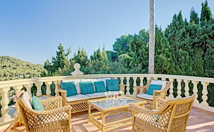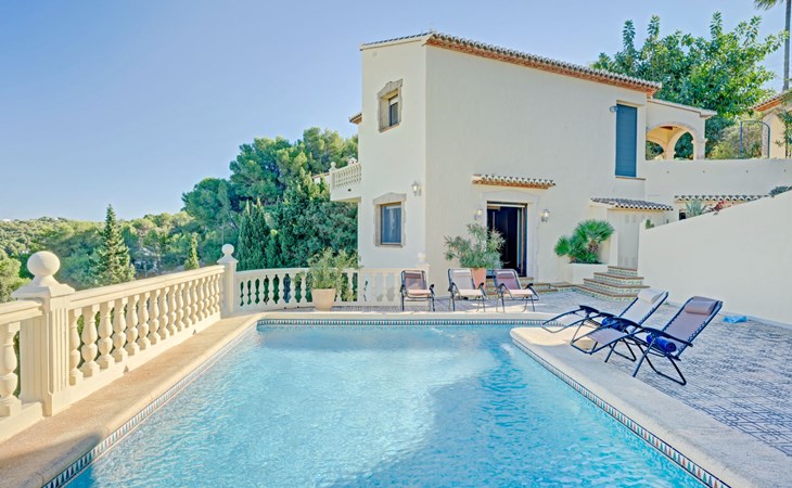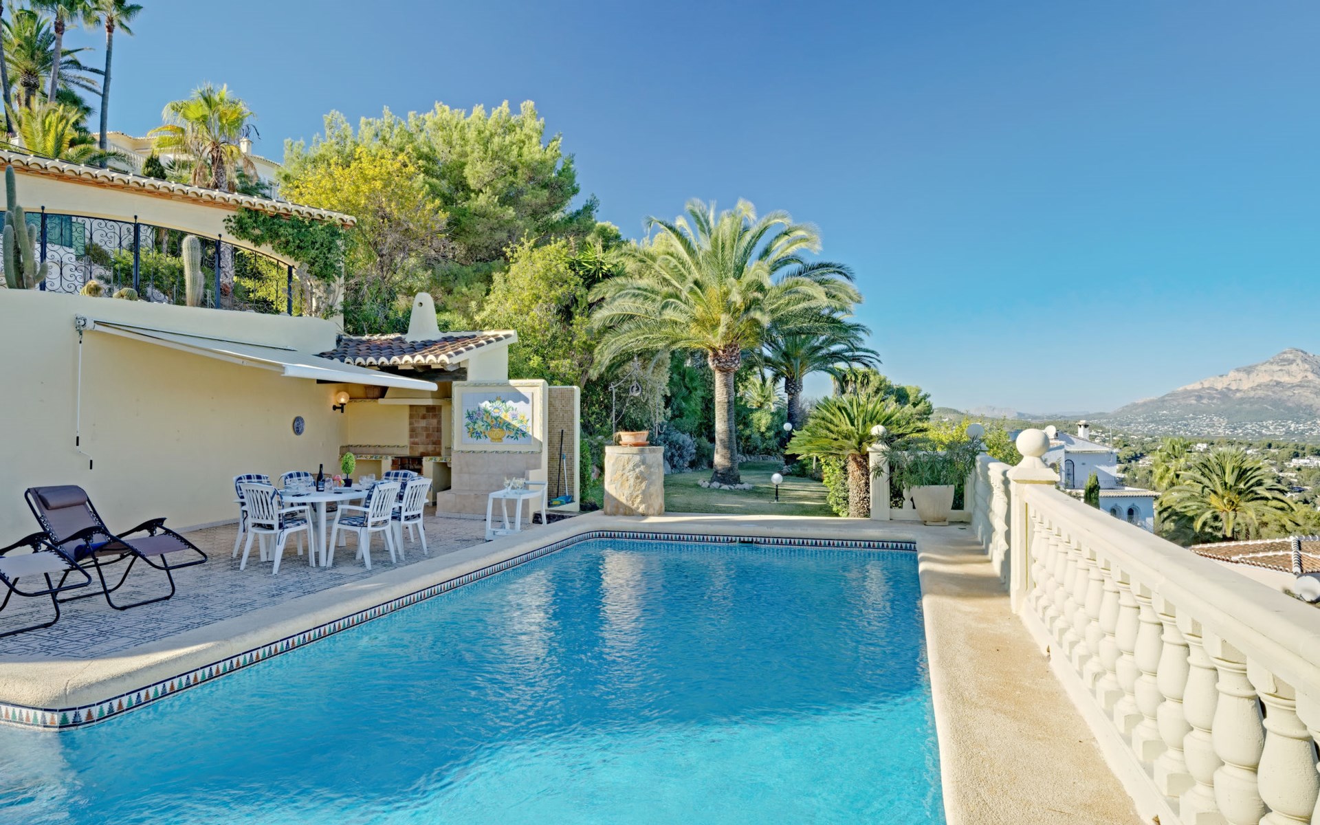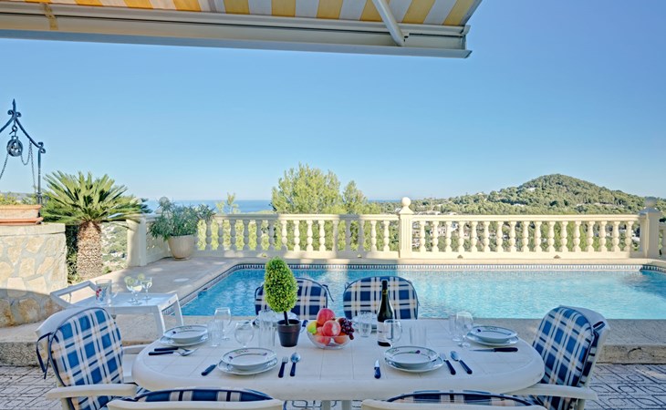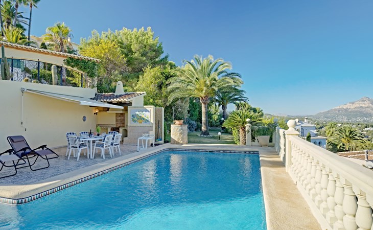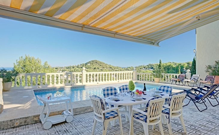 Very large, very beautiful, comfortable villa "Zamorita", 2 storeys. Costa Nova Panorama, in a quiet, sunny position, 1.5 km from the sea, 3 km from the beach. Private: large, beautiful terraced garden with lawn and trees, swimming pool angular (8 x 4 m, depth 40 - 210 cm, seasonal availability: 01.Jan. - 31.Dec.) with internal staircase. Outdoor shower, garden furniture, barbecue, parking on the premises. Supermarket 2.4 km, restaurant 450 m, café 2.4 km, bus stop "Parada Toscamar" 2.5 km, sandy beach "El Arenal" 4 km, shingle beach "El Portitxol La Barraca" 3 km, rocky beach "Cala Blanca Segundo Muntanyar" 3 km. Surf school 4 km, sailing school 4 km, tennis 4.2 km. The owner does not accept any youth groups.