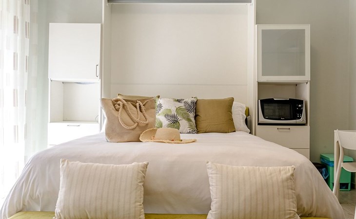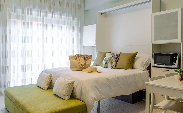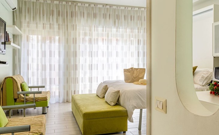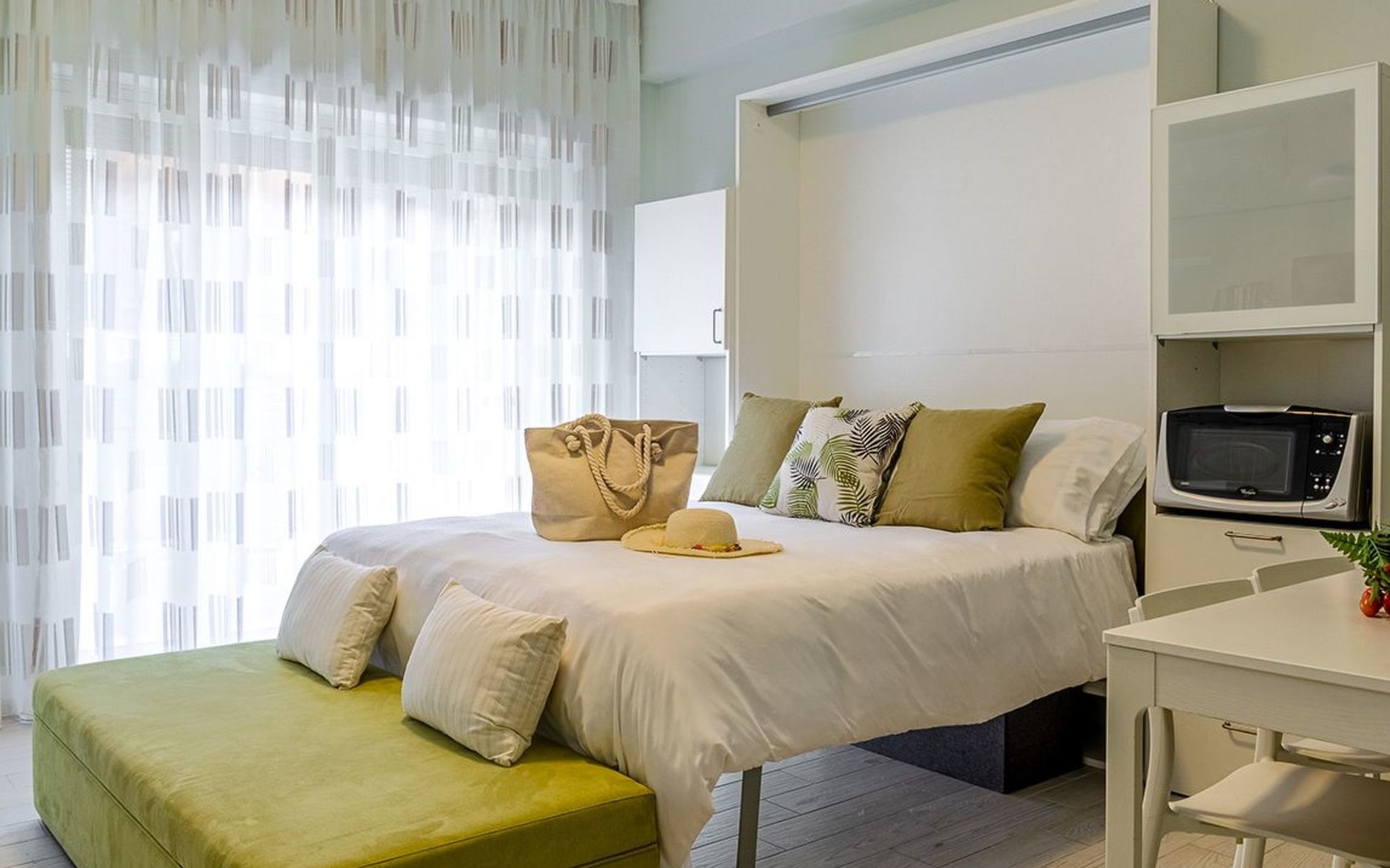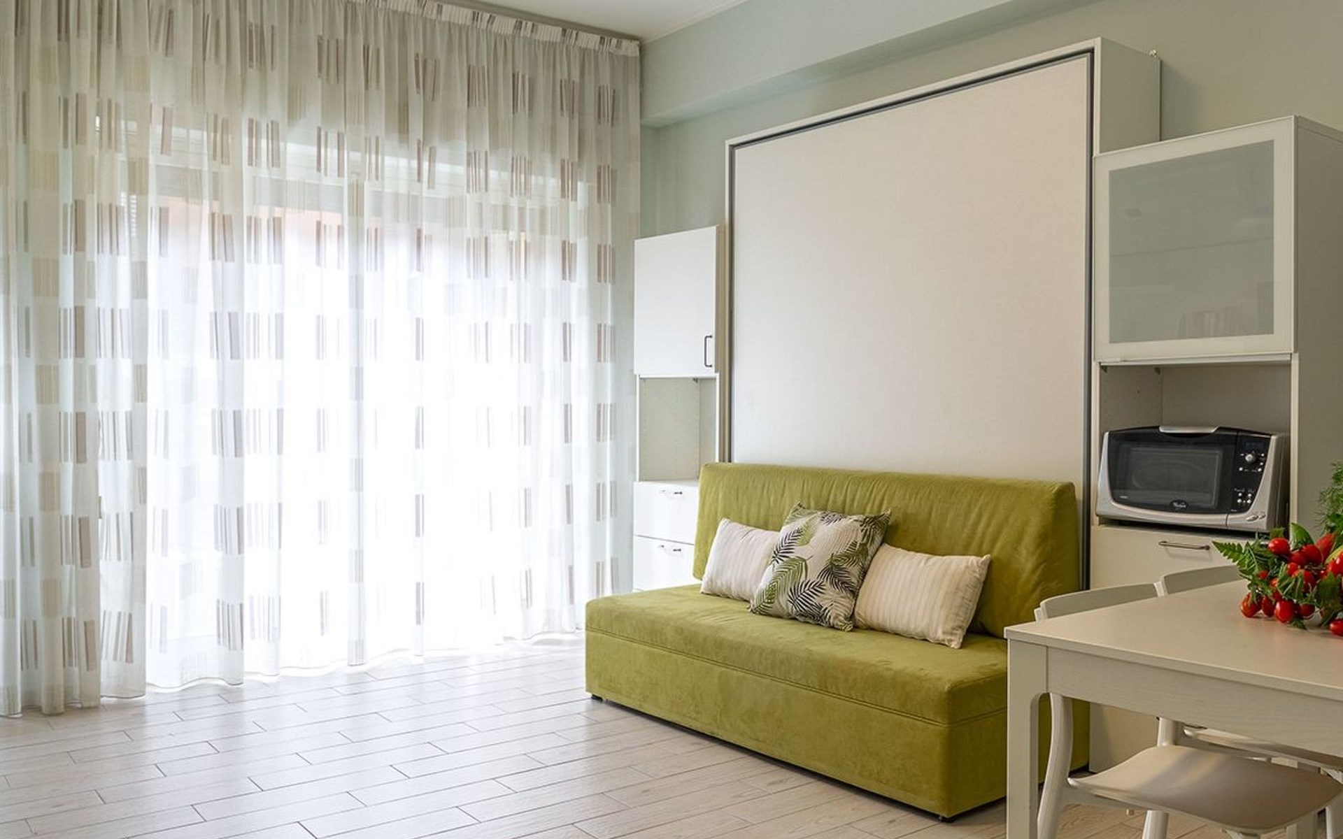 The interior of the flat is designed to offer maximum comfort during your stay. Equipped with partial air conditioning, the accommodation includes a well-organised living area with a flat-screen TV, ideal for your entertainment after a day at the beach. In addition, the presence of a full kitchen and cooking utensils will allow you to prepare delicious meals when you prefer to eat at home. There is also a washing machine for your exclusive use to take care of your wardrobe during your holiday and a dishwasher for easy cleaning.