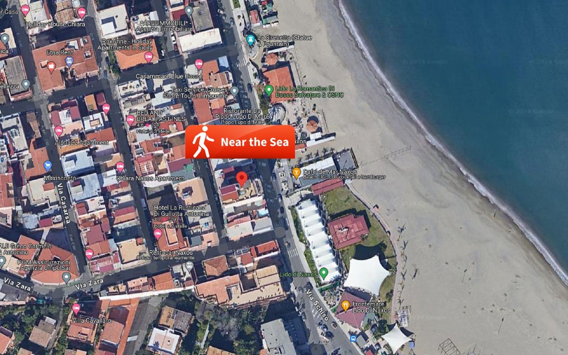 The location of Carmel by the Sea-Giardini Naxos is strategic: situated only 10 metres from the beach, it allows you to reach the golden sands and azure waters in less than a minute's walk, while the sea is only 50 metres away. The flat is also within easy reach of useful amenities such as grocery shops, located 50 metres away, and the nearest centre is only a 100-metre walk away, offering easy access to a variety of restaurants, cafes and shops.