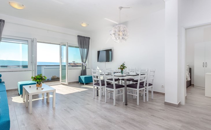 The villa is located in a quieter location in Dramalj, near Crikvenica. It is close to the beach, cafes, shops, and restaurants. In the evenings, you can enjoy the frequently organized events and parties on the beach.