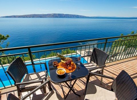 You can enjoy the wonderful view from the roofed balcony with garden furniture. Electric grill is available on request. Pool is available for all villas guests.