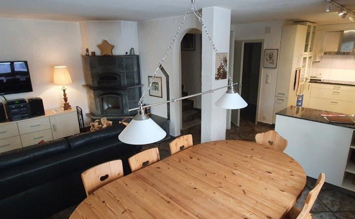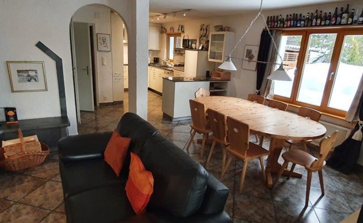1 double room on the upper floor, 1 gallery room with double bed and single bed incl. playroom for children on the upper floor, 1 double room on the upper floor, large new kitchen, fireplace with stove, living/dining room with dining table for 10 people and a conservatory, 1 bathroom/WC on the upper floor, 1 WC on the ground floor. TV, free wifi, 1 underground car park space with direct access to the house. Washing machine and tumble dryer are also available. Additional parking spaces in the long-term car park in Valbella.
