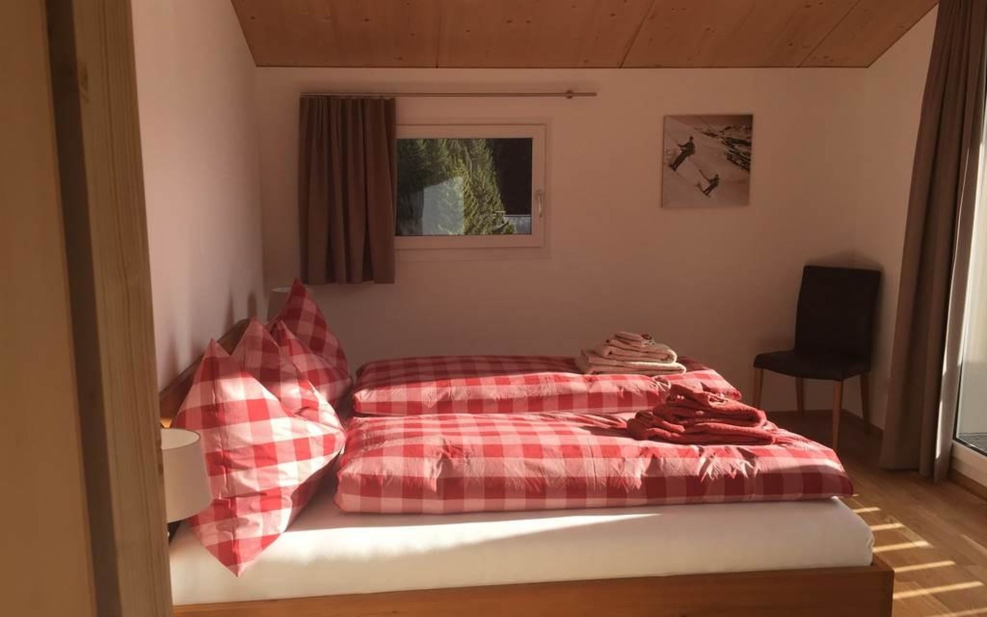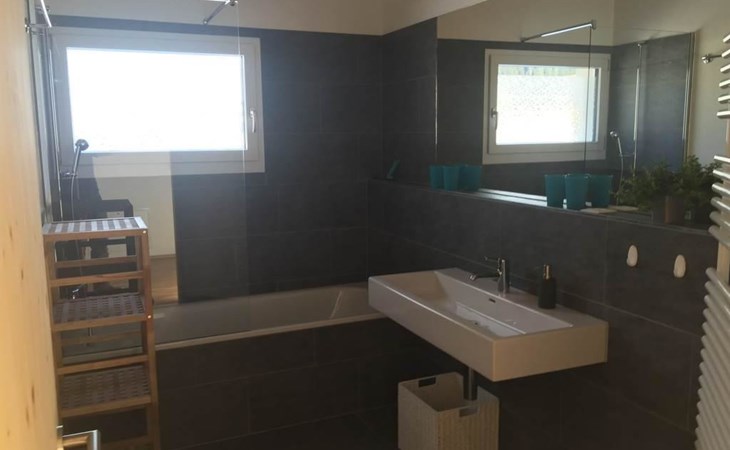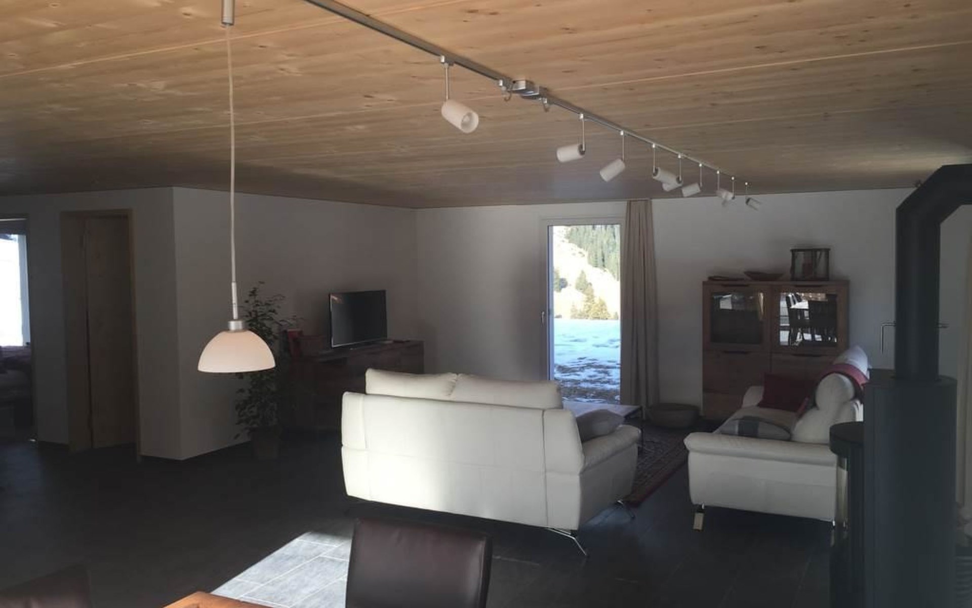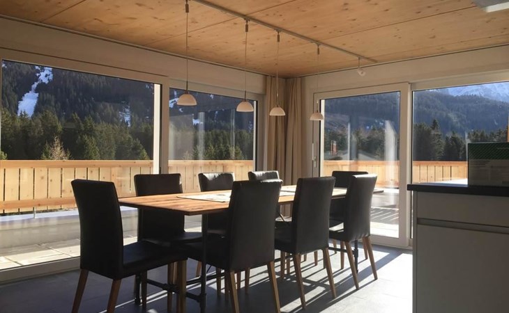 Modern architecture, stylish furniture, living room with wood stove, open modern kitchen, dining room for 8 people, 4 double bedrooms, 2 bathrooms, 2 large terraces, high-speed WiFi, flat screen TV, ski waxing room, bike wash station, horse pasture, Garage and Parking.