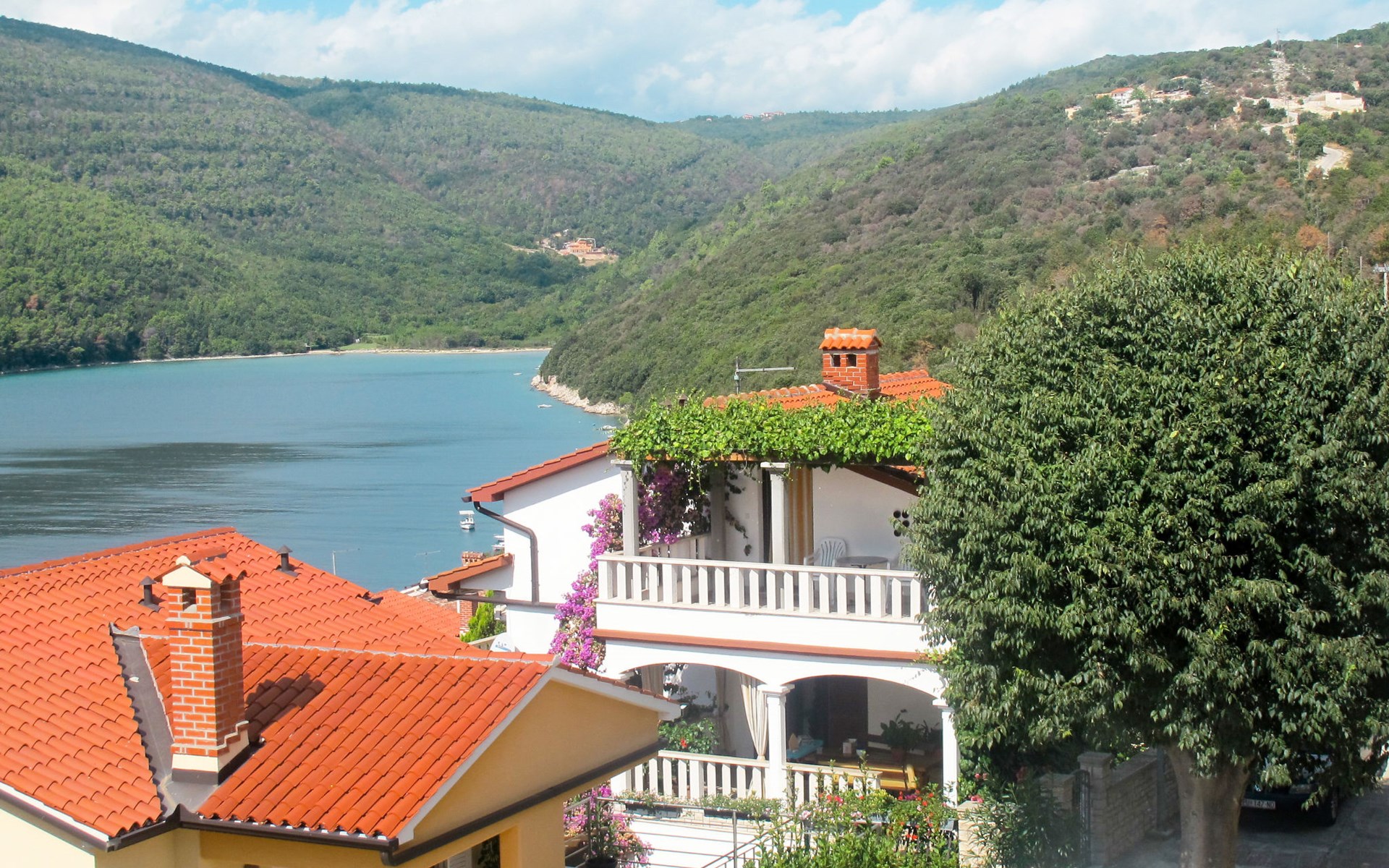 Single-family house "Violetta". Duga Luka Prtlog, 5 km from the centre of Labin, 200 m from the sea. For shared use: property (fenced) with plants and trees. In the house: internet access. Parking at the house on the premises. Shop 5 km, bus stop 5.7 km, pebble beach 400 m, rocky beach 200 m. Marina 11 km. Please note: private mooring (extra).