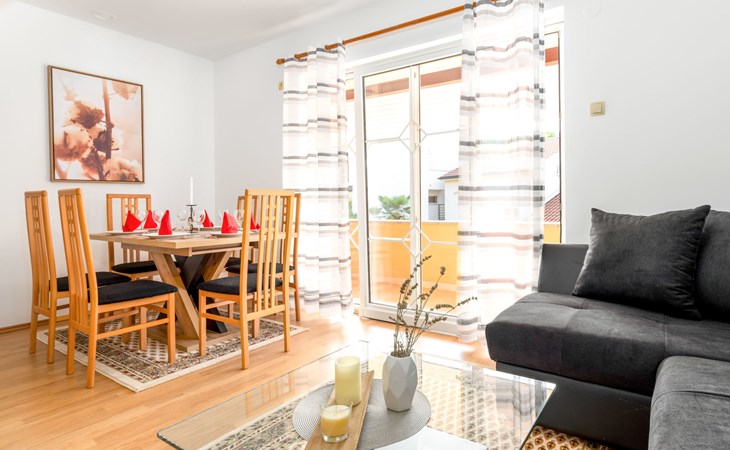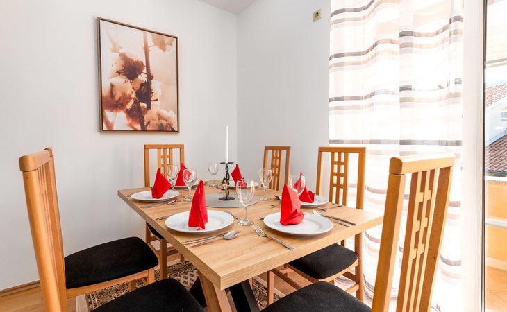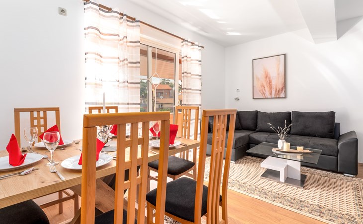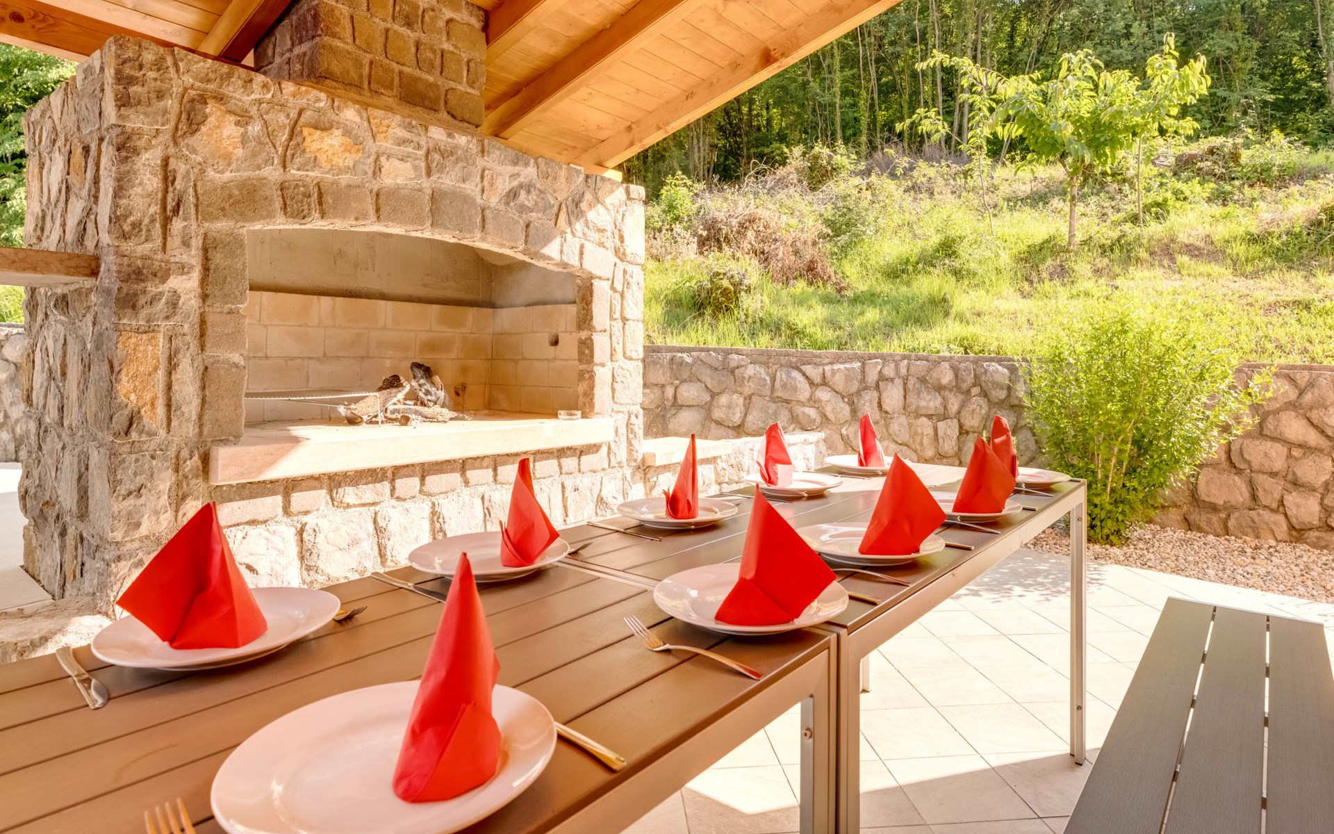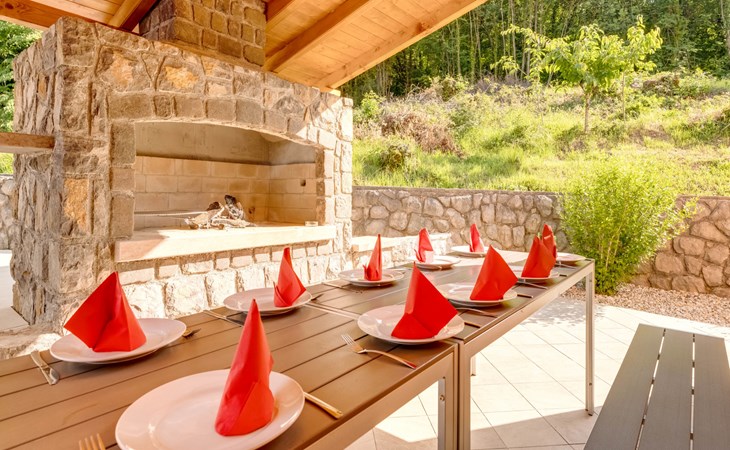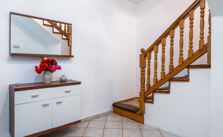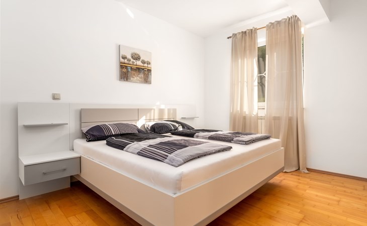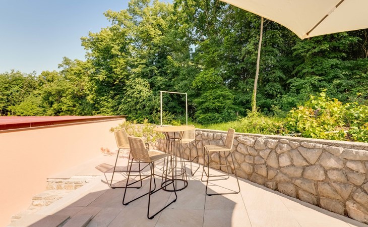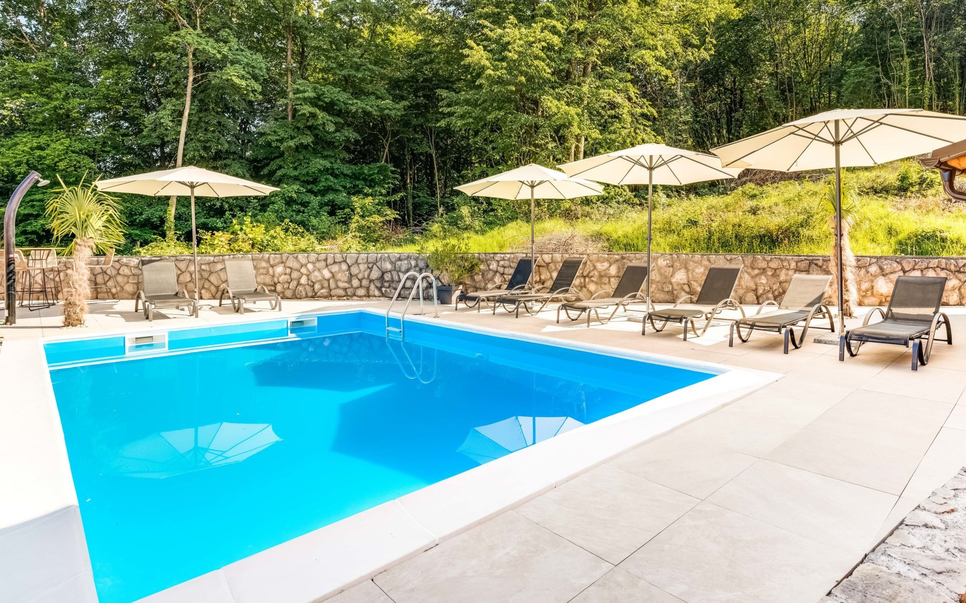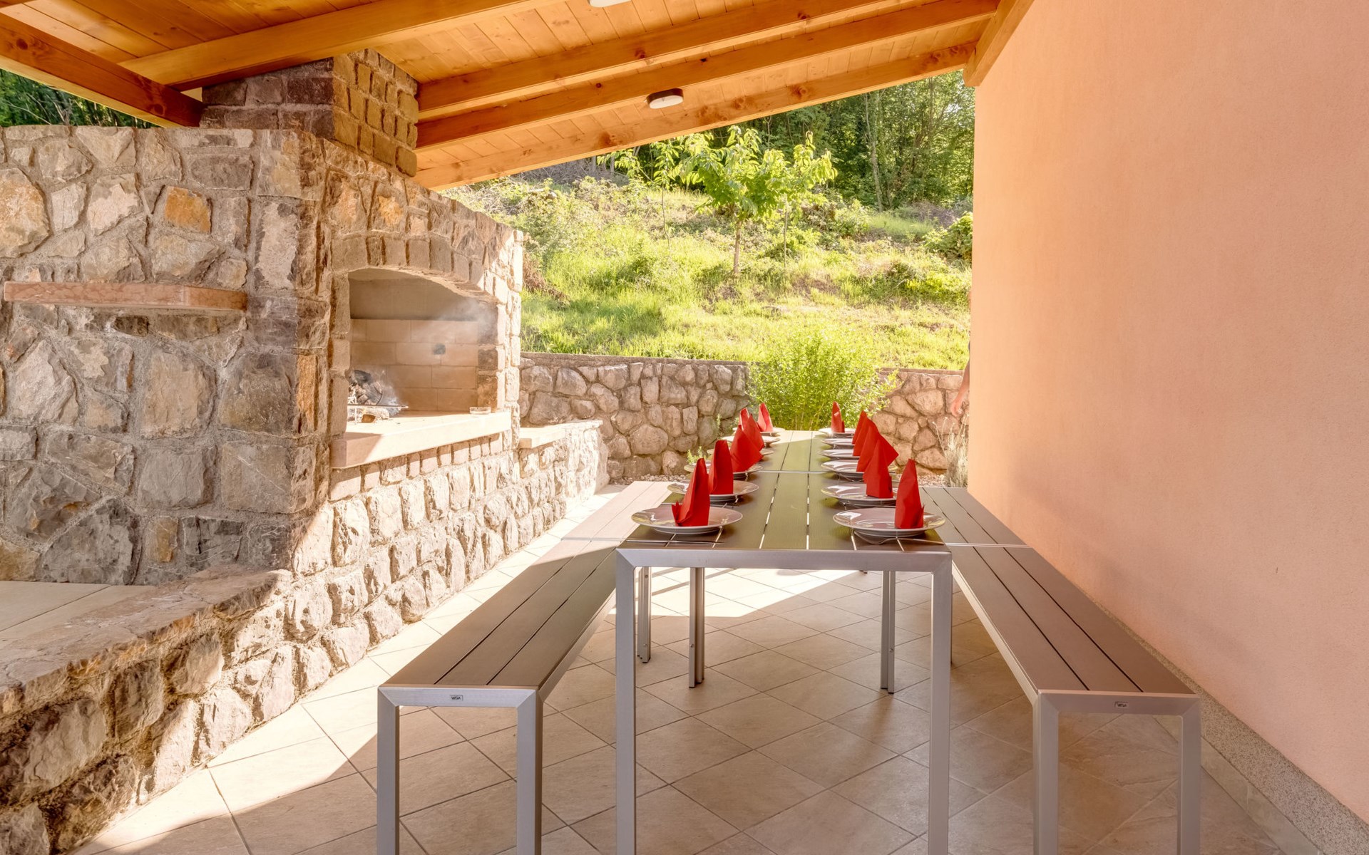Mihelići 6 km from Opatija: 2-family house "Matej". In the hamlet Mihelići 3.5 km from the centre of Matulji, 5.5 km from the centre of Opatija, in a quiet, sunny, elevated position residential area (villas), 5.5 km from the sea. For shared use: property 700 m2 (fenced) with lawn and flowers, swimming pool heated (7 x 4 m, depth 150 cm, seasonal availability: 15.May. - 15.Oct.) with internal staircase. Outdoor shower, poolhouse, terrace, garden furniture, barbecue. In the house: internet access, hot tub (all included), table football, central heating system, air conditioning. Parking (for 2 cars) at the house on the premises. Shop 800 m, supermarket 3 km, restaurant 800 m, bar 750 m, bus stop 700 m, pebble beach 5.5 km, concrete beach 5.5 km. Groups of teenagers on request only.