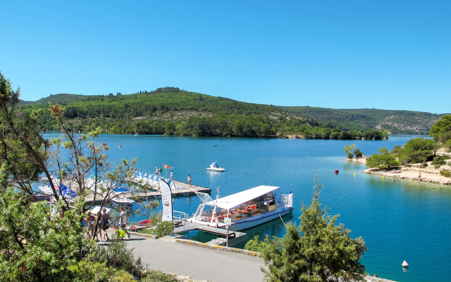 Lac de Sainte-Croix lies between the departments of Var and Alpes-de-Haute-Provence in the Verdon Regional Nature Park. Don't miss out on a drive around the lake to discover the beautiful villages of Bauduen, Moustiers and Les Salles-sur-Verdon. There are plenty of hiking trails to explore. A refreshing day out awaits you in the impressive Gorges du Verdon, which you can explore by electric boat or canoe.
