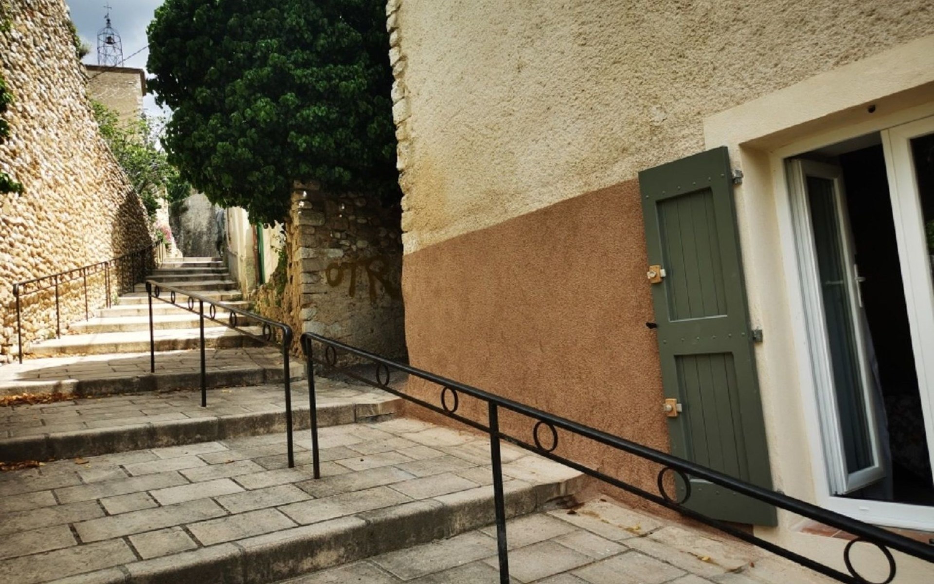 Entrance is via the bedroom at the public steps (rue Saint Fauste) or via the main entrance to the house, which is shared with the owners and tenants on the second floor.
