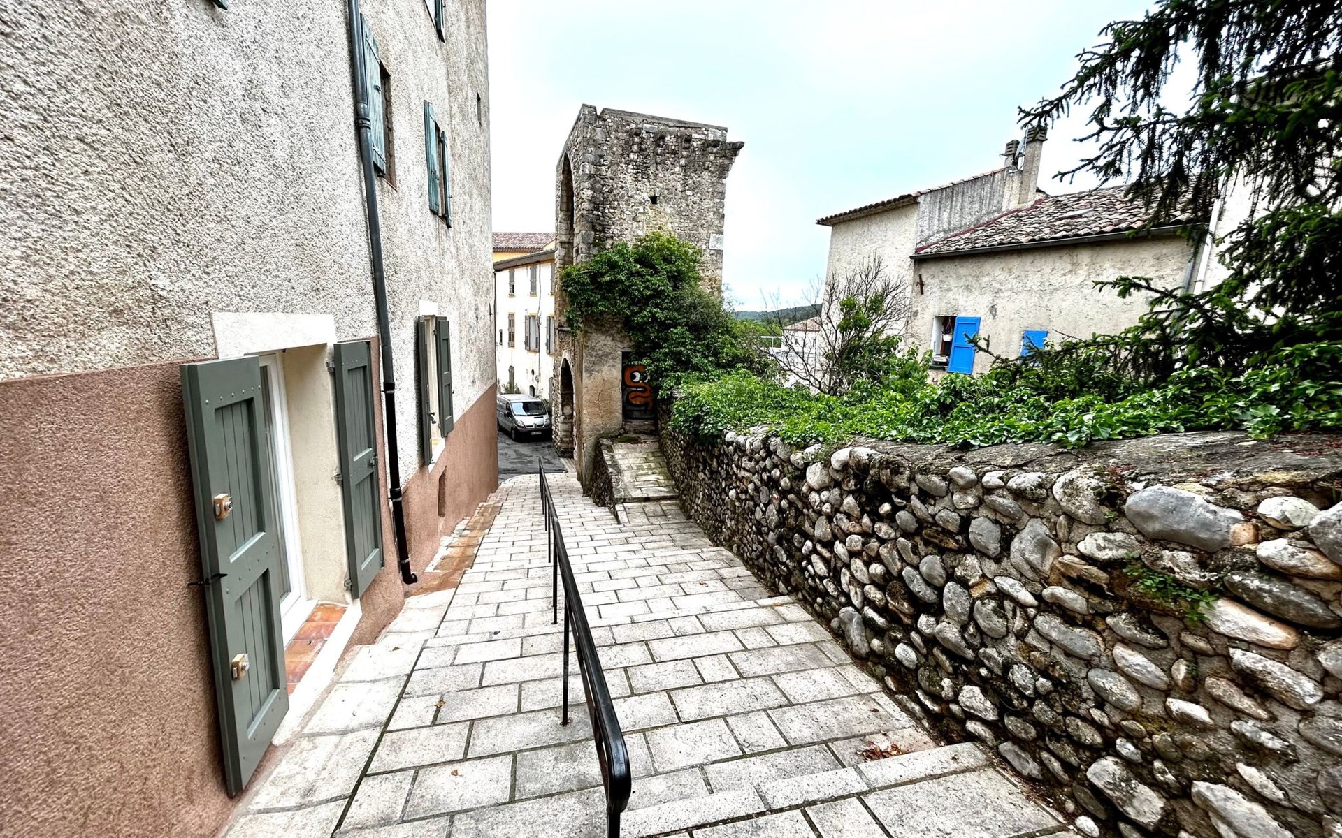 The flat has access to public steps leading to the top of the village.