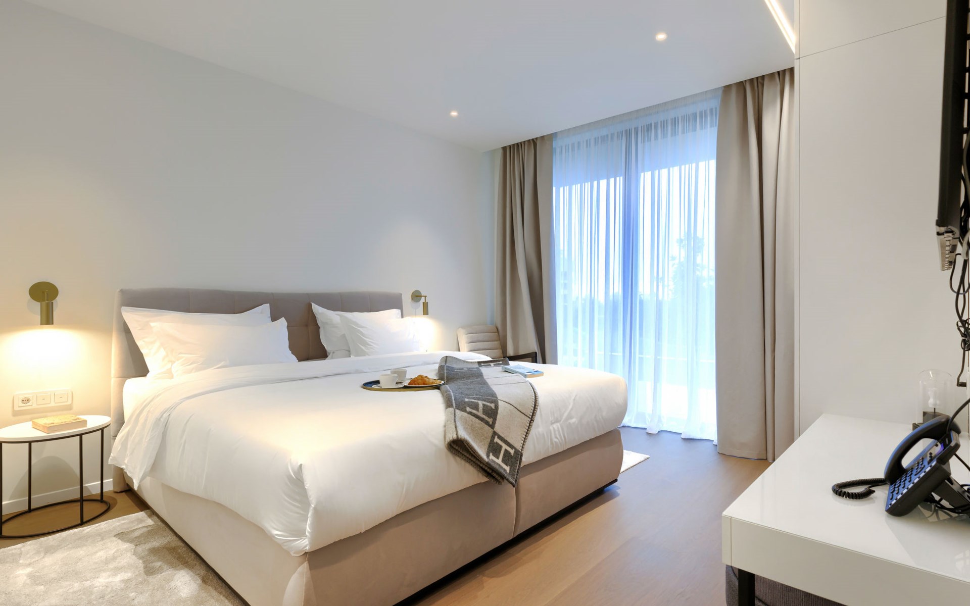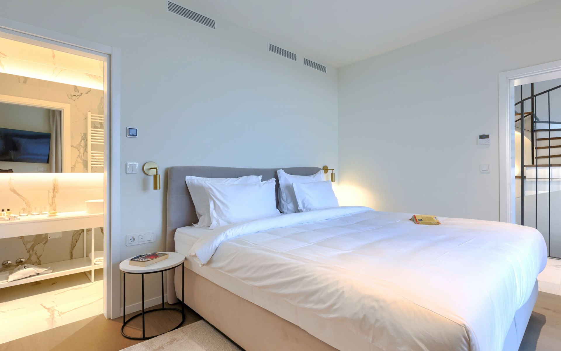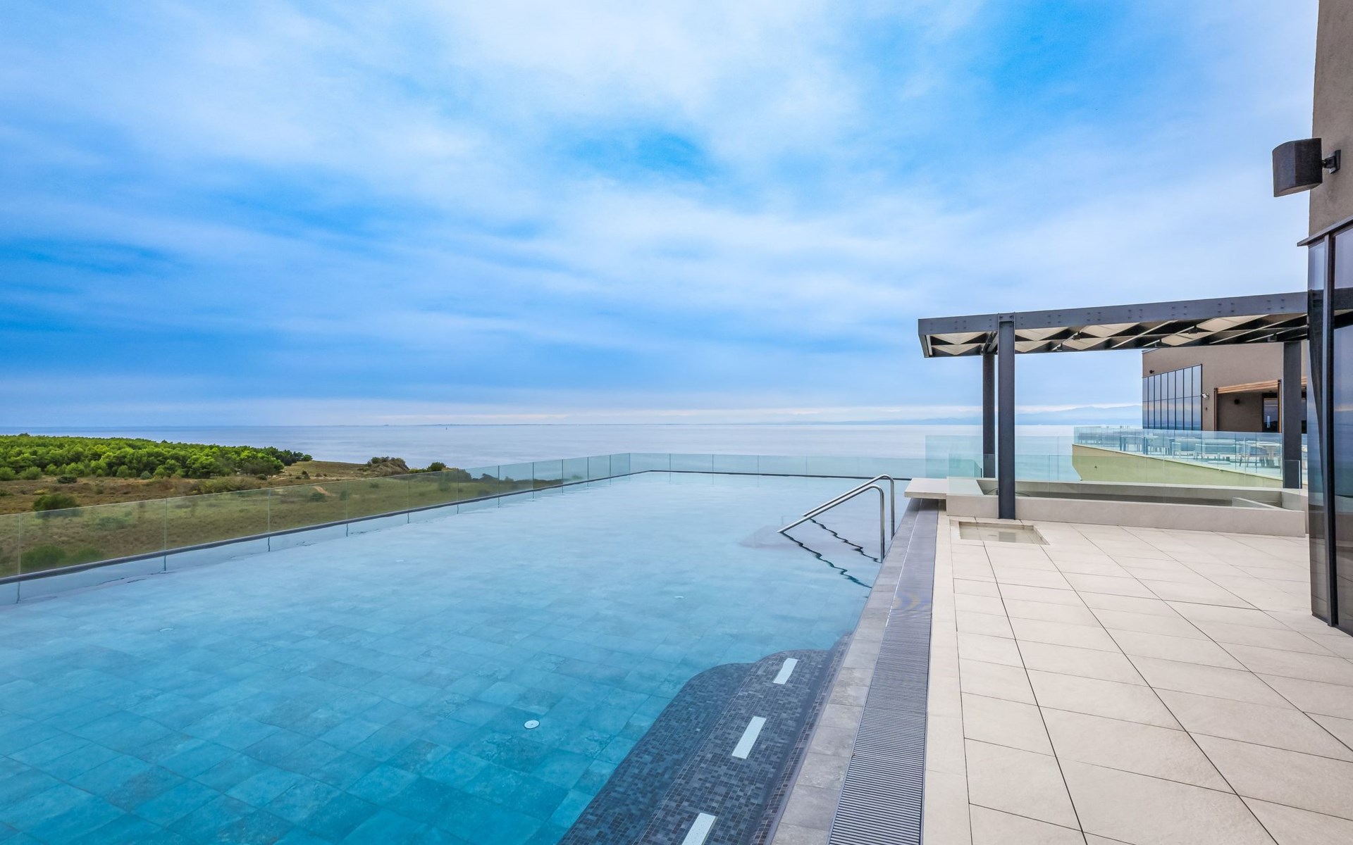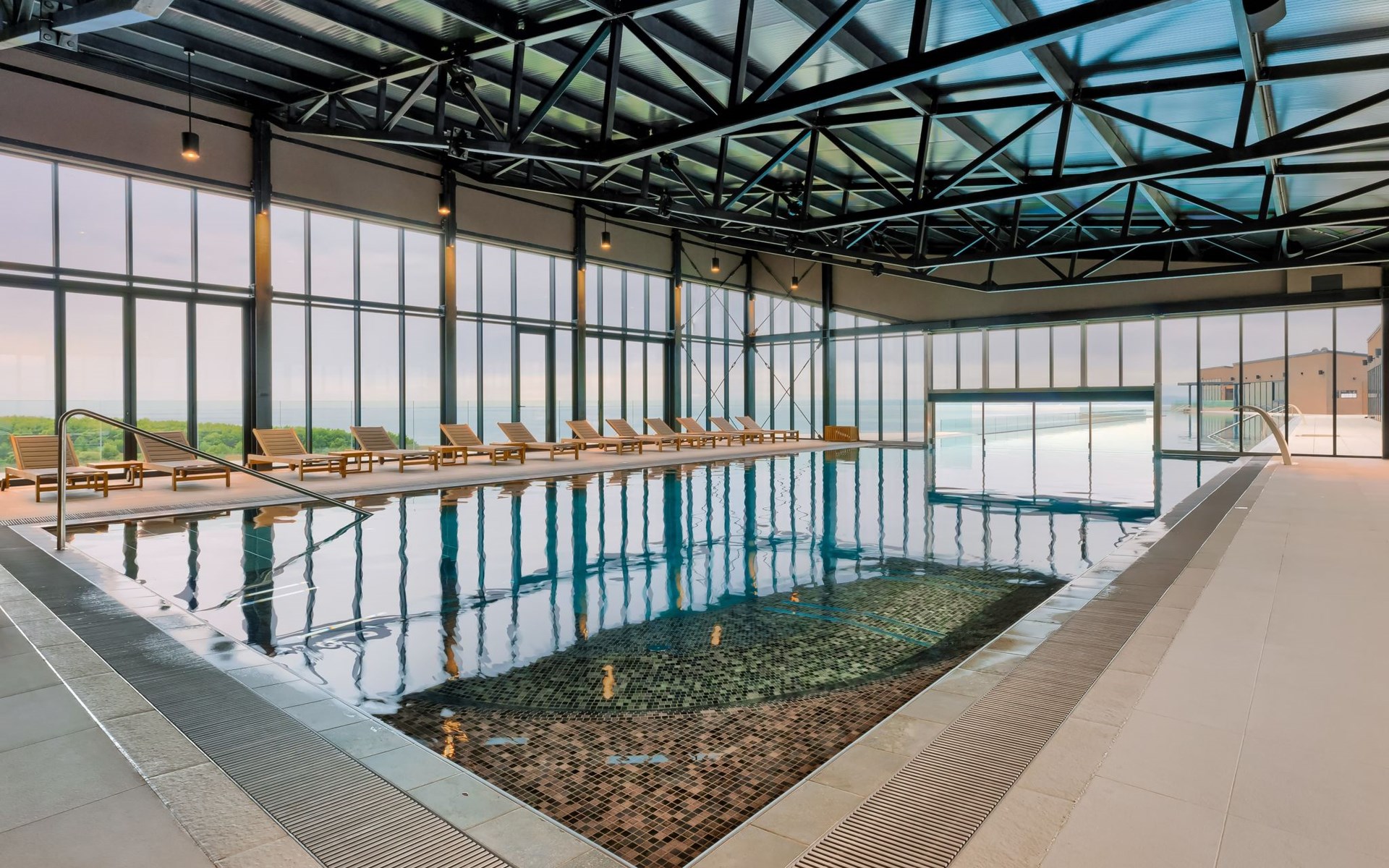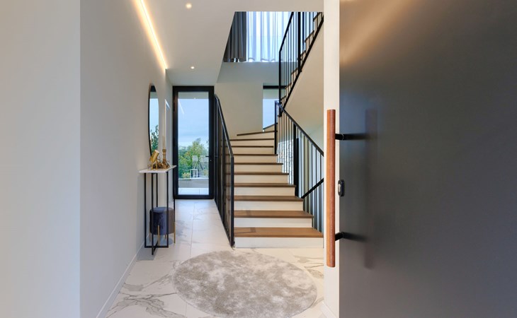 Semi-detached house "Semi-detached Villas Crveni vrh", built in 2023. 1.5 km from the centre of Savudrija, 10 km from the centre of Umag, in a quiet position on a slope, residential area (villas), 500 m from the sea. For shared use: property with lawn, 2 swimming pools, indoor pool (105 m diameter, depth 50 - 140 cm, seasonal availability: 01.Jan. - 31.Dec.) with internal staircase. Unconventional pool shape. Shower/WC in the pool area, children's pool, tennis (extra), children's playground. Private: property (fenced). In the complex: reception, restaurant, bar, bistro, internet access, sauna, fitness room, massage (extra). Hot tub, relaxation room, spa area, playroom, shopping facilities, lift, sun terrace. Parking at the house on the premises. Shop 1 km, supermarket 10 km, bus stop 8 km, railway station 33 km, sandy beach 5 km pebble beach 2 km, rocky beach 500 m. Golf course (18 hole) 2 km, tennis 500 m, walking paths from the house 100 m. Please note: 24hr guard. The photograph shows a typical example. Neighbourhood highly sensitive to noise. Quietness and good behaviour expected.