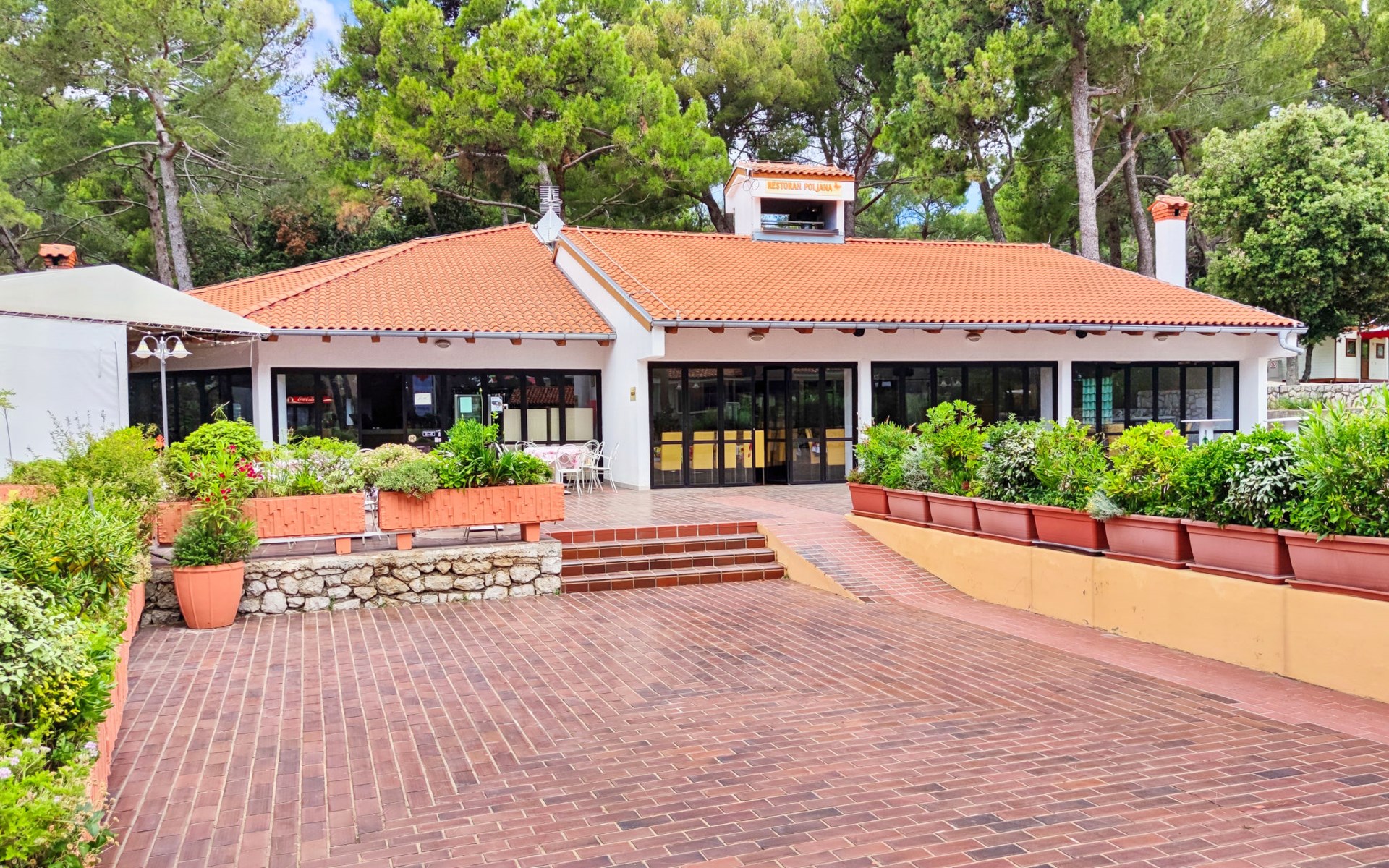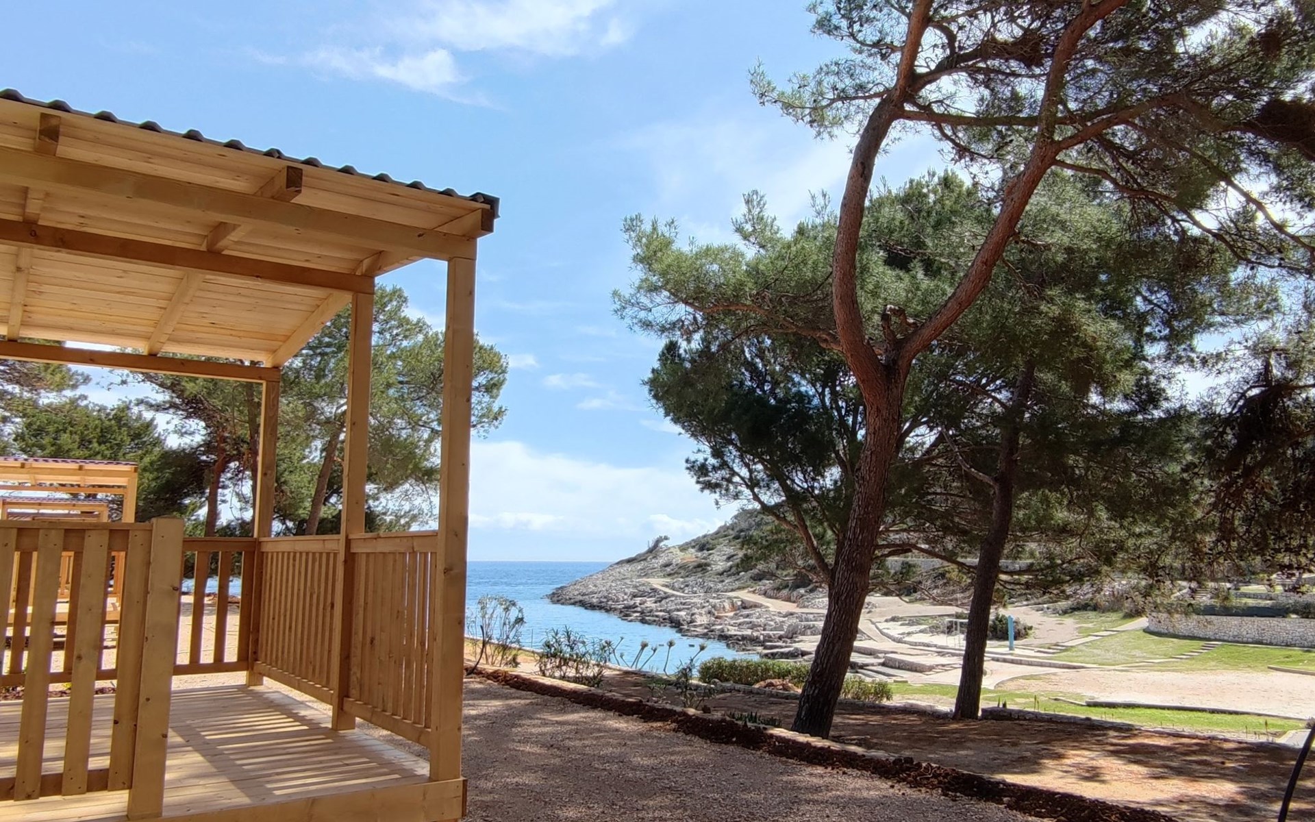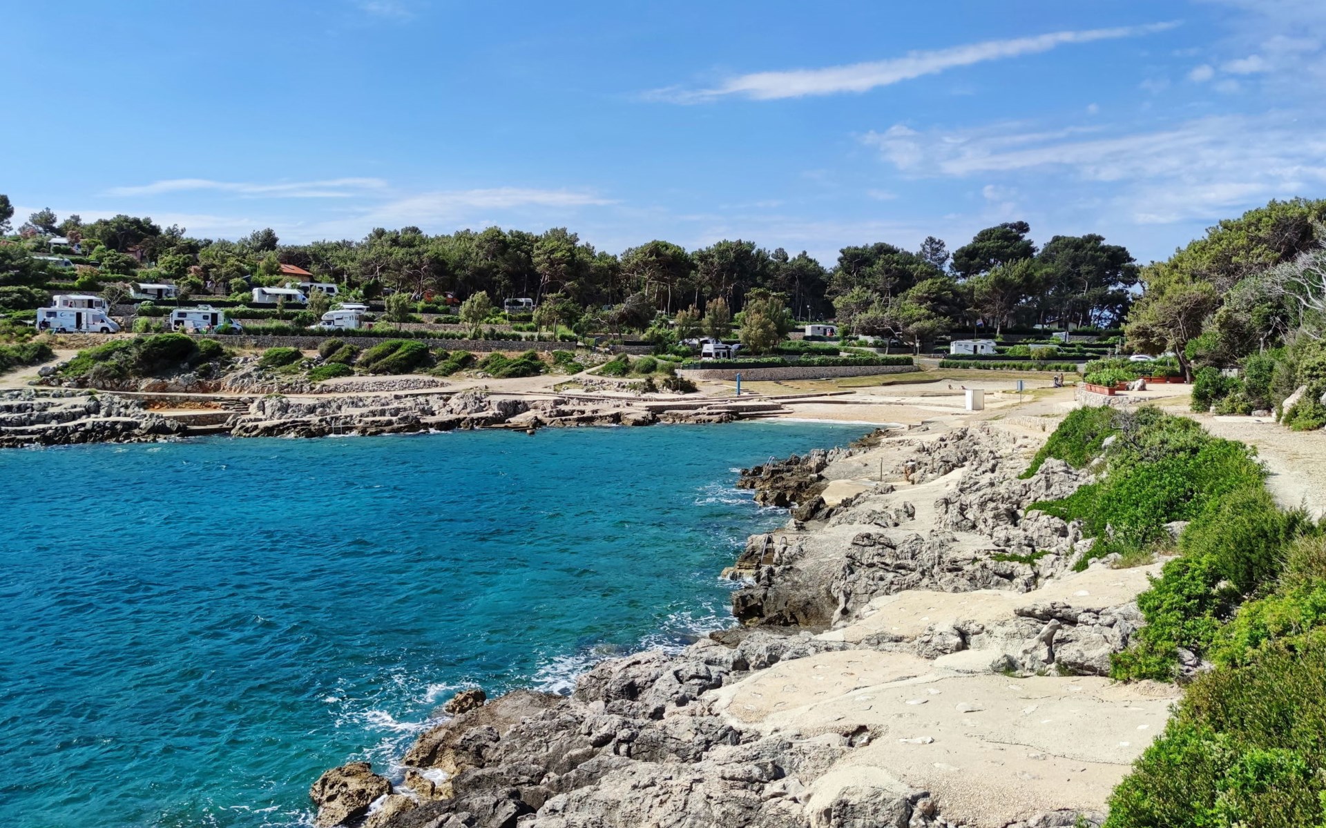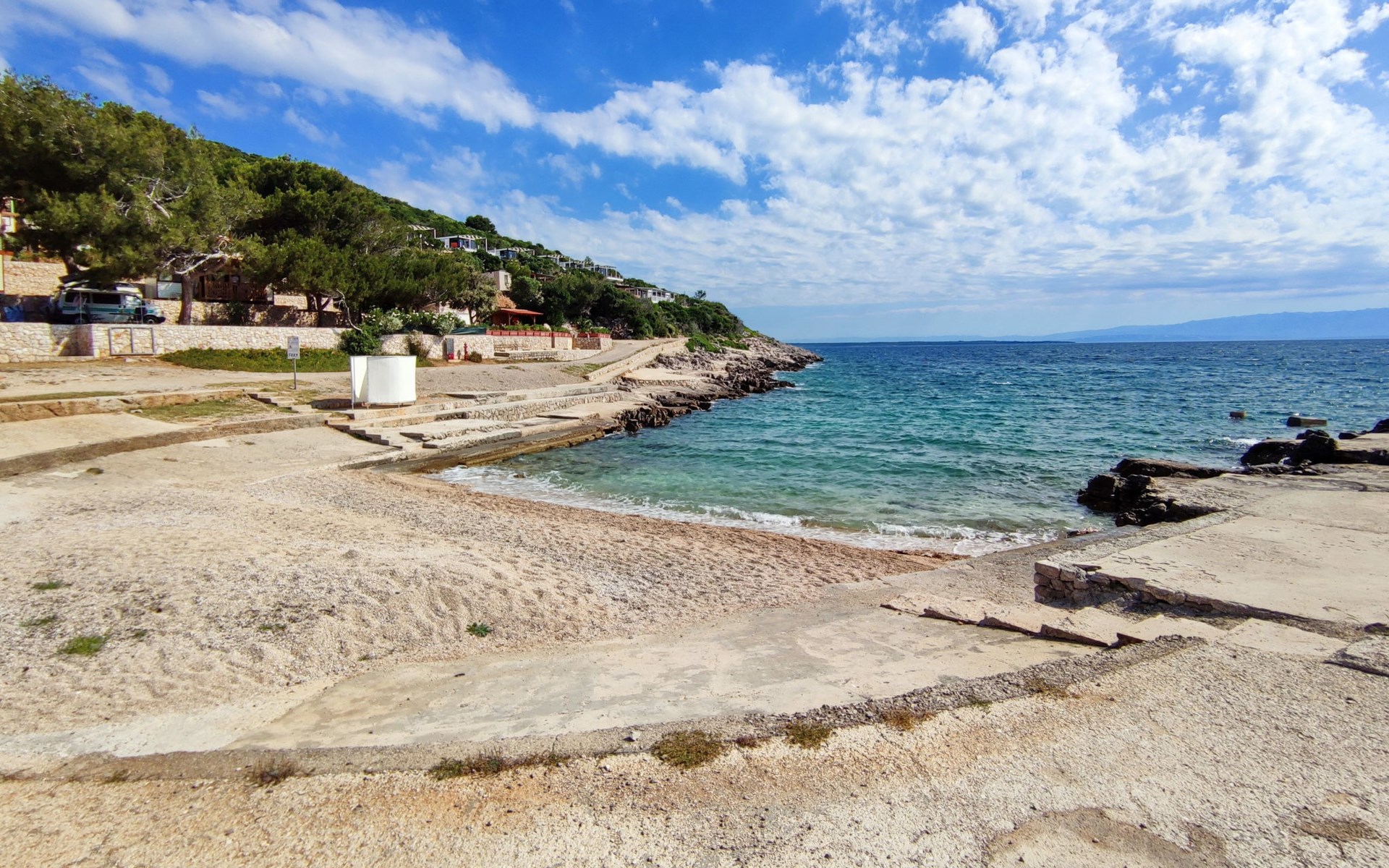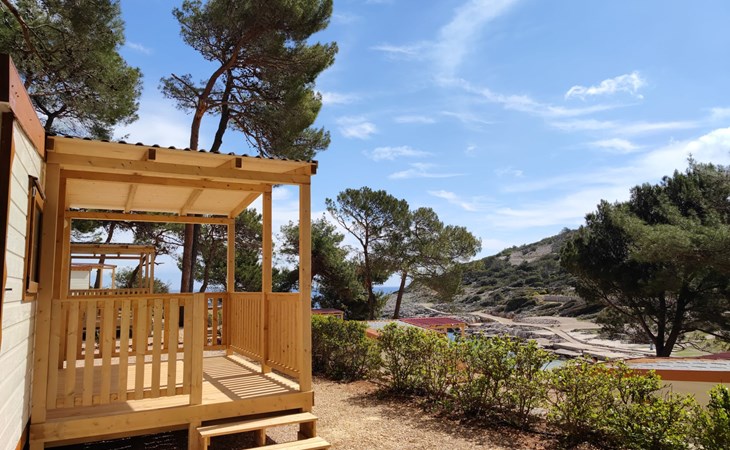 Poljana 3 km from Mali Lošinj: Child friendly resort "Camping Village Poljana". 8 km from the centre of Veli Lošinj, 64 km from the centre of Merag, 78 km from the centre of Krk, in a sunny position, 20 m from the sea, direct access to the beach. For shared use: property 15 ha (fenced) with trees. Outdoor shower, tennis (extra), beach volleyball, children's playground. In the complex: reception, restaurant, bar, shopping facilities, washing machine (for shared use, extra), bicycle rental. Linen change (suppl. charge extra). Towel change (suppl. charge extra). Breakfast full board half board possible (extra). Grocery 100 m, supermarket 3 km, restaurant, café 100 m, bus stop 60 m, ferry "Merag" 64 km, shingle beach 70 m, rocky beach 50 m, nudist beach 300 m. Marina 200 m, walking paths from the house 50 m, cycle lane 100 m. Nearby attractions: Museum of Apoxyomenos 3 km, Dolphine watching 9 km, Gyps fulvus bird watching 40 km. Well-known lakes can easily be reached: Vransko jezero 35 km. Please note: entertainment in the season. Suitable for families, baby equipment on request (extra). The photograph shows a typical example. The mobile homes are situated 50 - 250 m from the sea and the beach. Parking for 1 car, 20 m from the mobile home (incl.), parking for 2nd car to be paid extra.