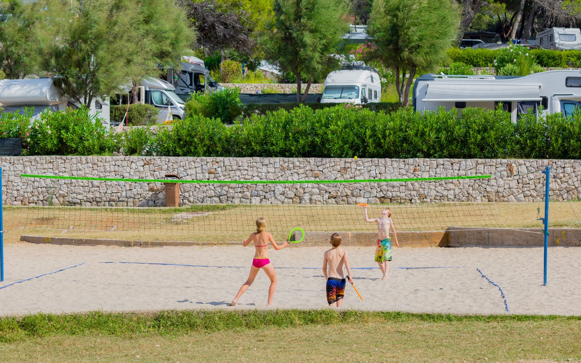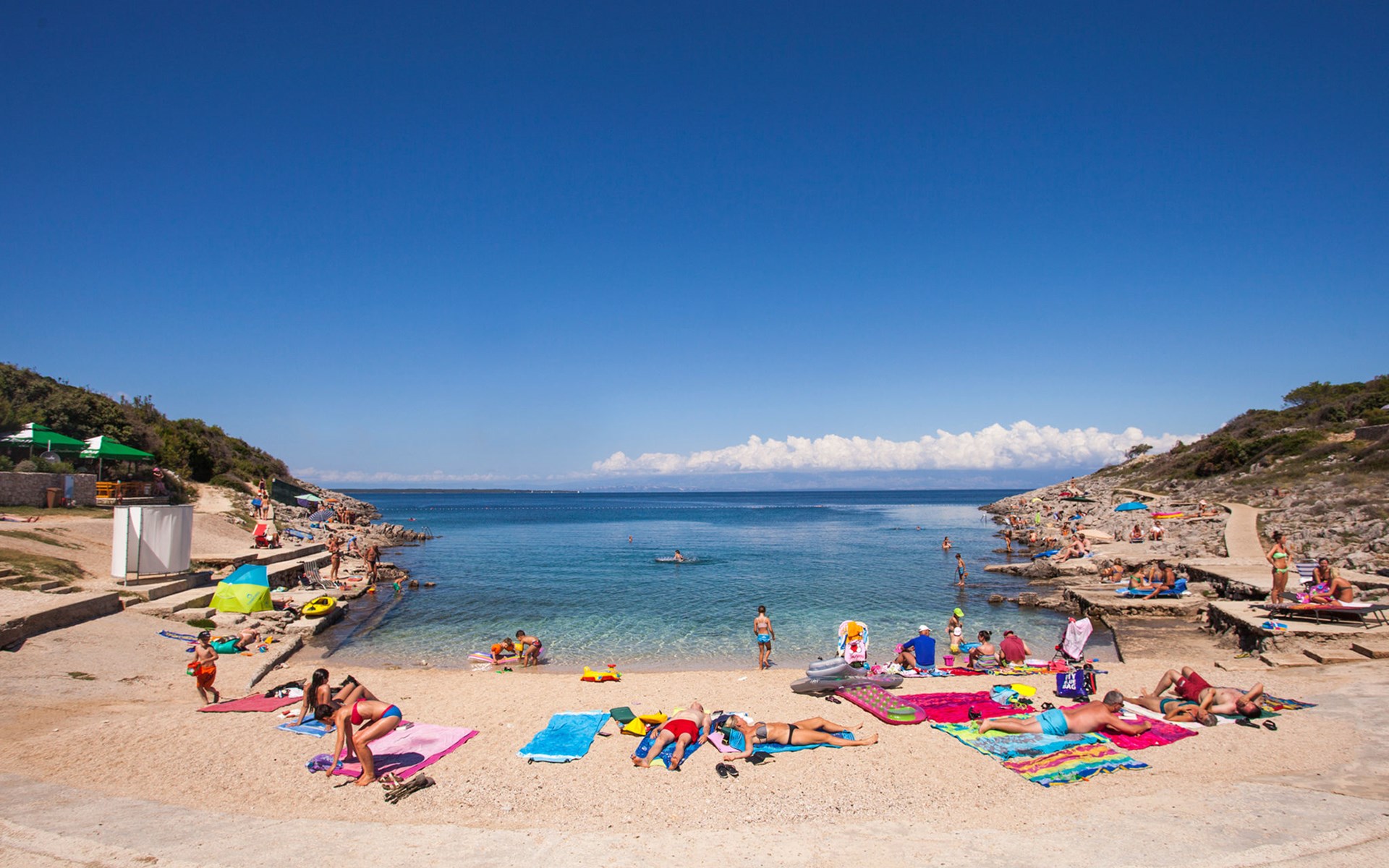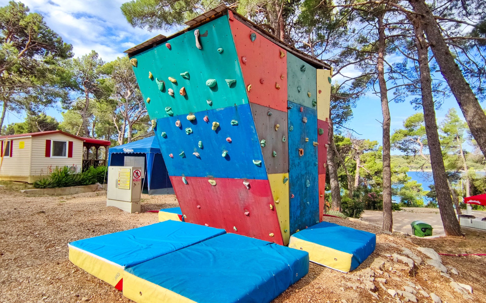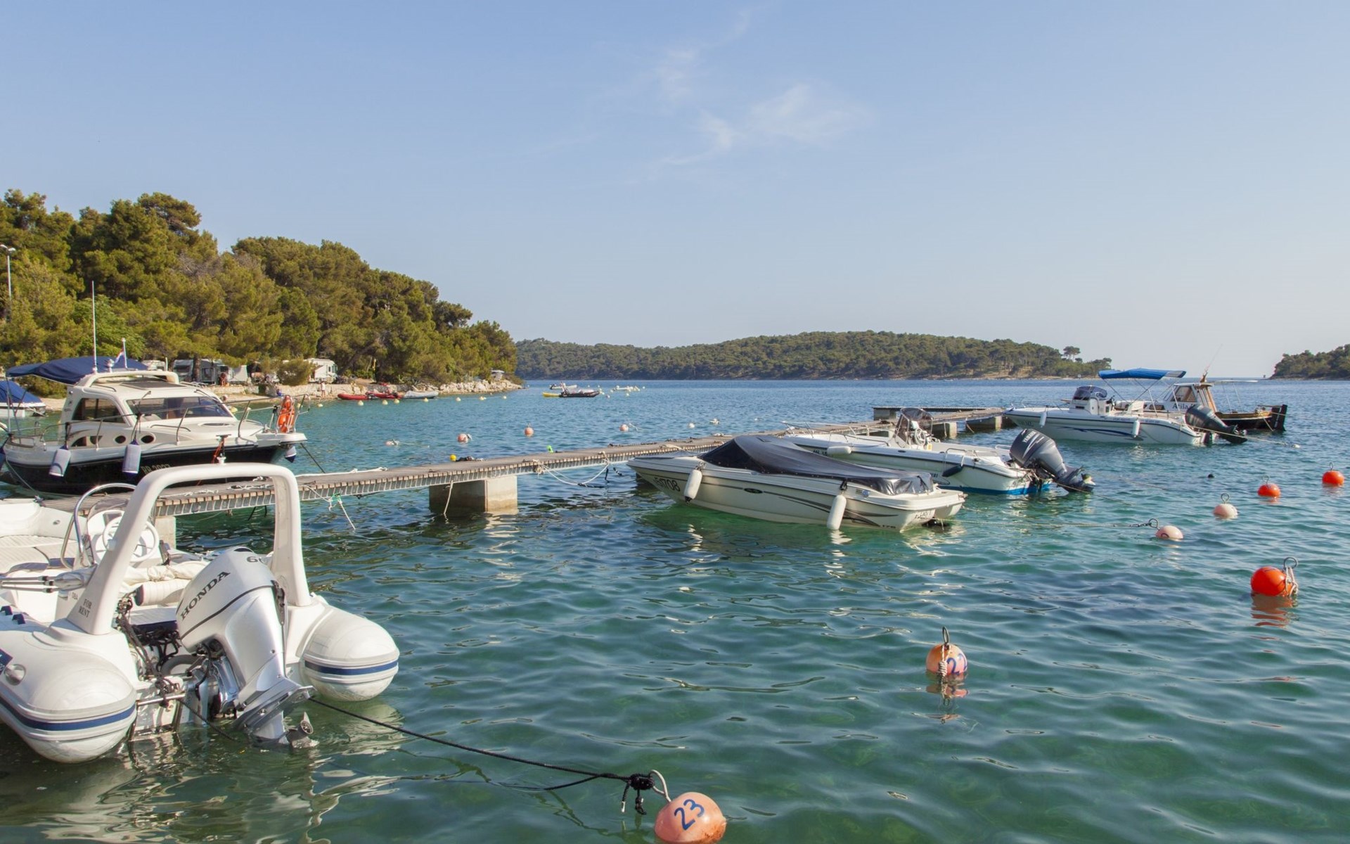 Poljana 3 km from Mali Lošinj: Child friendly resort "Camping Village Poljana". 8 km from the centre of Veli Lošinj, 64 km from the centre of Merag, 78 km from the centre of Krk, in a sunny position, 20 m from the sea, direct access to the beach. For shared use: property 15 ha (fenced) with trees. Outdoor shower, tennis (extra), beach volleyball, children's playground. In the complex: reception, restaurant, bar, shopping facilities, washing machine (for shared use, extra), bicycle rental. Linen change (suppl. charge extra). Towel change (suppl. charge extra). Breakfast full board half board possible (extra). Grocery 100 m, supermarket 3 km, restaurant, café 100 m, bus stop 60 m, ferry "Merag" 64 km, shingle beach 70 m, rocky beach 50 m, nudist beach 300 m. Marina 200 m, walking paths from the house 50 m, cycle lane 100 m. Nearby attractions: Museum of Apoxyomenos 3 km, Dolphine watching 9 km, Gyps fulvus bird watching 40 km. Well-known lakes can easily be reached: Vransko jezero 35 km. Please note: entertainment in the season. Suitable for families, baby equipment on request (extra). The photograph shows a typical example. The mobile homes are situated 50 - 250 m from the sea and the beach. Parking for 1 car, 20 m from the mobile home (incl.), parking for 2nd car to be paid extra.