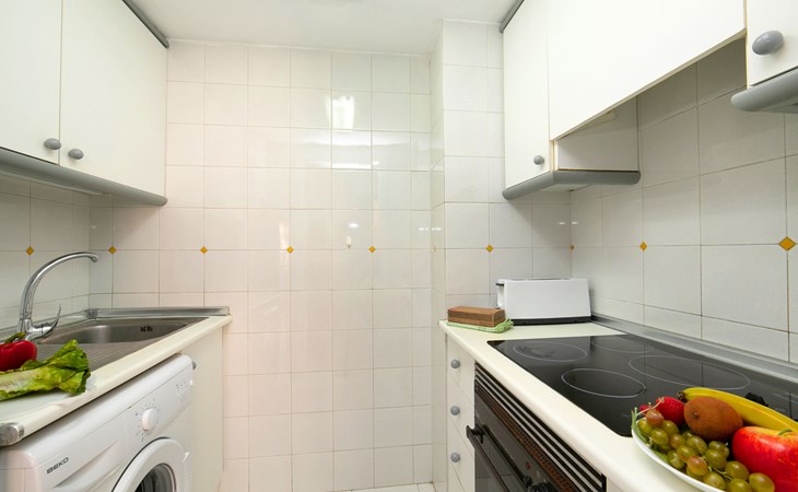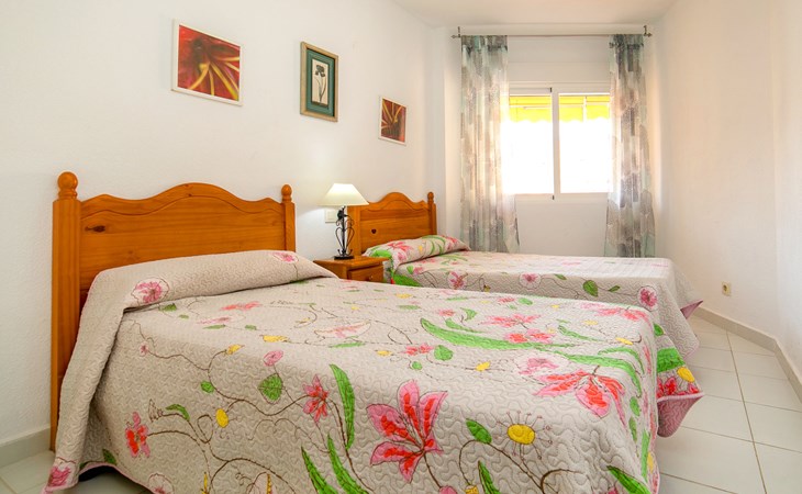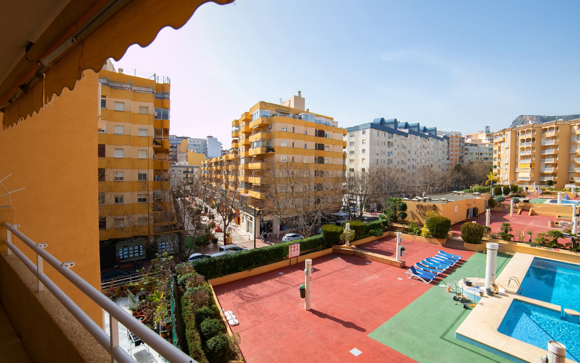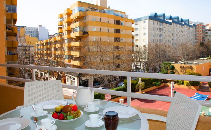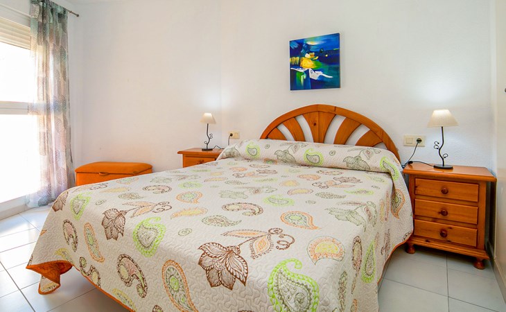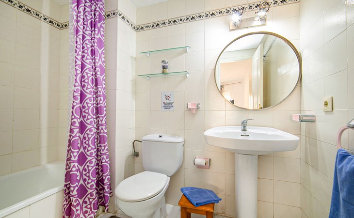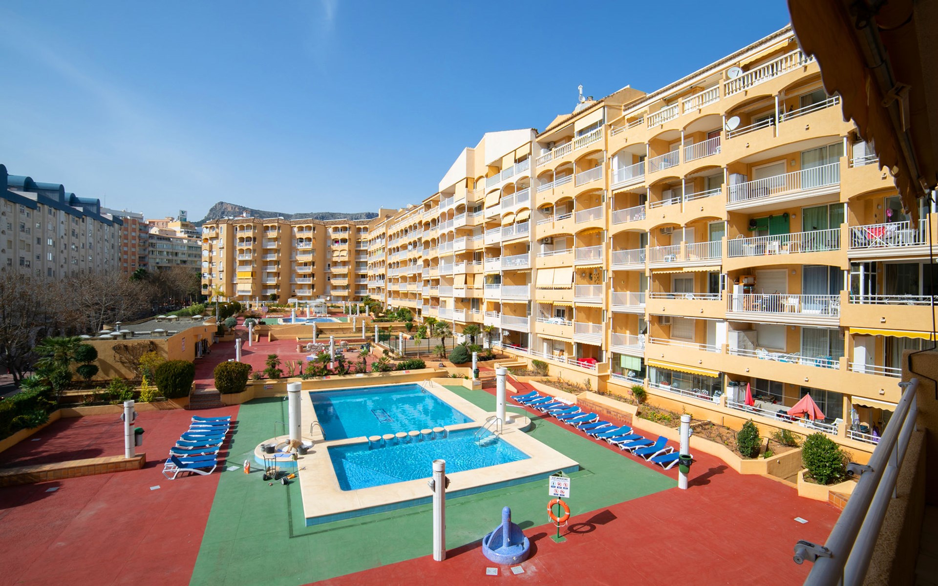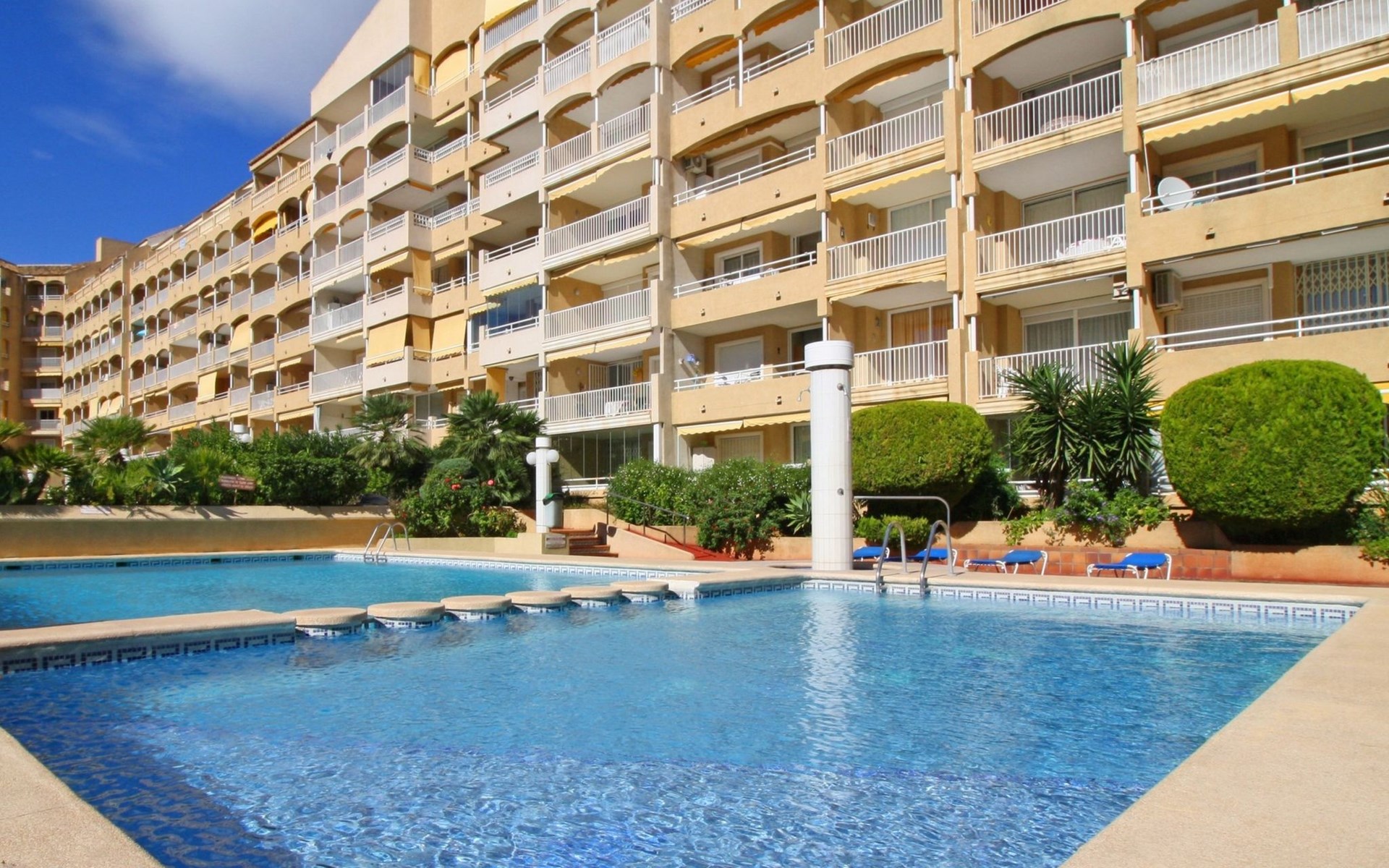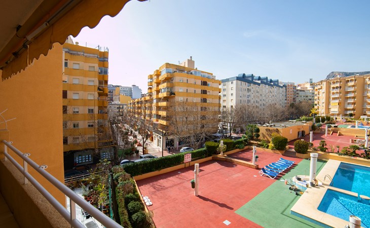 Apartment block "Apolo VII", 7 storeys. In the centre of Calpe, in a central position, 400 m from the sea. For shared use: garden, 2 swimming pools (seasonal availability: 01.May. - 30.Sep. pool opening hours: 10:00-21:00). Children's pool, outdoor shower, boccia, terrace. In the house: WiFi, sauna (extra). Fitness room (extra). Hot tub (extra). Table tennis (extra). Lift. Supermarket, shopping centre 400 m, restaurant, bar, café 10 m, bus stop, sandy beach 400 m. Nearby attractions: Aqualandia, Mundomar, Terra Mítica, Terra Natura, Benidorm Palace (Benidorm). Minigolf for children, Sauna, Squash and Ping Pong in the building (all EXTRA).