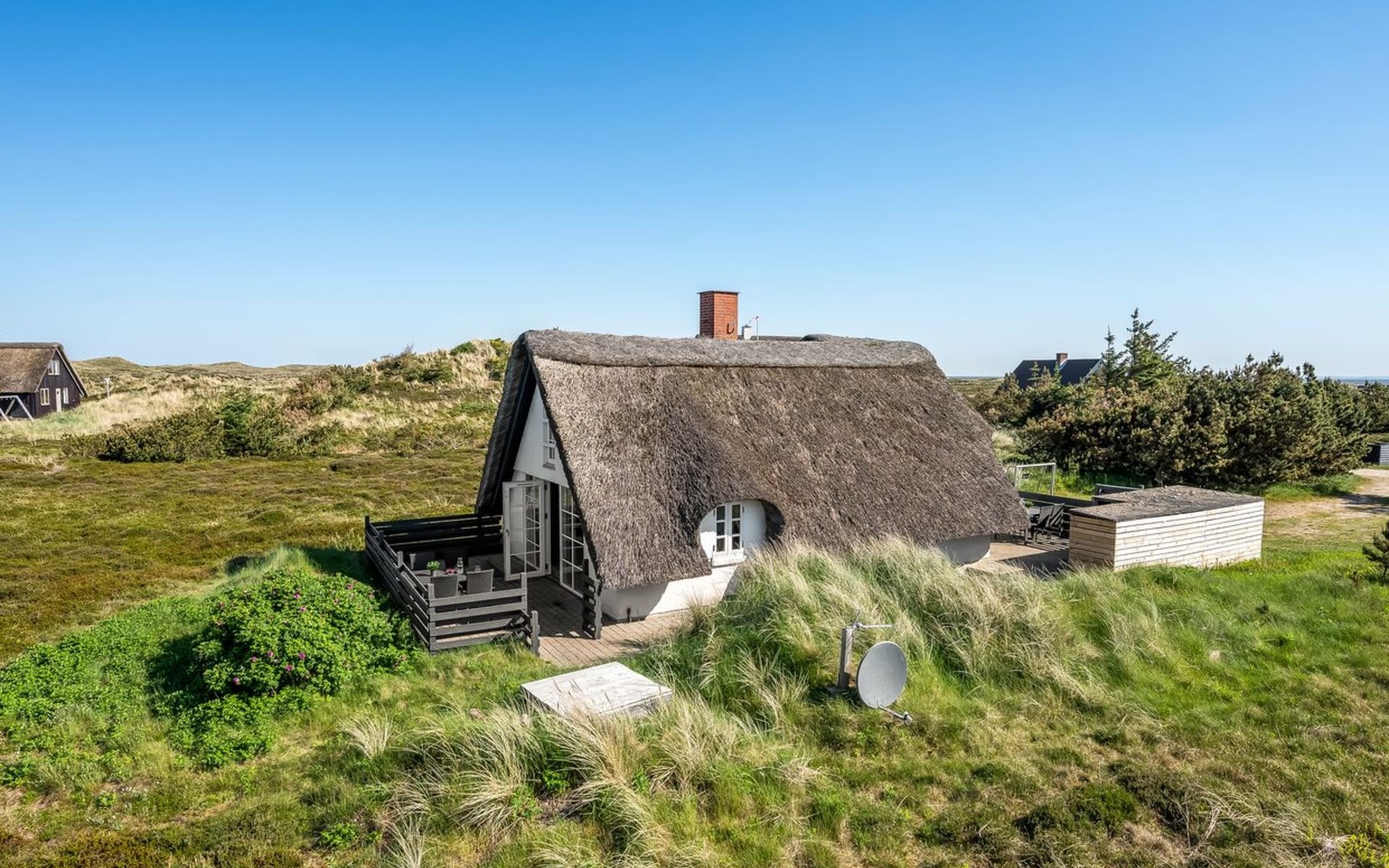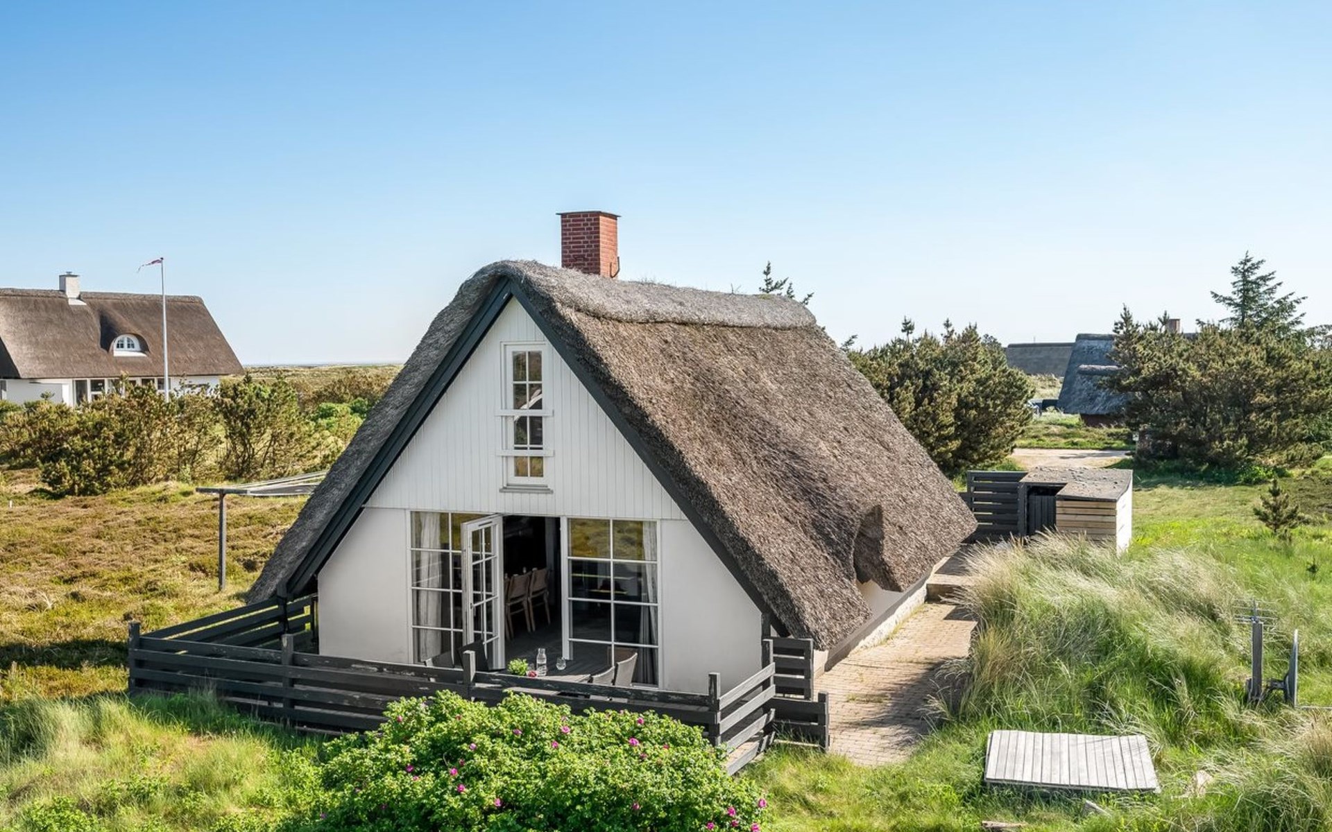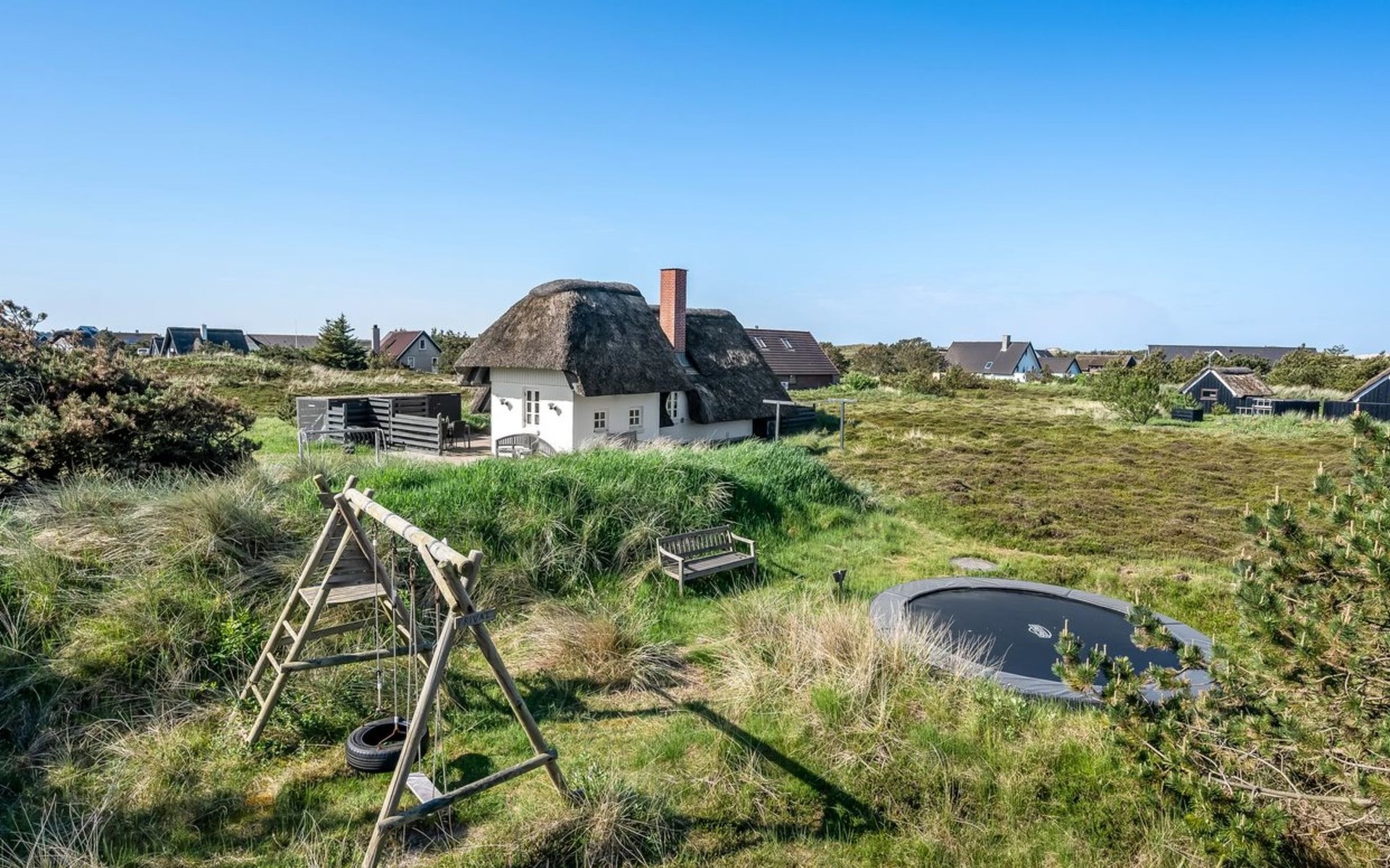 Single-family house, built in 1973. 600 m from the sea. Private: natural state property 1'800 m2. Children's playground (swing). In the house: trampoline, washing machine, tumble dryer. Parking at the house. E-charging station. Grocery 2.5 km. The owner does not accept any youth groups.