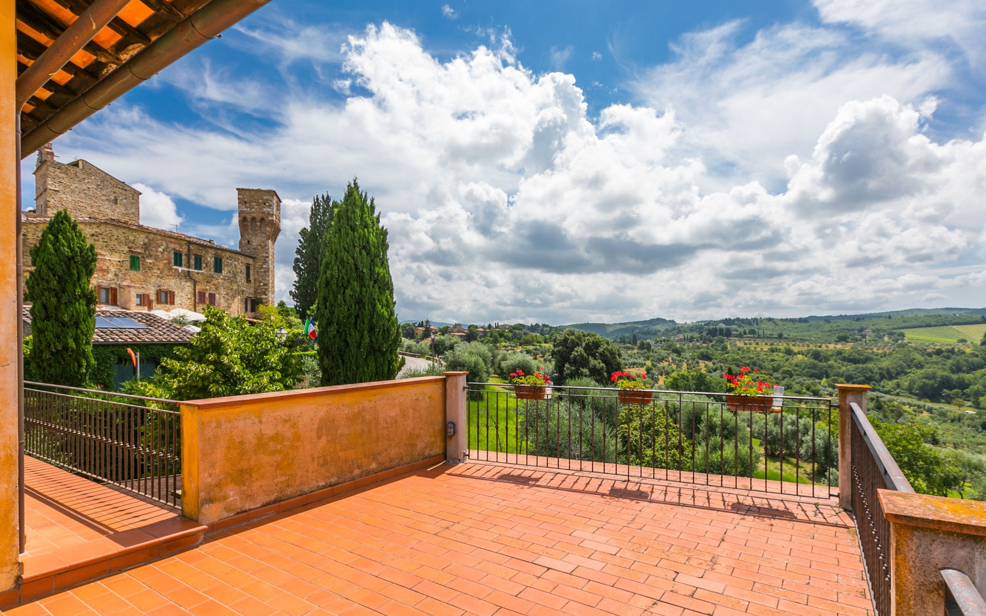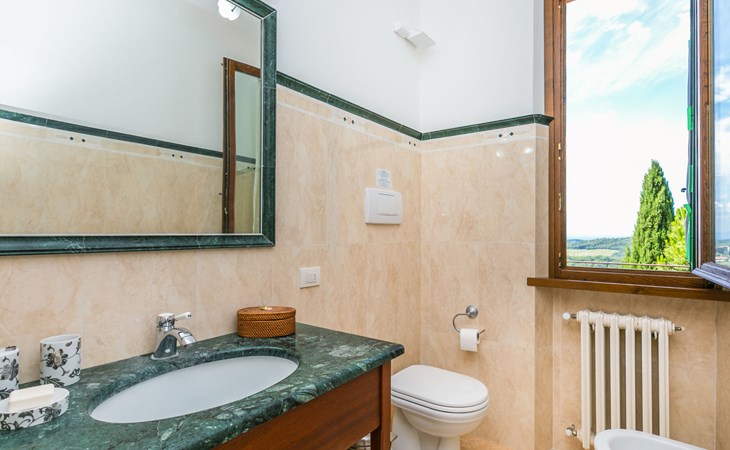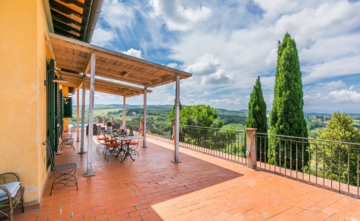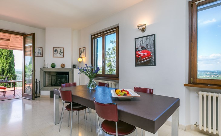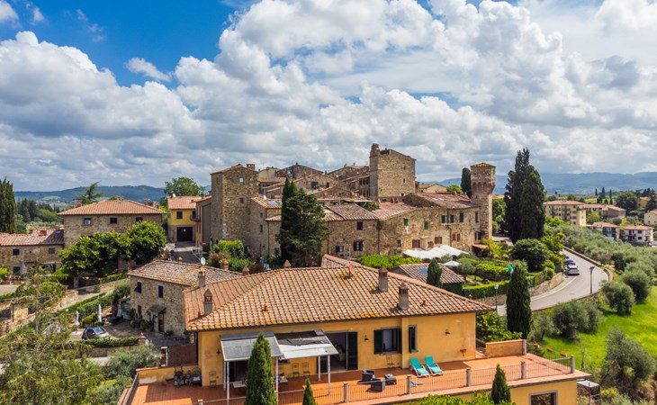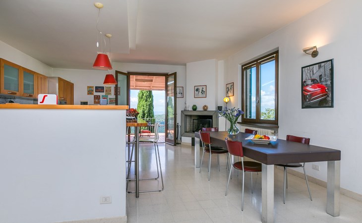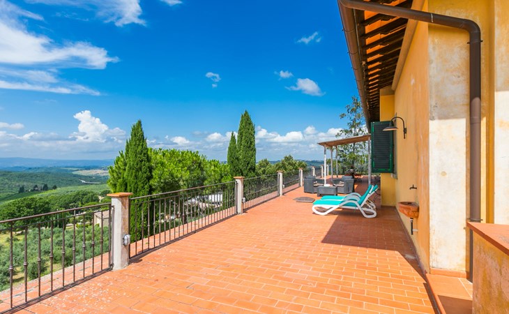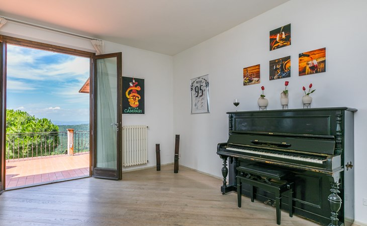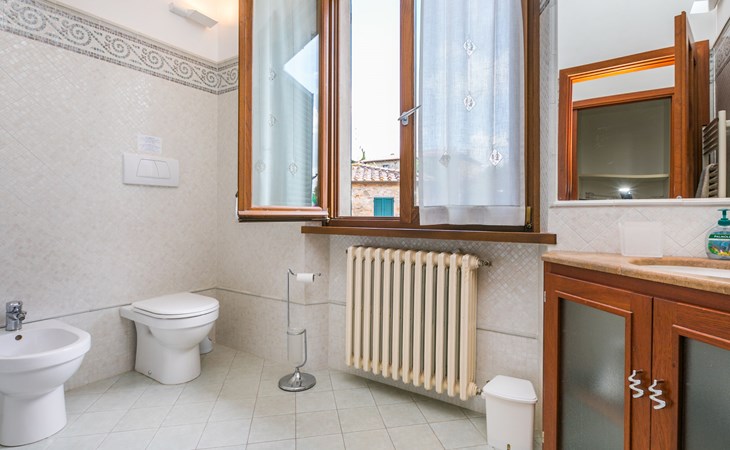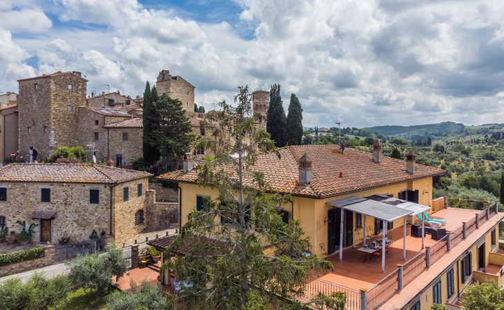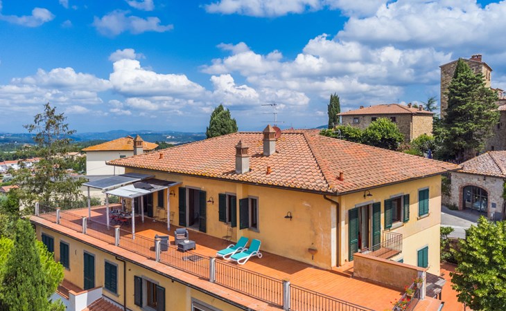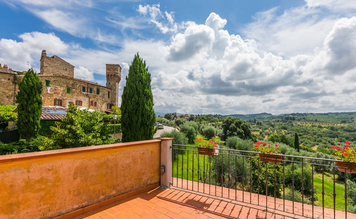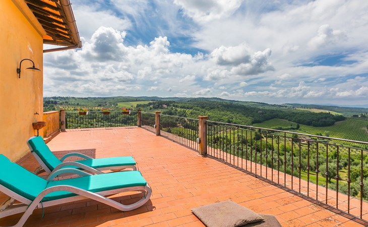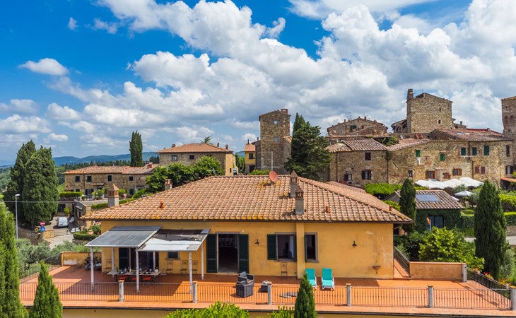 Large, comfortable house "Casa Lensi", 418 m a.s.l., 2 storeys, surrounded by fields and vineyards. 3 apartments in the property. In the resort 50 m from the centre of San Donato in Poggio, on the outskirts, 10 km from the centre of Castellina in Chianti, 20 km from the centre of Poggibonsi, in a central, sunny, elevated position on a slope, in the residential district, 96 km from the sea. For shared use: property (fenced). Private: terrace (100 m2), garden furniture, barbecue. In the house: burglar alarm system. Pre-arrival grocery service. Storeroom available. Parking (for 3 cars) at the house on the premises. Shop 100 m, grocery, supermarket 800 m, restaurant 100 m, bar, bakery, café, pedestrian zone 50 m, 3 minute walk to the centre, bus stop "San Donato" 300 m, railway station "Barberino-Zambra" 11 km, sandy beach "Cecina Mare" 96 km, outdoor swimming pool 7 km, indoor swimming pool 11 km. Tennis 4 km, walking paths from the house 100 m, children's playground 50 m, fishing possibilities 4 km. Nearby attractions: Firenze 30 km, San Gimignano 25 km, Siena 47 km, Greve in Chianti 19 km, Volterra 50 km. Please note: baby equipment (included). Groups of teenagers on request only. The owner lives in the same residence.