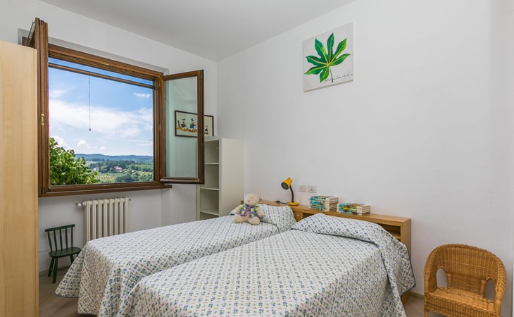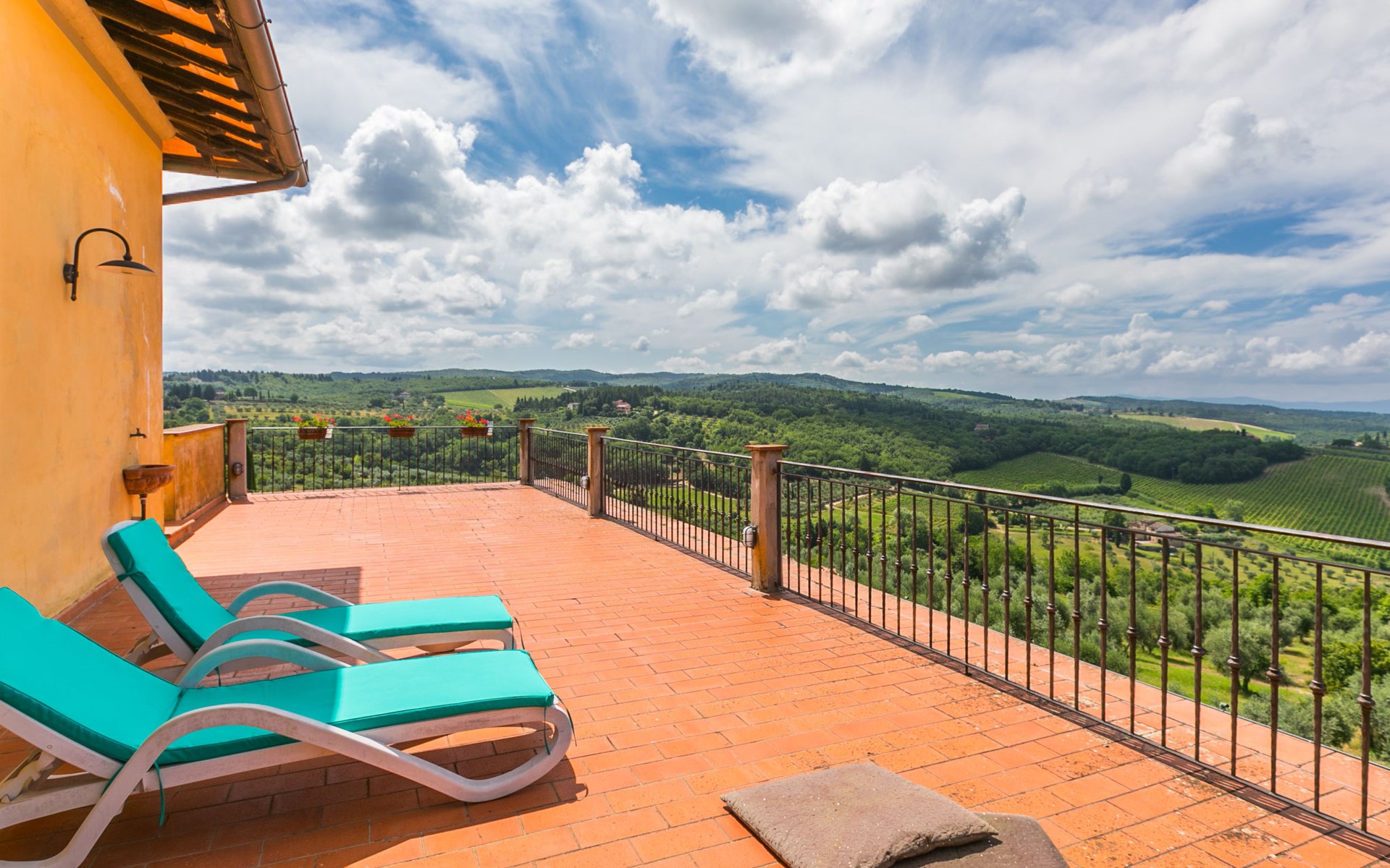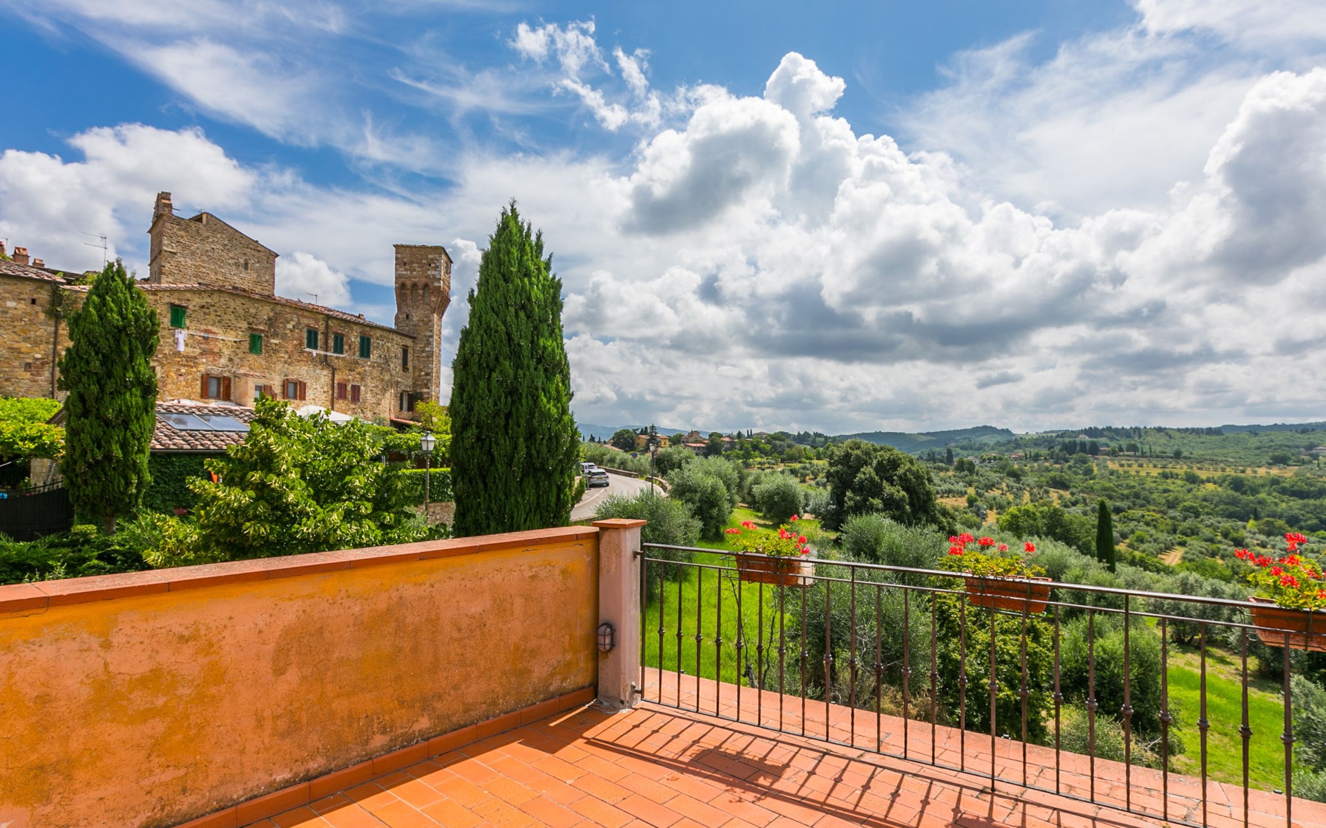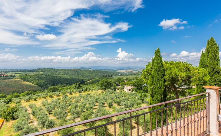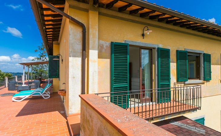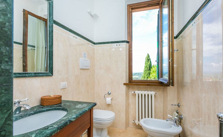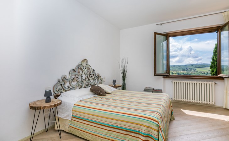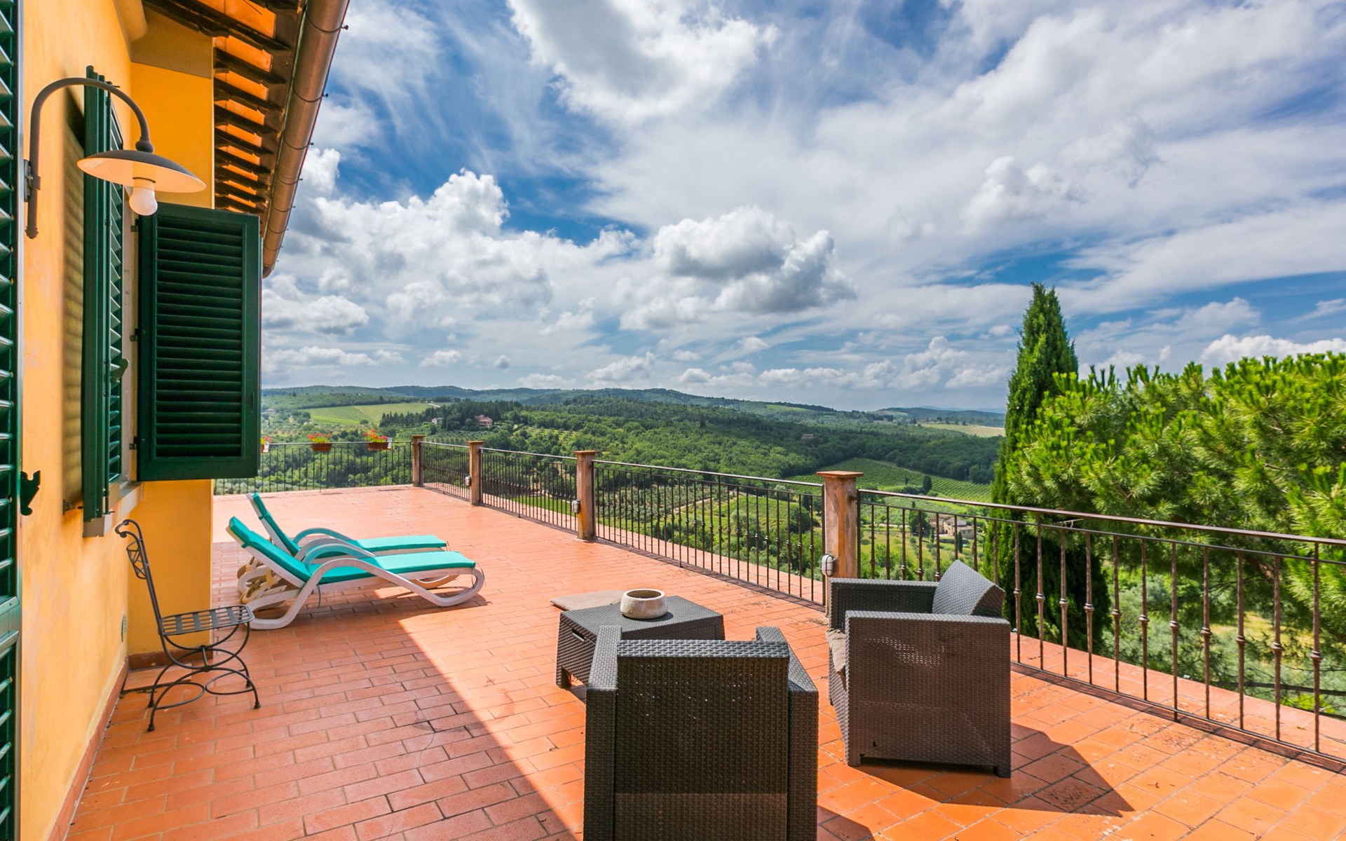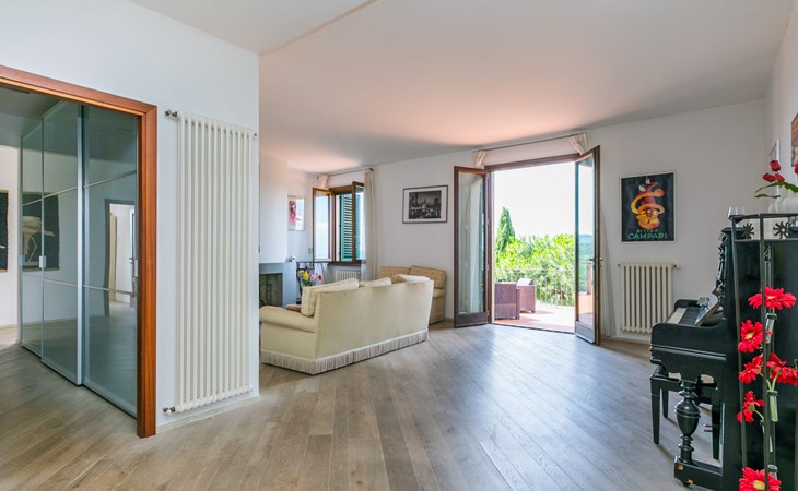 Large, comfortable house "Casa Lensi", 418 m a.s.l., 2 storeys, surrounded by fields and vineyards. 3 apartments in the property. In the resort 50 m from the centre of San Donato in Poggio, on the outskirts, 10 km from the centre of Castellina in Chianti, 20 km from the centre of Poggibonsi, in a central, sunny, elevated position on a slope, in the residential district, 96 km from the sea. For shared use: property (fenced). Private: terrace (100 m2), garden furniture, barbecue. In the house: burglar alarm system. Pre-arrival grocery service. Storeroom available. Parking (for 3 cars) at the house on the premises. Shop 100 m, grocery, supermarket 800 m, restaurant 100 m, bar, bakery, café, pedestrian zone 50 m, 3 minute walk to the centre, bus stop "San Donato" 300 m, railway station "Barberino-Zambra" 11 km, sandy beach "Cecina Mare" 96 km, outdoor swimming pool 7 km, indoor swimming pool 11 km. Tennis 4 km, walking paths from the house 100 m, children's playground 50 m, fishing possibilities 4 km. Nearby attractions: Firenze 30 km, San Gimignano 25 km, Siena 47 km, Greve in Chianti 19 km, Volterra 50 km. Please note: baby equipment (included). Groups of teenagers on request only. The owner lives in the same residence.