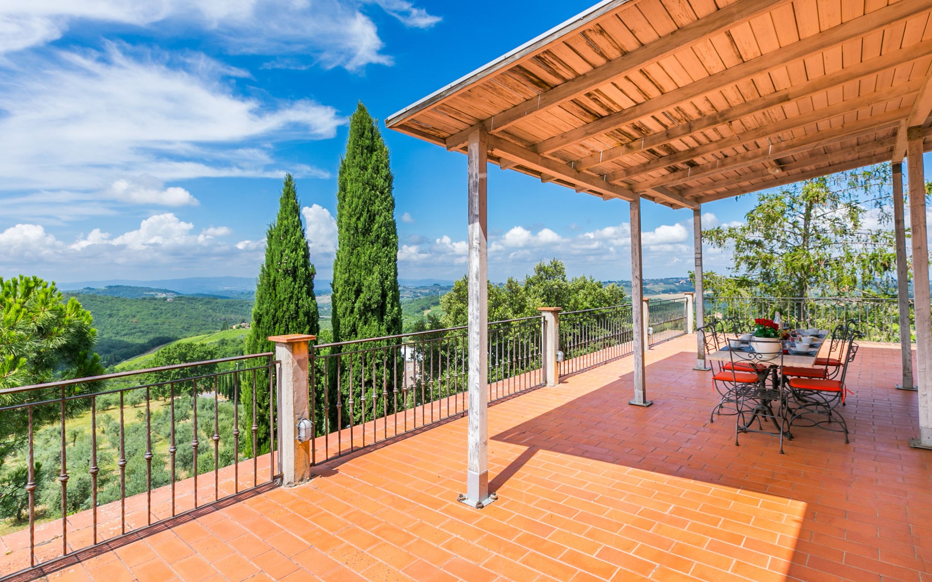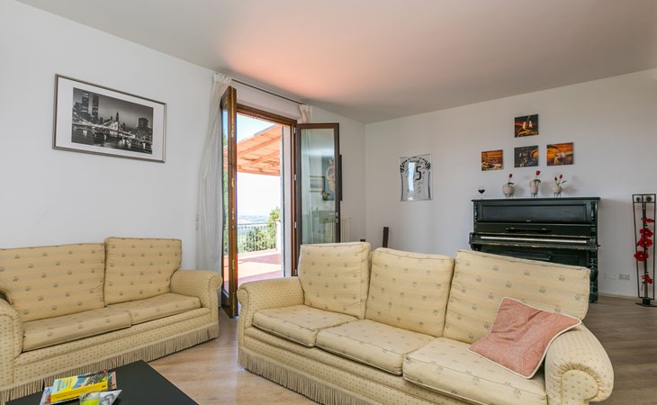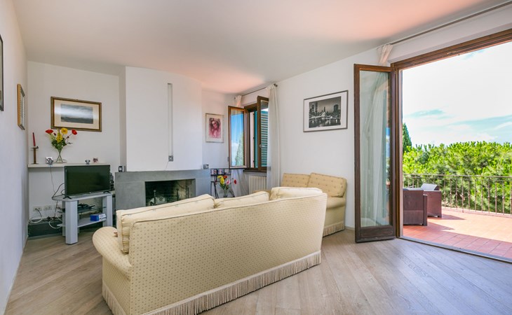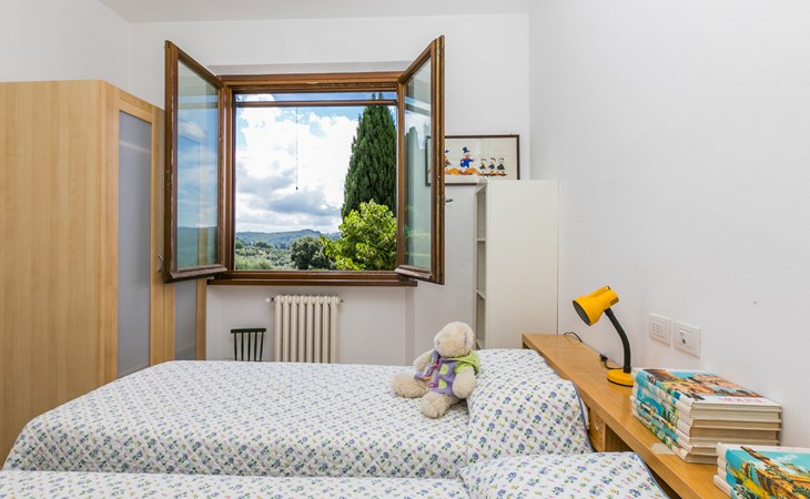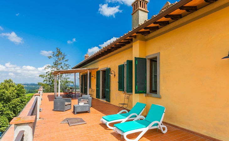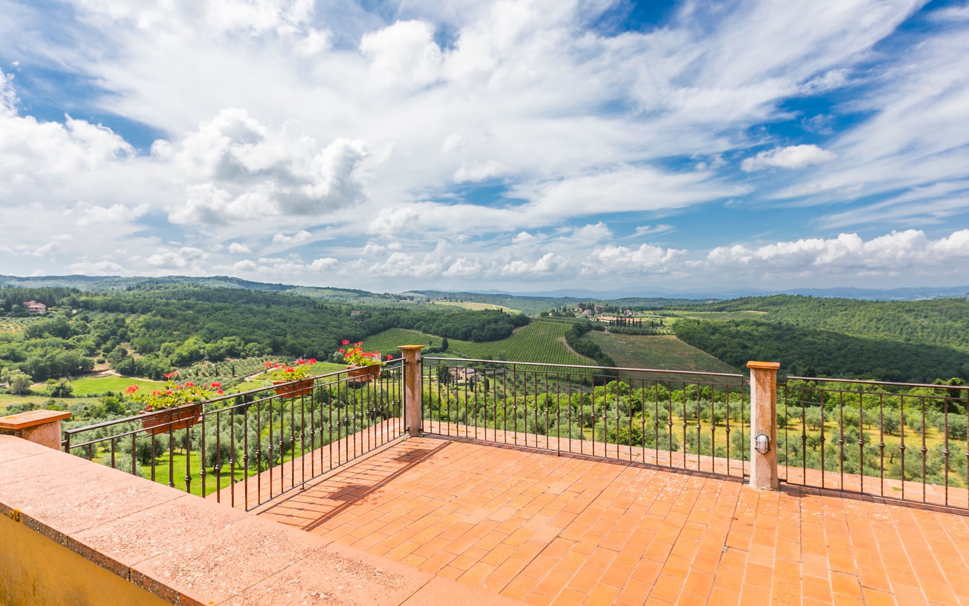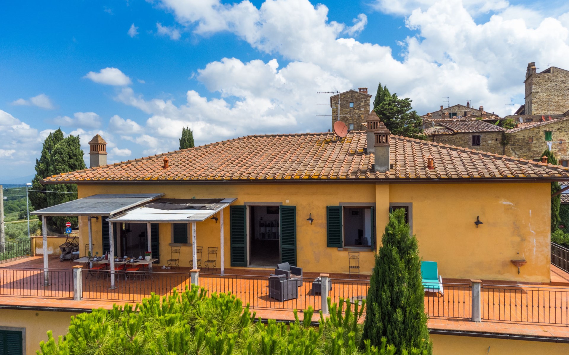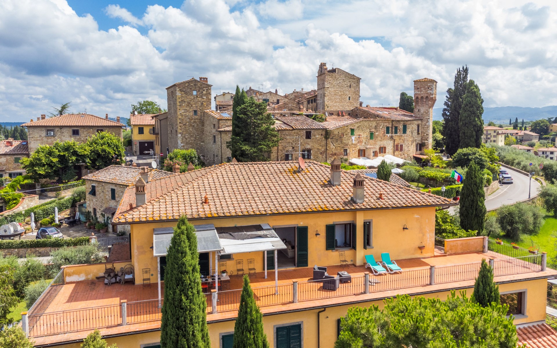Large, comfortable house "Casa Lensi", 418 m a.s.l., 2 storeys, surrounded by fields and vineyards. 3 apartments in the property. In the resort 50 m from the centre of San Donato in Poggio, on the outskirts, 10 km from the centre of Castellina in Chianti, 20 km from the centre of Poggibonsi, in a central, sunny, elevated position on a slope, in the residential district, 96 km from the sea. For shared use: property (fenced). Private: terrace (100 m2), garden furniture, barbecue. In the house: burglar alarm system. Pre-arrival grocery service. Storeroom available. Parking (for 3 cars) at the house on the premises. Shop 100 m, grocery, supermarket 800 m, restaurant 100 m, bar, bakery, café, pedestrian zone 50 m, 3 minute walk to the centre, bus stop "San Donato" 300 m, railway station "Barberino-Zambra" 11 km, sandy beach "Cecina Mare" 96 km, outdoor swimming pool 7 km, indoor swimming pool 11 km. Tennis 4 km, walking paths from the house 100 m, children's playground 50 m, fishing possibilities 4 km. Nearby attractions: Firenze 30 km, San Gimignano 25 km, Siena 47 km, Greve in Chianti 19 km, Volterra 50 km. Please note: baby equipment (included). Groups of teenagers on request only. The owner lives in the same residence.