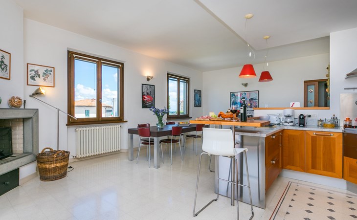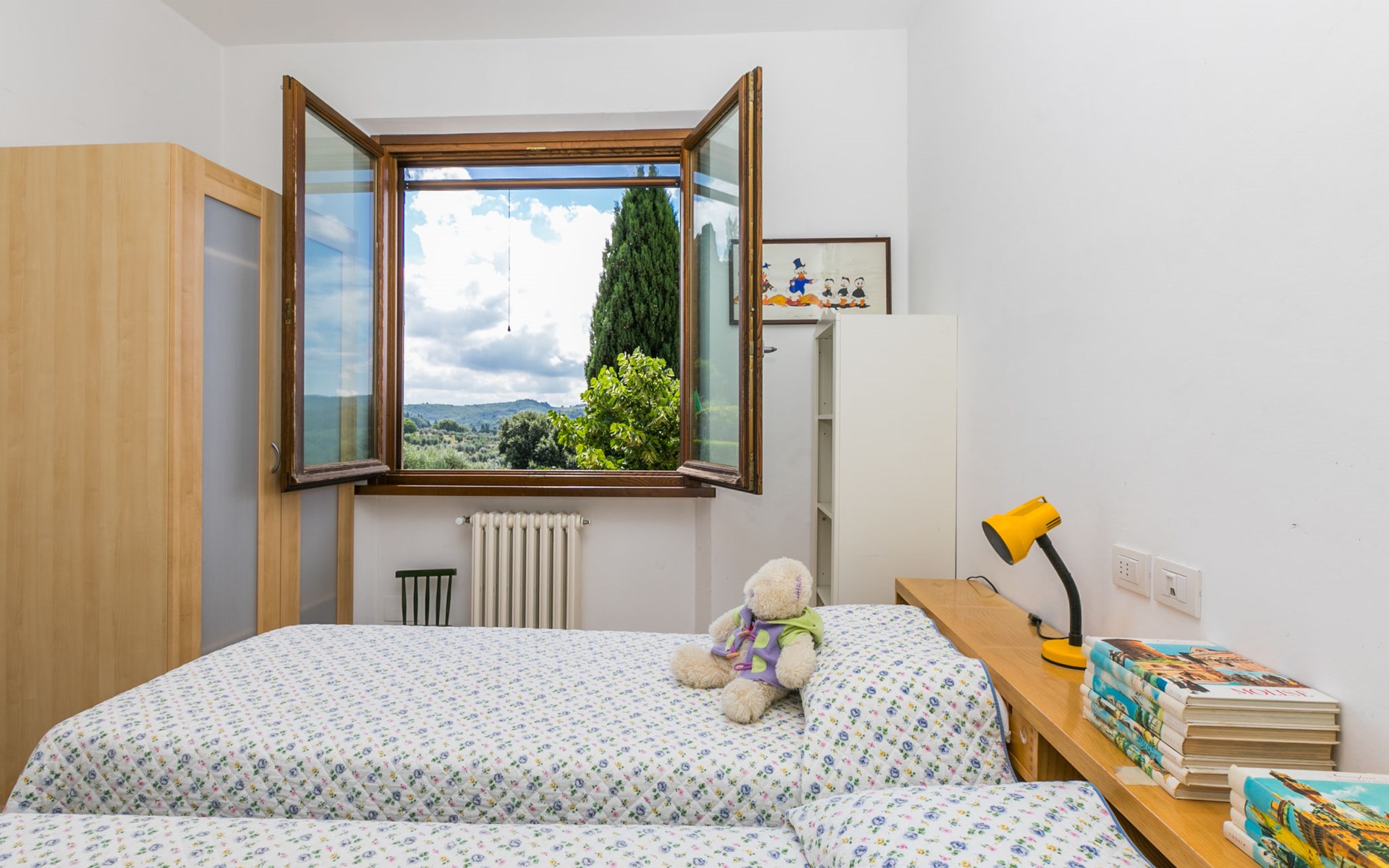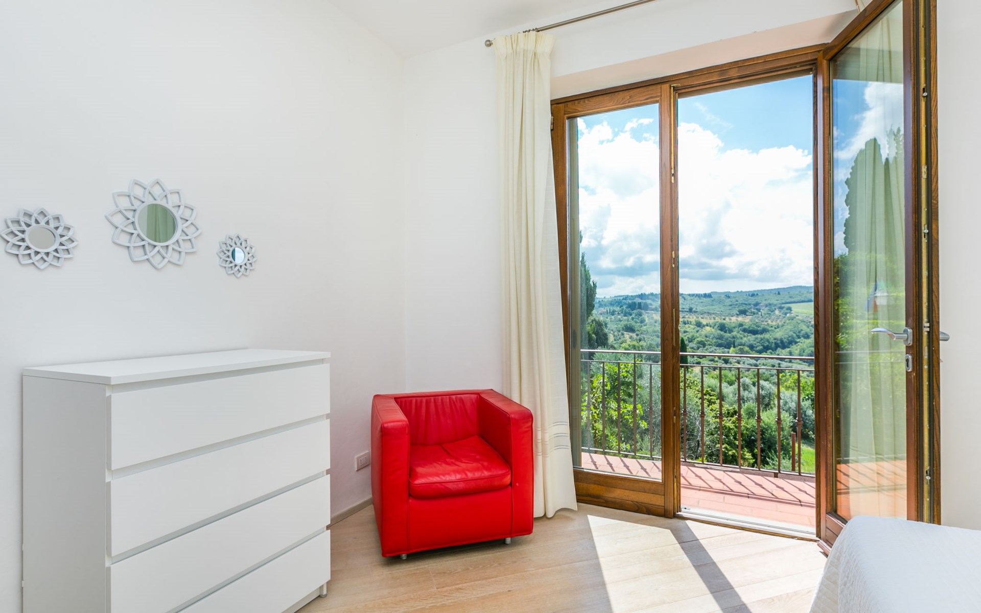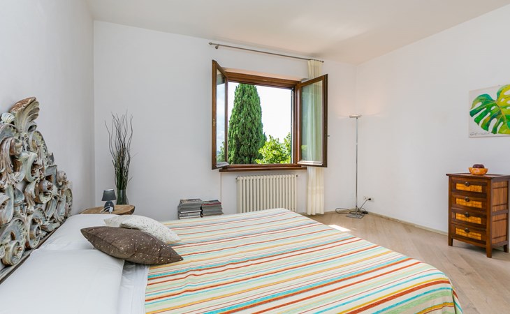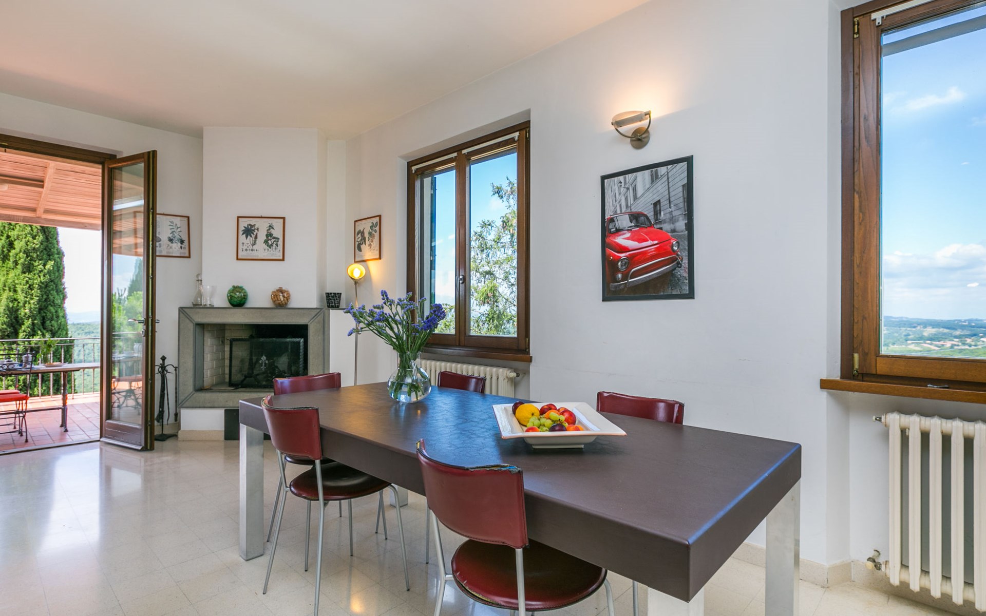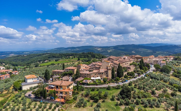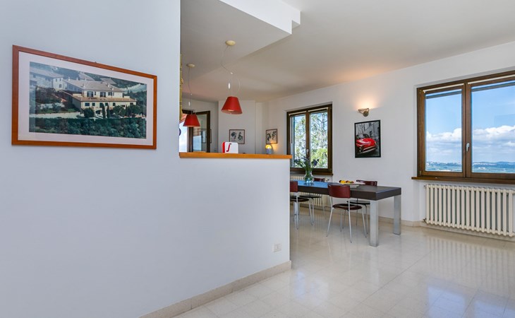 Large, comfortable house "Casa Lensi", 418 m a.s.l., 2 storeys, surrounded by fields and vineyards. 3 apartments in the property. In the resort 50 m from the centre of San Donato in Poggio, on the outskirts, 10 km from the centre of Castellina in Chianti, 20 km from the centre of Poggibonsi, in a central, sunny, elevated position on a slope, in the residential district, 96 km from the sea. For shared use: property (fenced). Private: terrace (100 m2), garden furniture, barbecue. In the house: burglar alarm system. Pre-arrival grocery service. Storeroom available. Parking (for 3 cars) at the house on the premises. Shop 100 m, grocery, supermarket 800 m, restaurant 100 m, bar, bakery, café, pedestrian zone 50 m, 3 minute walk to the centre, bus stop "San Donato" 300 m, railway station "Barberino-Zambra" 11 km, sandy beach "Cecina Mare" 96 km, outdoor swimming pool 7 km, indoor swimming pool 11 km. Tennis 4 km, walking paths from the house 100 m, children's playground 50 m, fishing possibilities 4 km. Nearby attractions: Firenze 30 km, San Gimignano 25 km, Siena 47 km, Greve in Chianti 19 km, Volterra 50 km. Please note: baby equipment (included). Groups of teenagers on request only. The owner lives in the same residence.