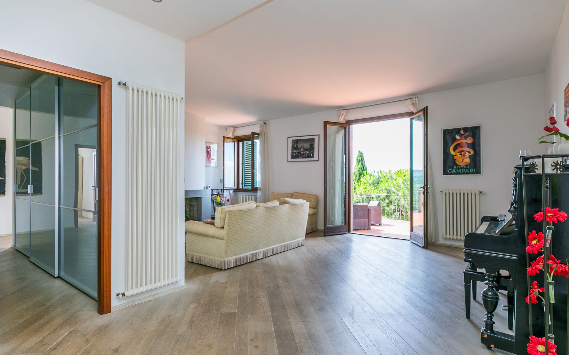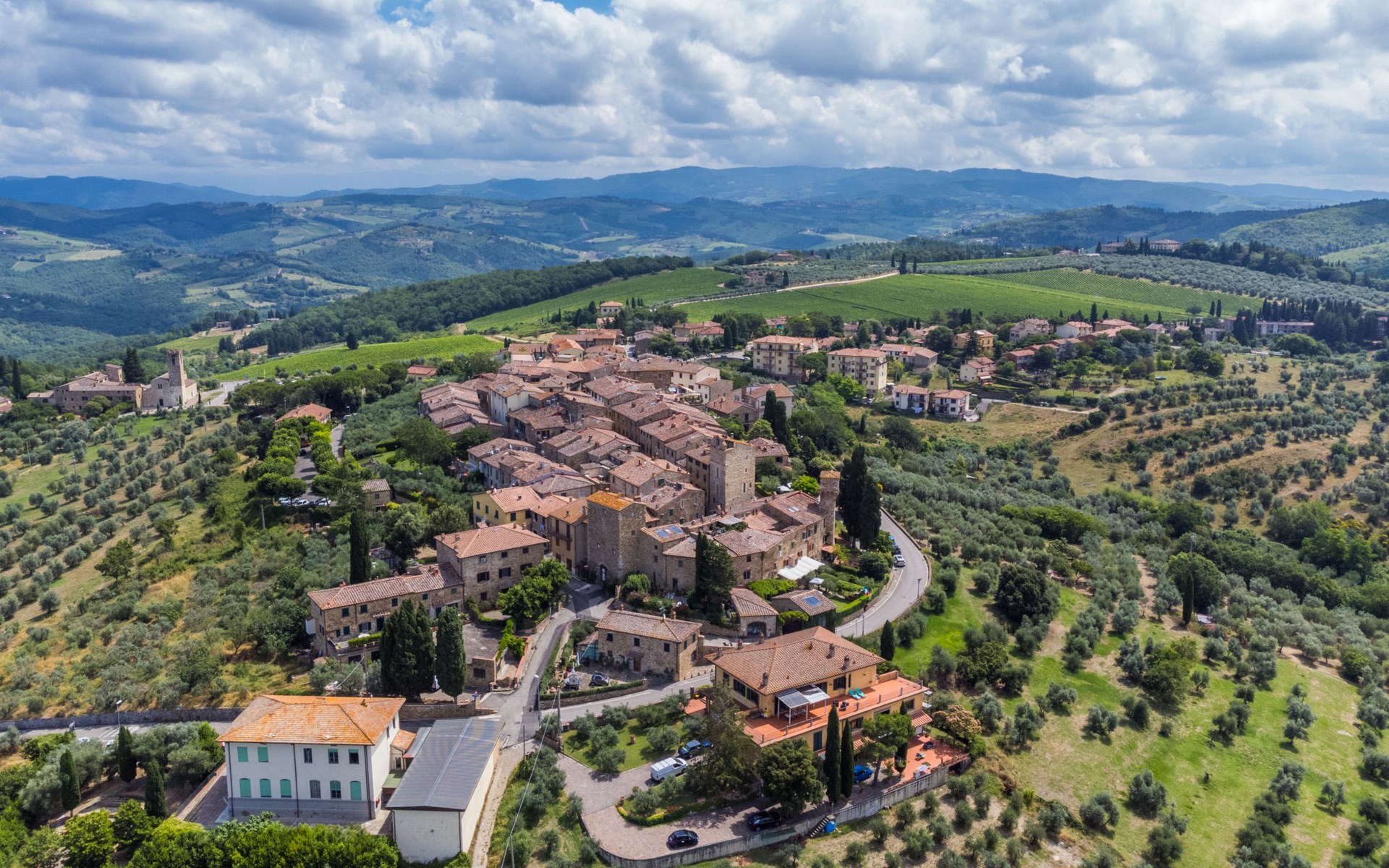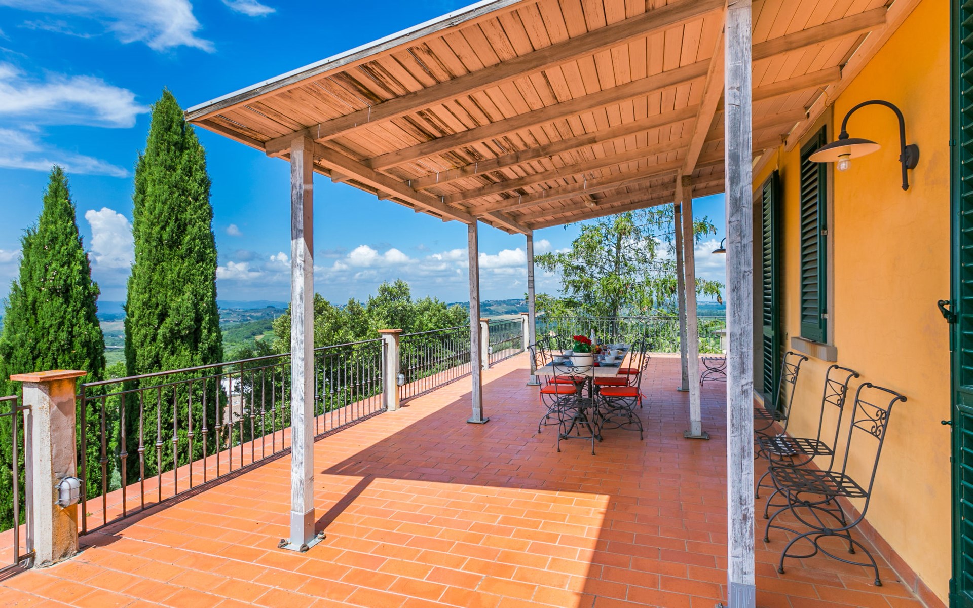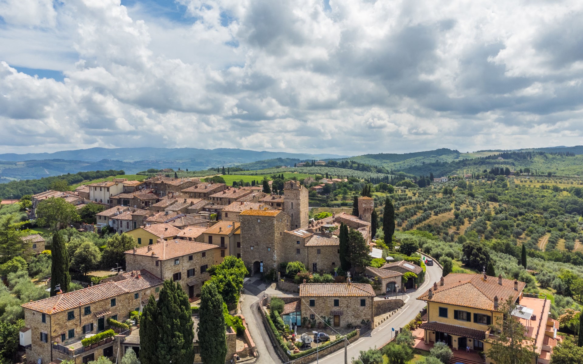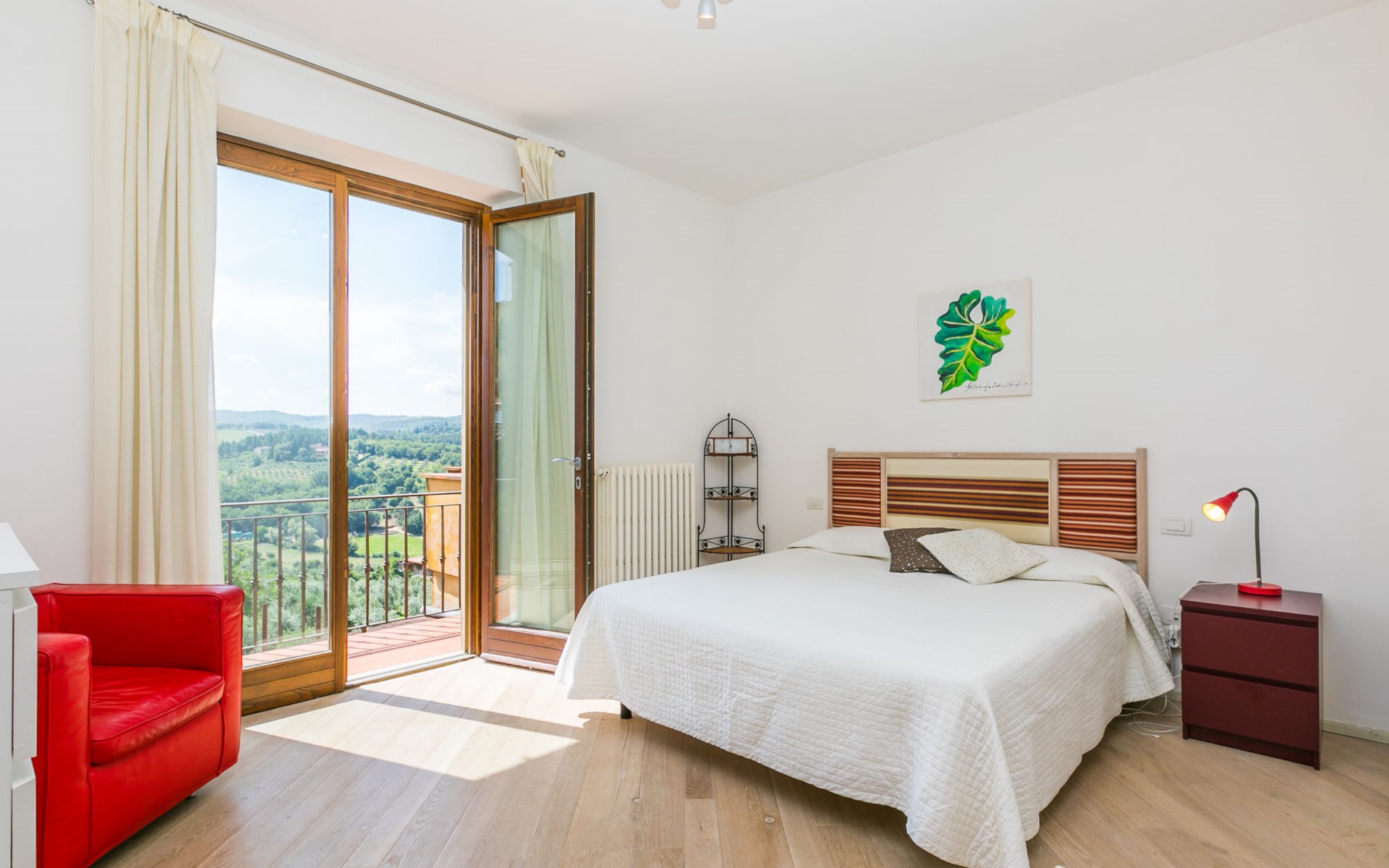 Large, comfortable house "Casa Lensi", 418 m a.s.l., 2 storeys, surrounded by fields and vineyards. 3 apartments in the property. In the resort 50 m from the centre of San Donato in Poggio, on the outskirts, 10 km from the centre of Castellina in Chianti, 20 km from the centre of Poggibonsi, in a central, sunny, elevated position on a slope, in the residential district, 96 km from the sea. For shared use: property (fenced). Private: terrace (100 m2), garden furniture, barbecue. In the house: burglar alarm system. Pre-arrival grocery service. Storeroom available. Parking (for 3 cars) at the house on the premises. Shop 100 m, grocery, supermarket 800 m, restaurant 100 m, bar, bakery, café, pedestrian zone 50 m, 3 minute walk to the centre, bus stop "San Donato" 300 m, railway station "Barberino-Zambra" 11 km, sandy beach "Cecina Mare" 96 km, outdoor swimming pool 7 km, indoor swimming pool 11 km. Tennis 4 km, walking paths from the house 100 m, children's playground 50 m, fishing possibilities 4 km. Nearby attractions: Firenze 30 km, San Gimignano 25 km, Siena 47 km, Greve in Chianti 19 km, Volterra 50 km. Please note: baby equipment (included). Groups of teenagers on request only. The owner lives in the same residence.