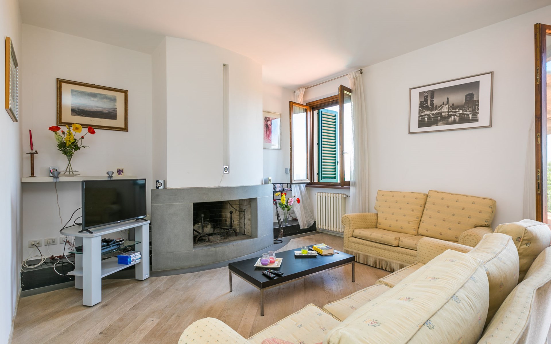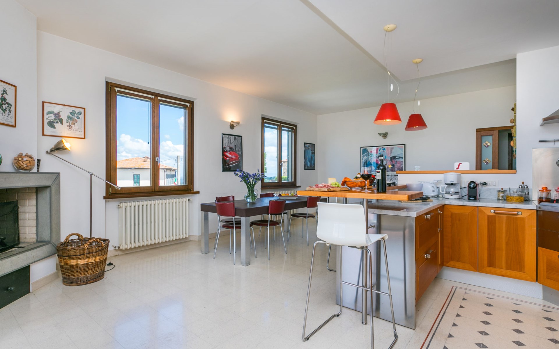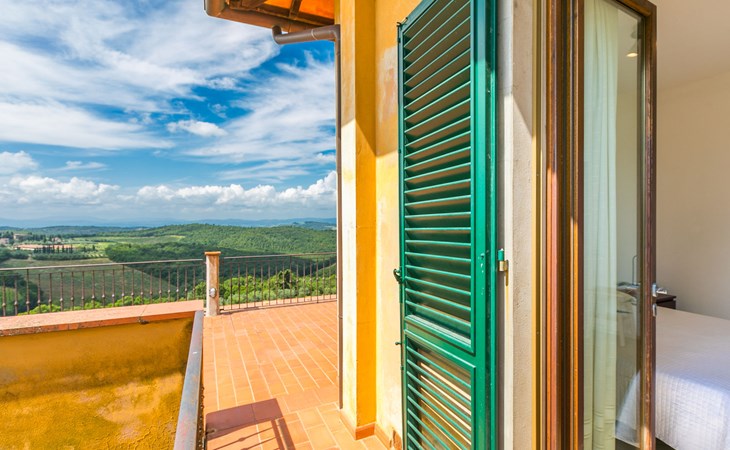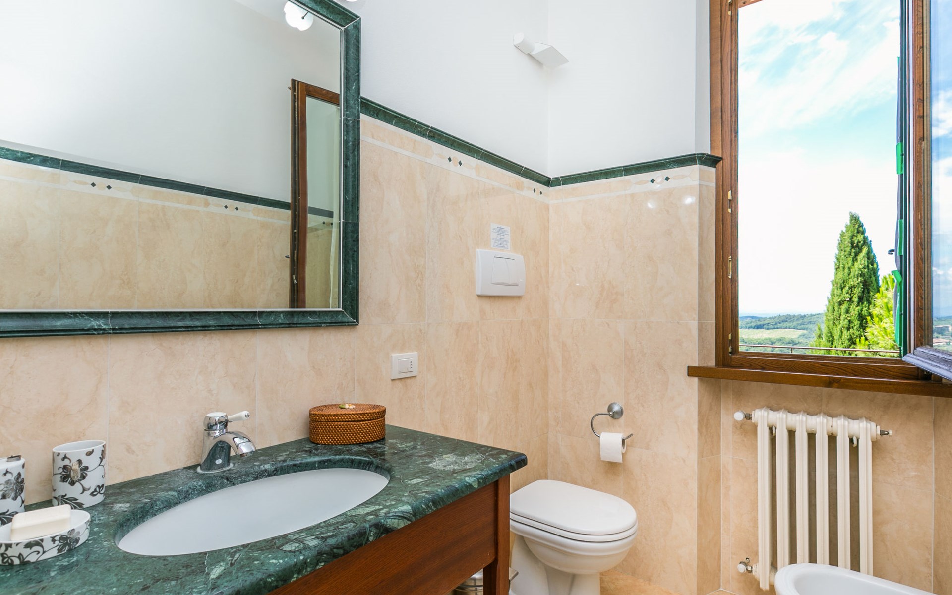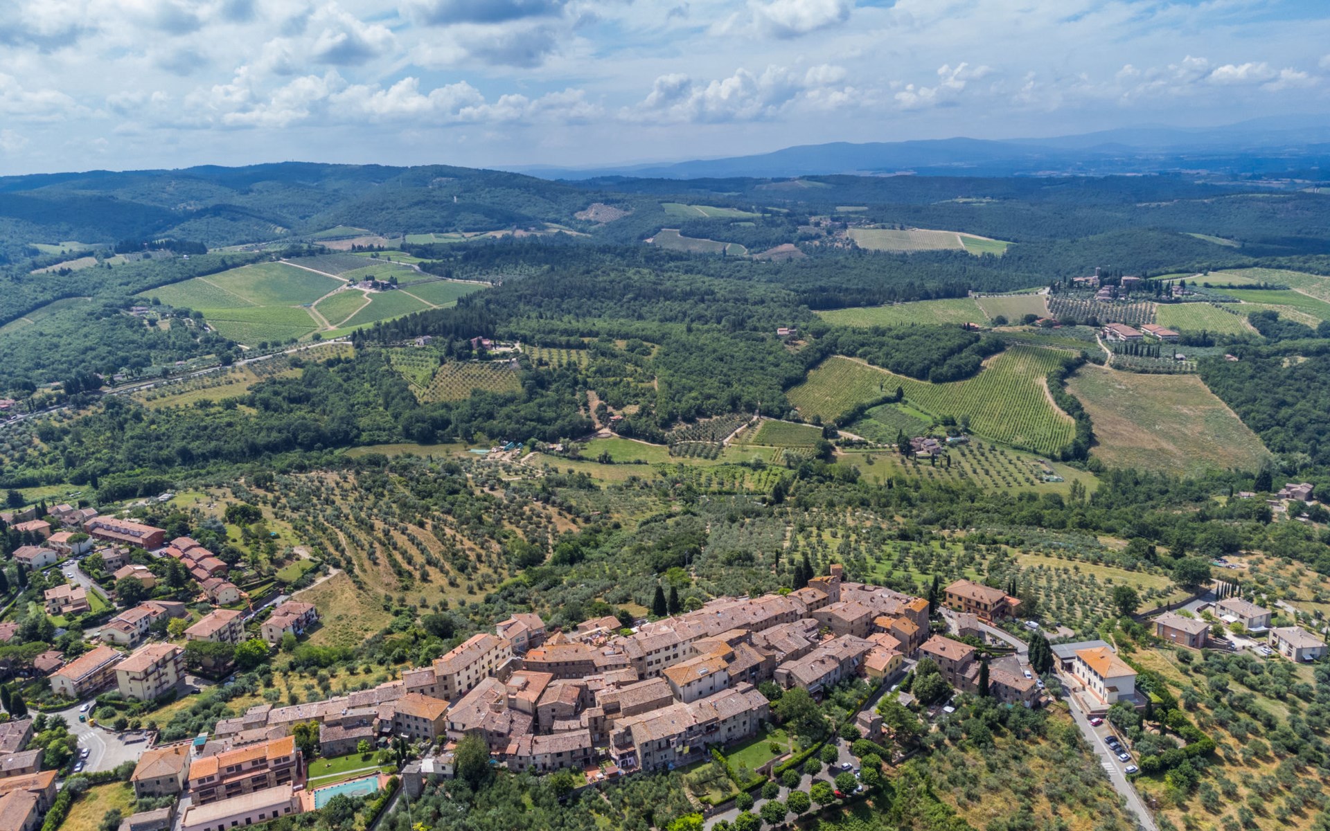 Large, comfortable house "Casa Lensi", 418 m a.s.l., 2 storeys, surrounded by fields and vineyards. 3 apartments in the property. In the resort 50 m from the centre of San Donato in Poggio, on the outskirts, 10 km from the centre of Castellina in Chianti, 20 km from the centre of Poggibonsi, in a central, sunny, elevated position on a slope, in the residential district, 96 km from the sea. For shared use: property (fenced). Private: terrace (100 m2), garden furniture, barbecue. In the house: burglar alarm system. Pre-arrival grocery service. Storeroom available. Parking (for 3 cars) at the house on the premises. Shop 100 m, grocery, supermarket 800 m, restaurant 100 m, bar, bakery, café, pedestrian zone 50 m, 3 minute walk to the centre, bus stop "San Donato" 300 m, railway station "Barberino-Zambra" 11 km, sandy beach "Cecina Mare" 96 km, outdoor swimming pool 7 km, indoor swimming pool 11 km. Tennis 4 km, walking paths from the house 100 m, children's playground 50 m, fishing possibilities 4 km. Nearby attractions: Firenze 30 km, San Gimignano 25 km, Siena 47 km, Greve in Chianti 19 km, Volterra 50 km. Please note: baby equipment (included). Groups of teenagers on request only. The owner lives in the same residence.
