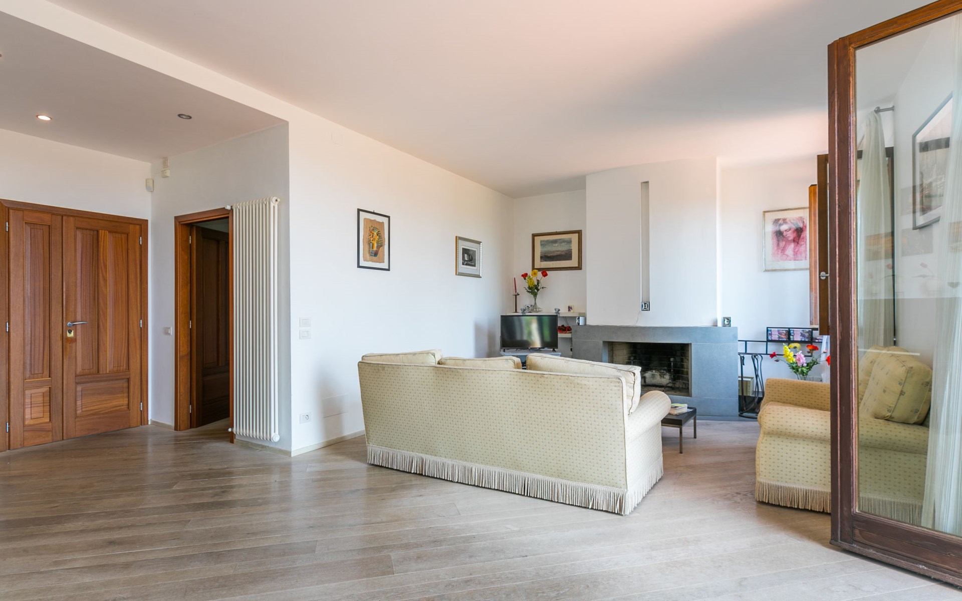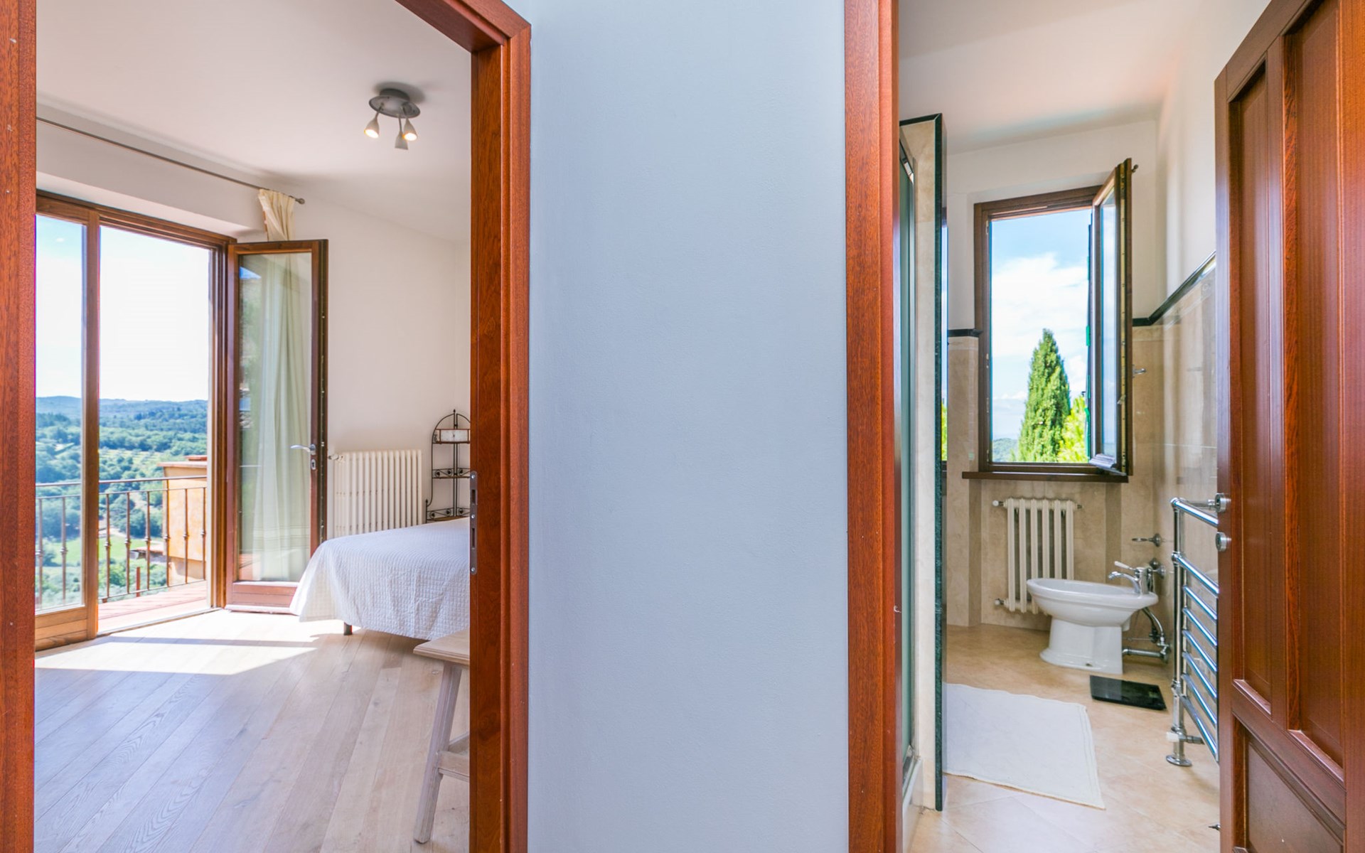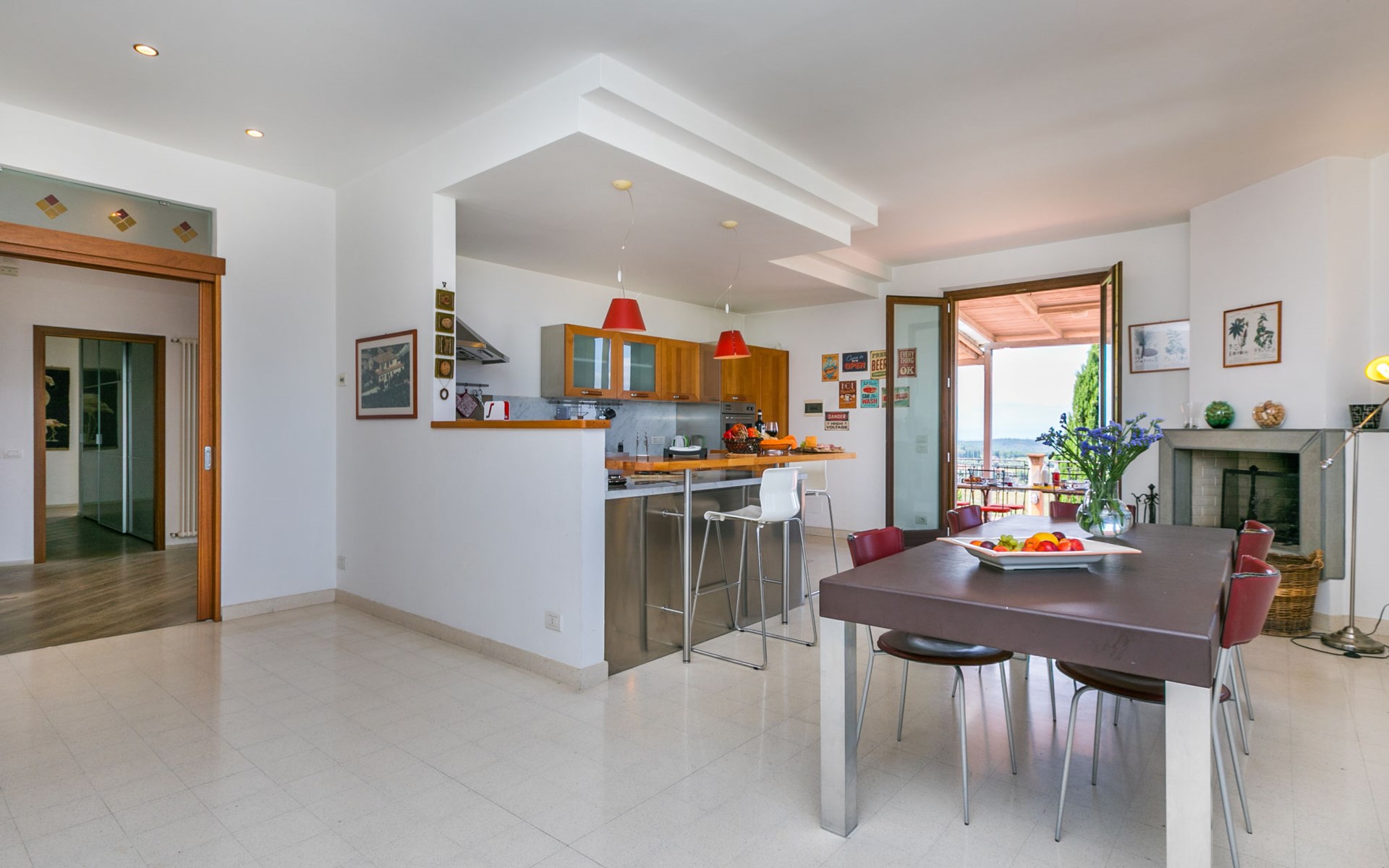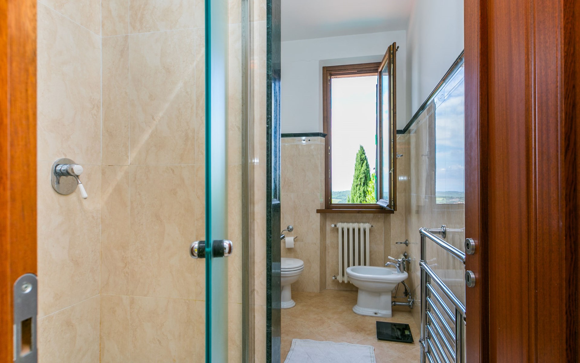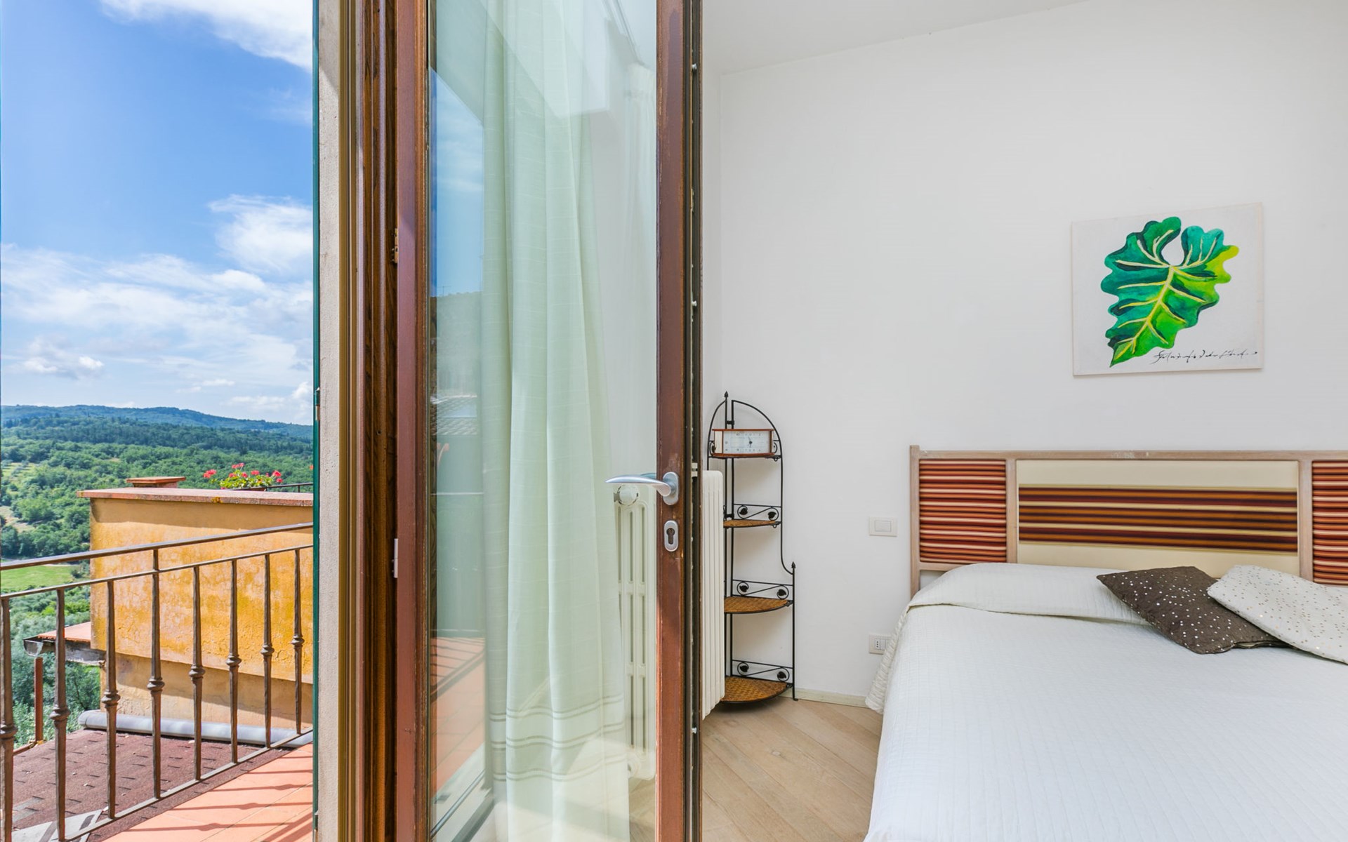 Large, comfortable house "Casa Lensi", 418 m a.s.l., 2 storeys, surrounded by fields and vineyards. 3 apartments in the property. In the resort 50 m from the centre of San Donato in Poggio, on the outskirts, 10 km from the centre of Castellina in Chianti, 20 km from the centre of Poggibonsi, in a central, sunny, elevated position on a slope, in the residential district, 96 km from the sea. For shared use: property (fenced). Private: terrace (100 m2), garden furniture, barbecue. In the house: burglar alarm system. Pre-arrival grocery service. Storeroom available. Parking (for 3 cars) at the house on the premises. Shop 100 m, grocery, supermarket 800 m, restaurant 100 m, bar, bakery, café, pedestrian zone 50 m, 3 minute walk to the centre, bus stop "San Donato" 300 m, railway station "Barberino-Zambra" 11 km, sandy beach "Cecina Mare" 96 km, outdoor swimming pool 7 km, indoor swimming pool 11 km. Tennis 4 km, walking paths from the house 100 m, children's playground 50 m, fishing possibilities 4 km. Nearby attractions: Firenze 30 km, San Gimignano 25 km, Siena 47 km, Greve in Chianti 19 km, Volterra 50 km. Please note: baby equipment (included). Groups of teenagers on request only. The owner lives in the same residence.