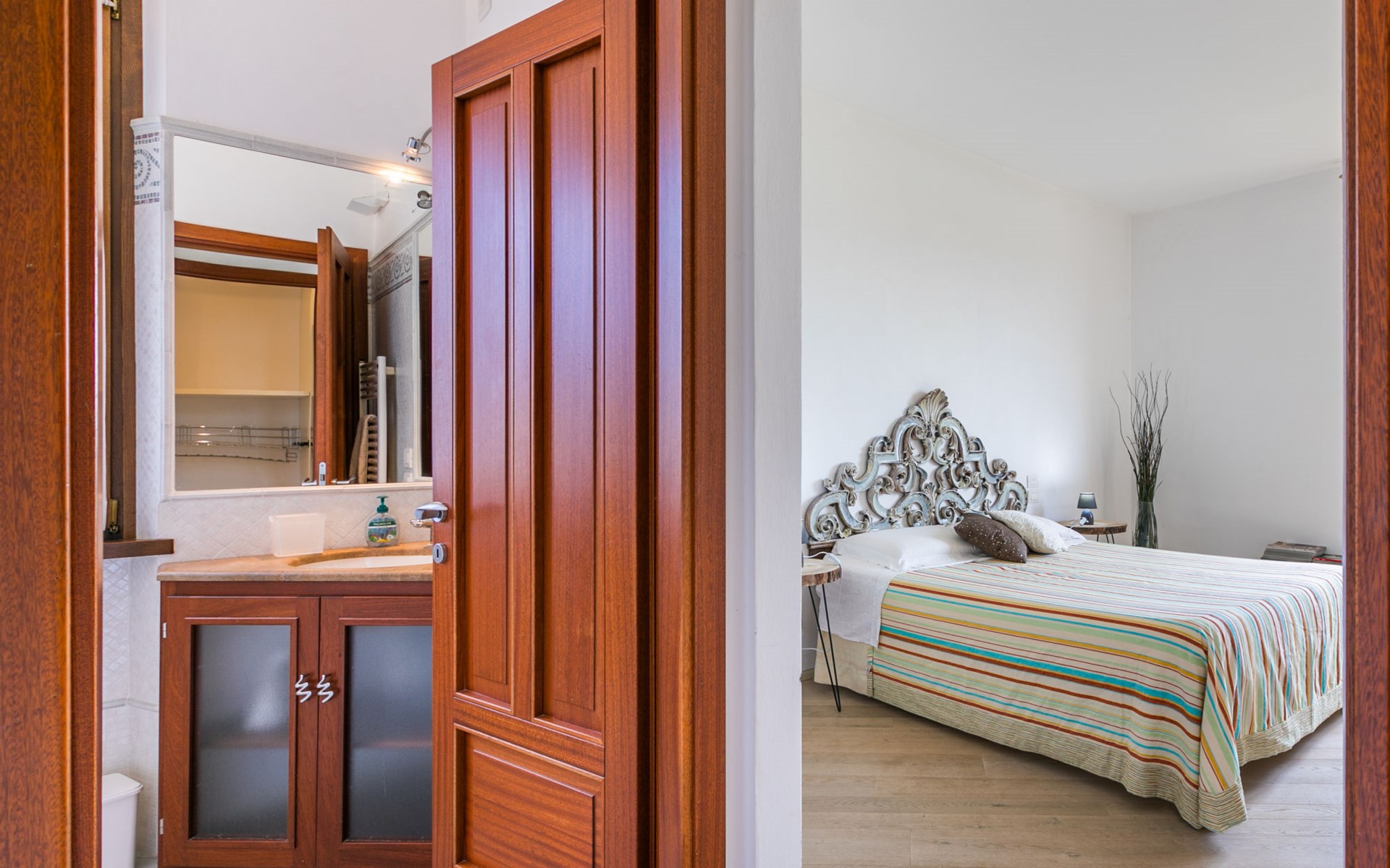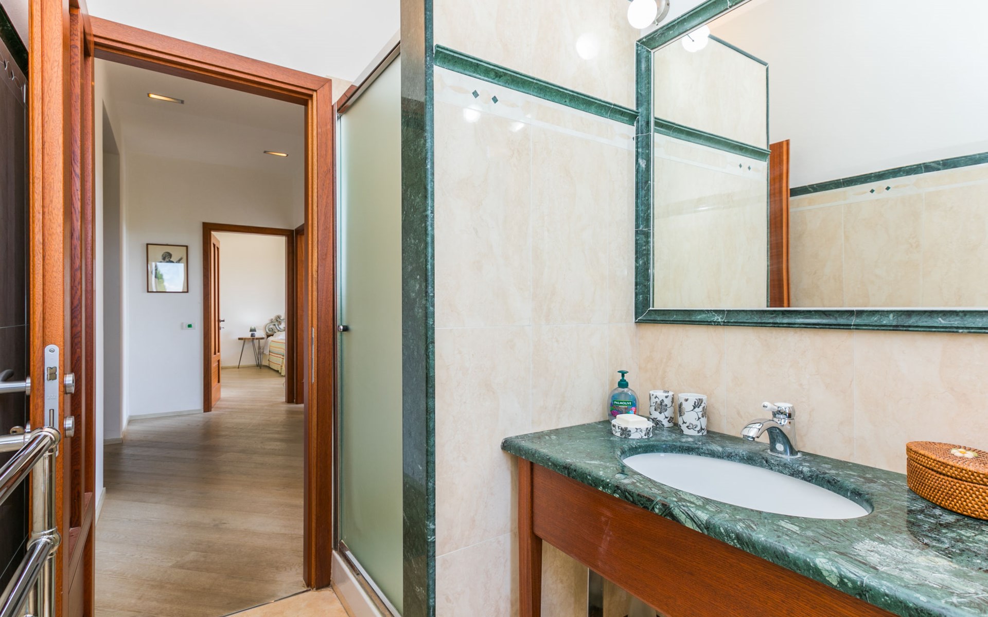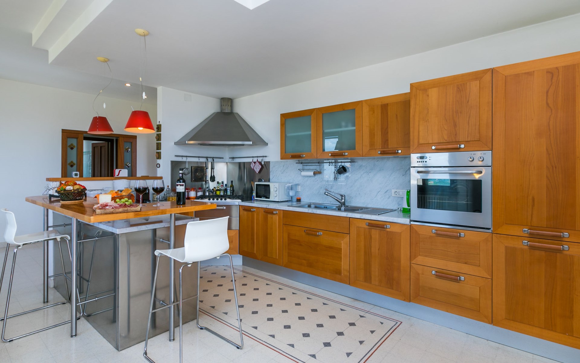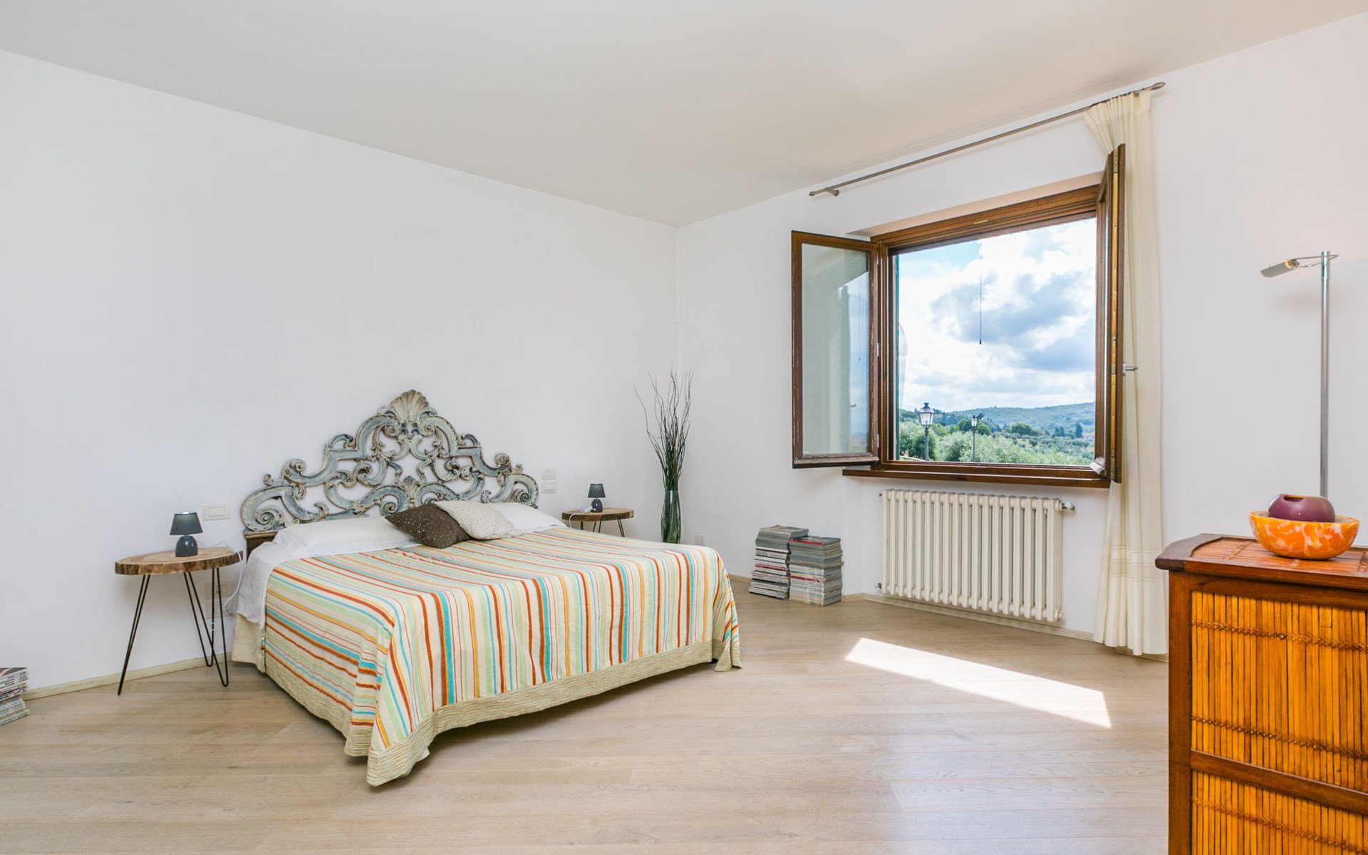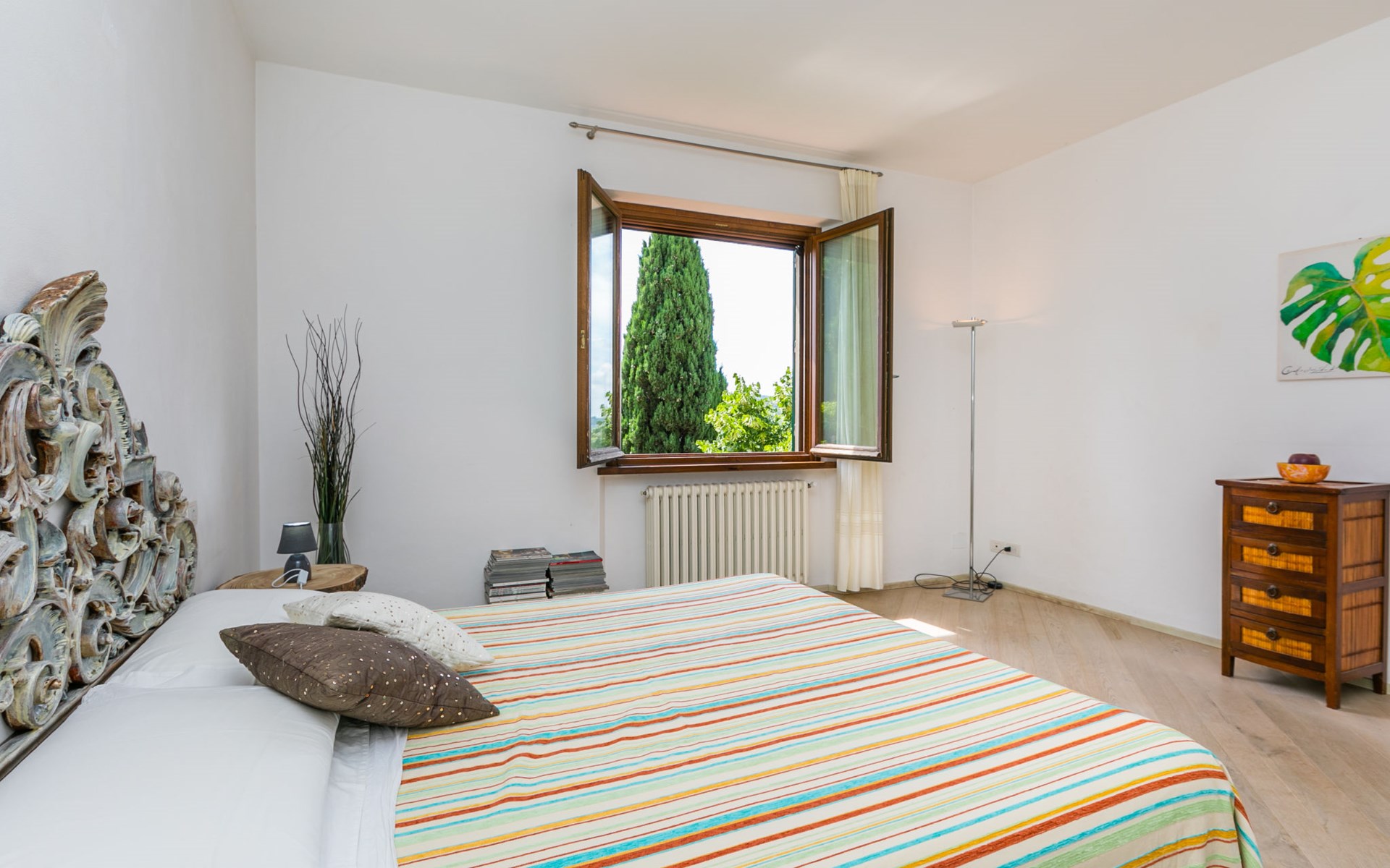 Large, comfortable house "Casa Lensi", 418 m a.s.l., 2 storeys, surrounded by fields and vineyards. 3 apartments in the property. In the resort 50 m from the centre of San Donato in Poggio, on the outskirts, 10 km from the centre of Castellina in Chianti, 20 km from the centre of Poggibonsi, in a central, sunny, elevated position on a slope, in the residential district, 96 km from the sea. For shared use: property (fenced). Private: terrace (100 m2), garden furniture, barbecue. In the house: burglar alarm system. Pre-arrival grocery service. Storeroom available. Parking (for 3 cars) at the house on the premises. Shop 100 m, grocery, supermarket 800 m, restaurant 100 m, bar, bakery, café, pedestrian zone 50 m, 3 minute walk to the centre, bus stop "San Donato" 300 m, railway station "Barberino-Zambra" 11 km, sandy beach "Cecina Mare" 96 km, outdoor swimming pool 7 km, indoor swimming pool 11 km. Tennis 4 km, walking paths from the house 100 m, children's playground 50 m, fishing possibilities 4 km. Nearby attractions: Firenze 30 km, San Gimignano 25 km, Siena 47 km, Greve in Chianti 19 km, Volterra 50 km. Please note: baby equipment (included). Groups of teenagers on request only. The owner lives in the same residence.