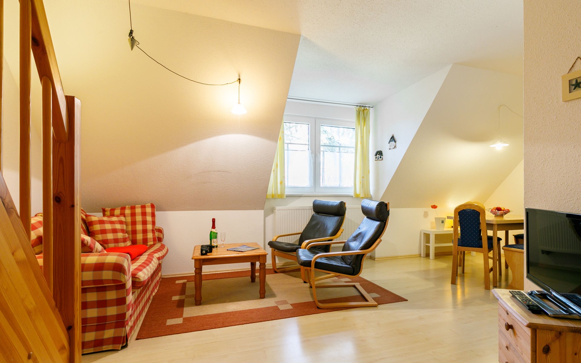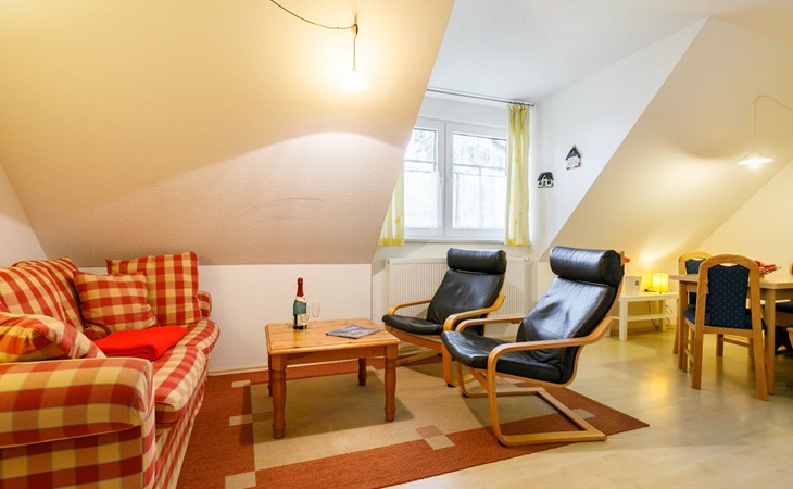 Terraced house "Moeller". In the resort 300 m from the centre of Koserow, 1.2 km from the sea, 1.2 km from the beach. In the house: central heating system. Parking on the premises. Supermarket 500 m, restaurant 200 m, bakery 500 m, café 300 m, bus stop 450 m, railway station 950 m, sandy beach 1.2 km, thermal baths "Bernsteintherme" 9 km. Golf course (18 hole) 18 km, surf school 9 km, minigolf 110 m.