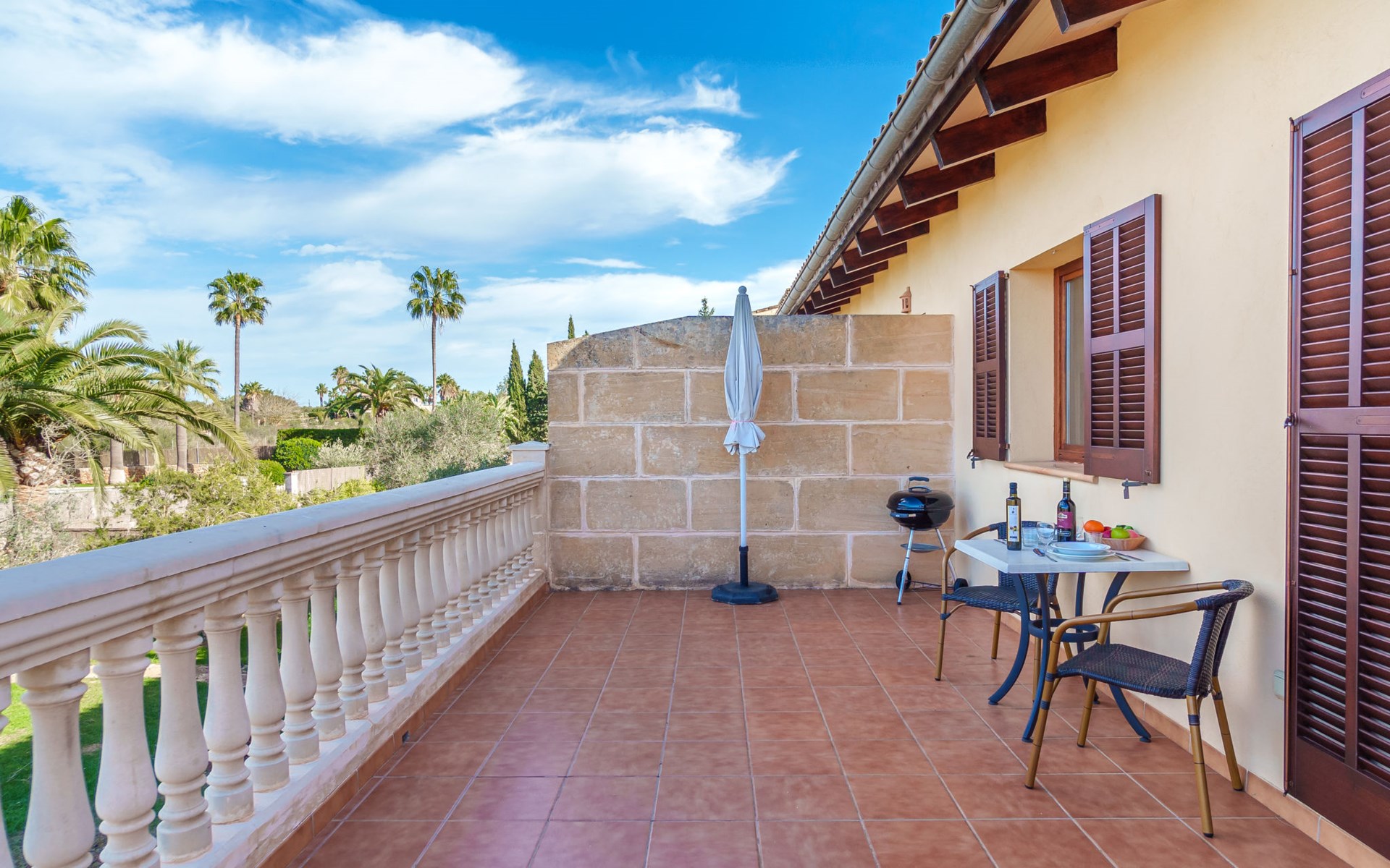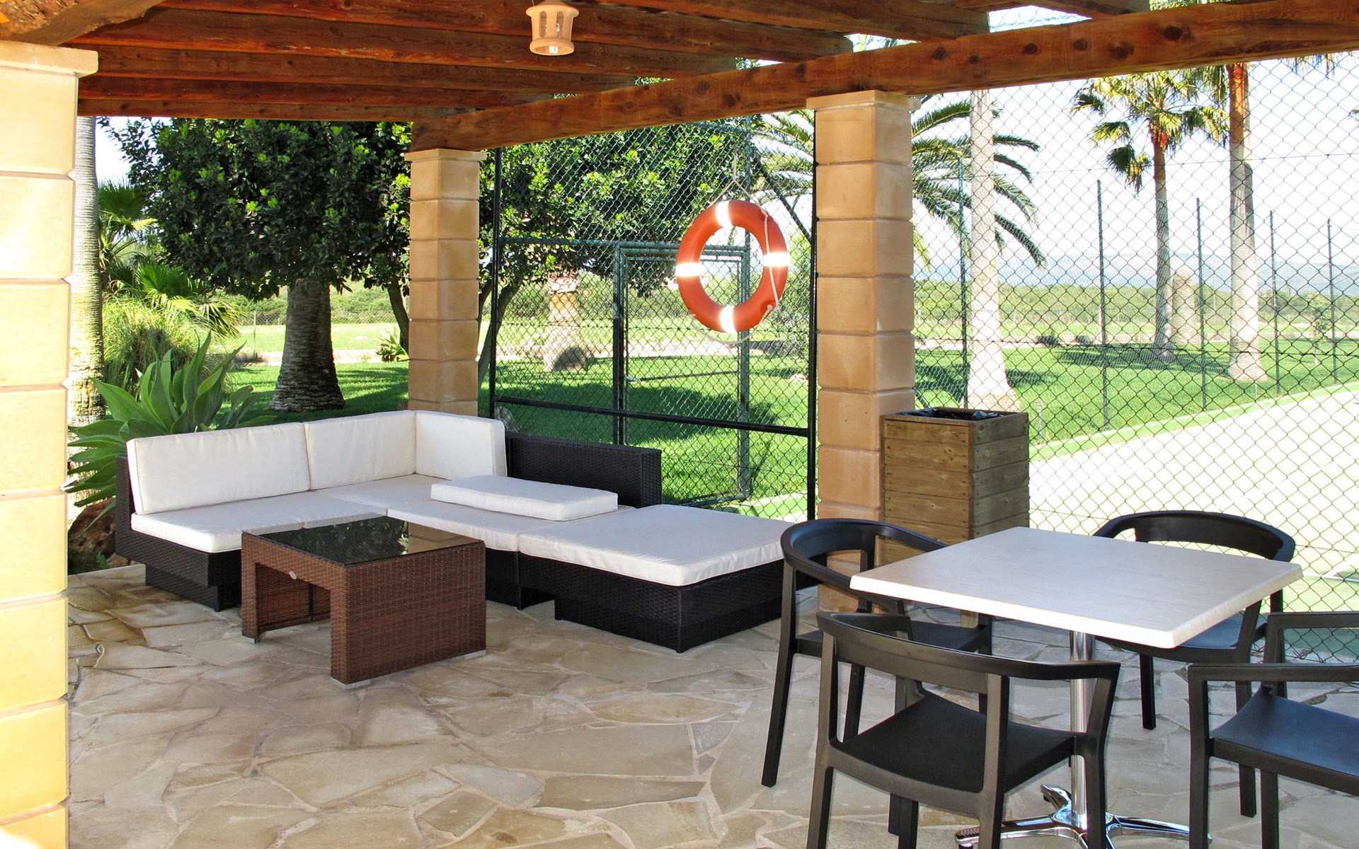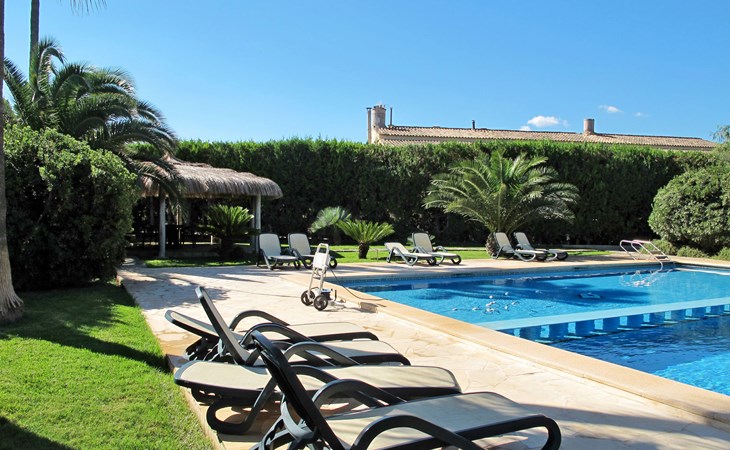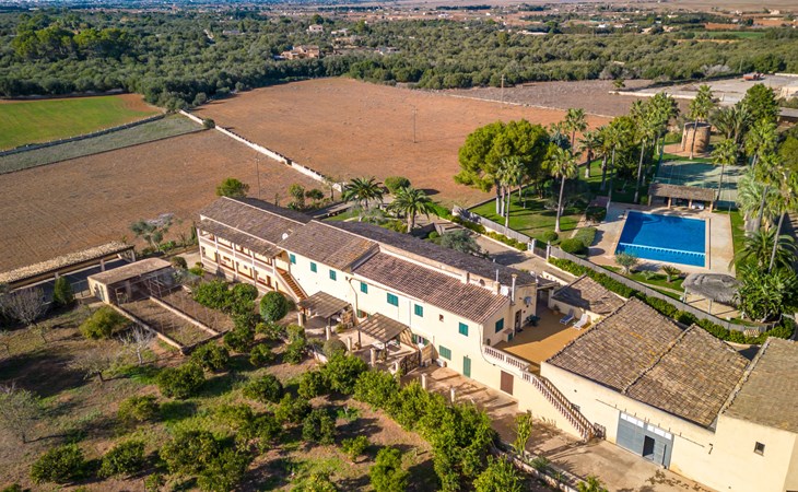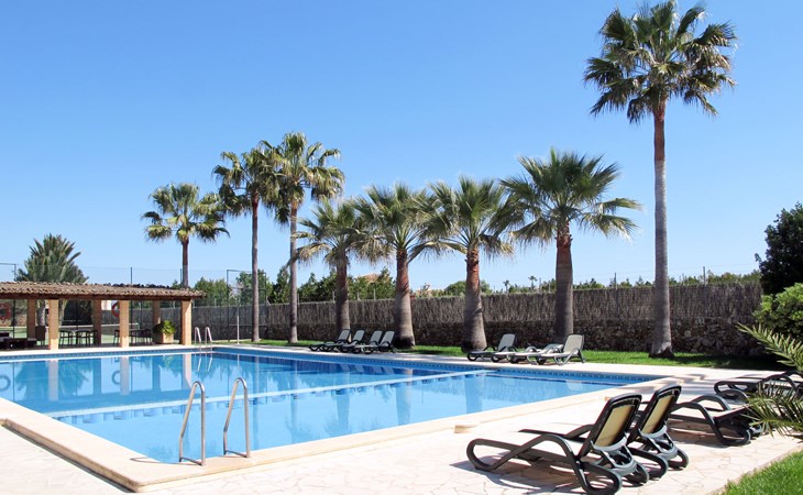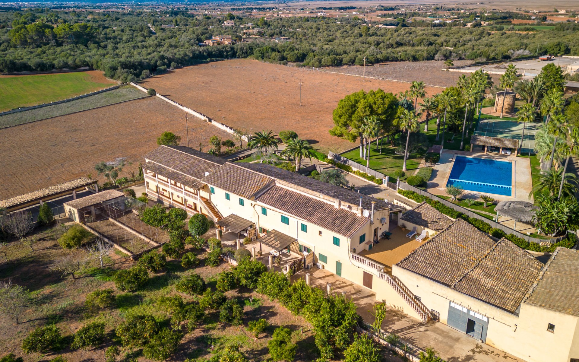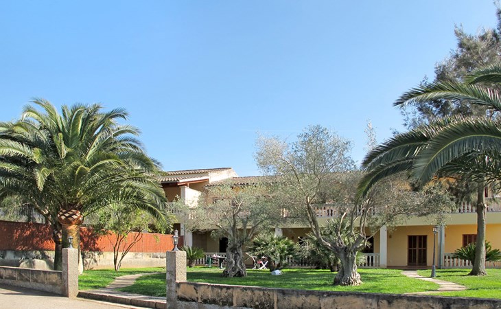 Son Sant Marti 3 km from Can Picafort: Large, child friendly country house "Finca Can Corritx", 2 storeys, surrounded by trees and fields. Property composed of main house and outbuilding 7 km from the centre of Muro, 3 km from the centre of Ca'n Picafort, 12 km from the centre of Alcudia, in a quiet, sunny position, 3 km from the sea, 3 km from the beach, in the countryside, south facing position. For shared use: property 10 ha with lawn and trees, orchard, swimming pool (20 x 12 m, seasonal availability: 01.Jan. - 31.Dec.). WC in the pool area, children's pool, outdoor shower, tennis, patio, terrace, garden furniture, pool maintenance by the owner/gardener. In the house: storage room for bicycles. Roofed, parking on the premises. Shop 3 km, grocery 2 km, supermarket 2 km, restaurant 3 km, bar 1 km, bakery 3 km, café 2 km, bus stop "Camping Can Picafort" 2 km, railway station "Sa Pobla" 10 km, ferry "Puerto de Alcudia" 16 km, sandy beach "Ca'n Picafort" 3 km. Sports harbour 5 km, marina 16 km, golf course (18 hole) 18 km, surf school 6 km, sailing school 6 km, tennis 4 km, riding stable 5 km, sports centre 4 km, walking paths from the house 8 km, cycle lane 6 km. Nearby attractions: Formentor 20 km, Albufera de Alcudia 10 km, Cuevas de Campanet 18 km. Hiking paths: Albufera de Alcudia 10 km. Please note: car recommended. On the estate animal husbandry. The owner lives in the same residence.