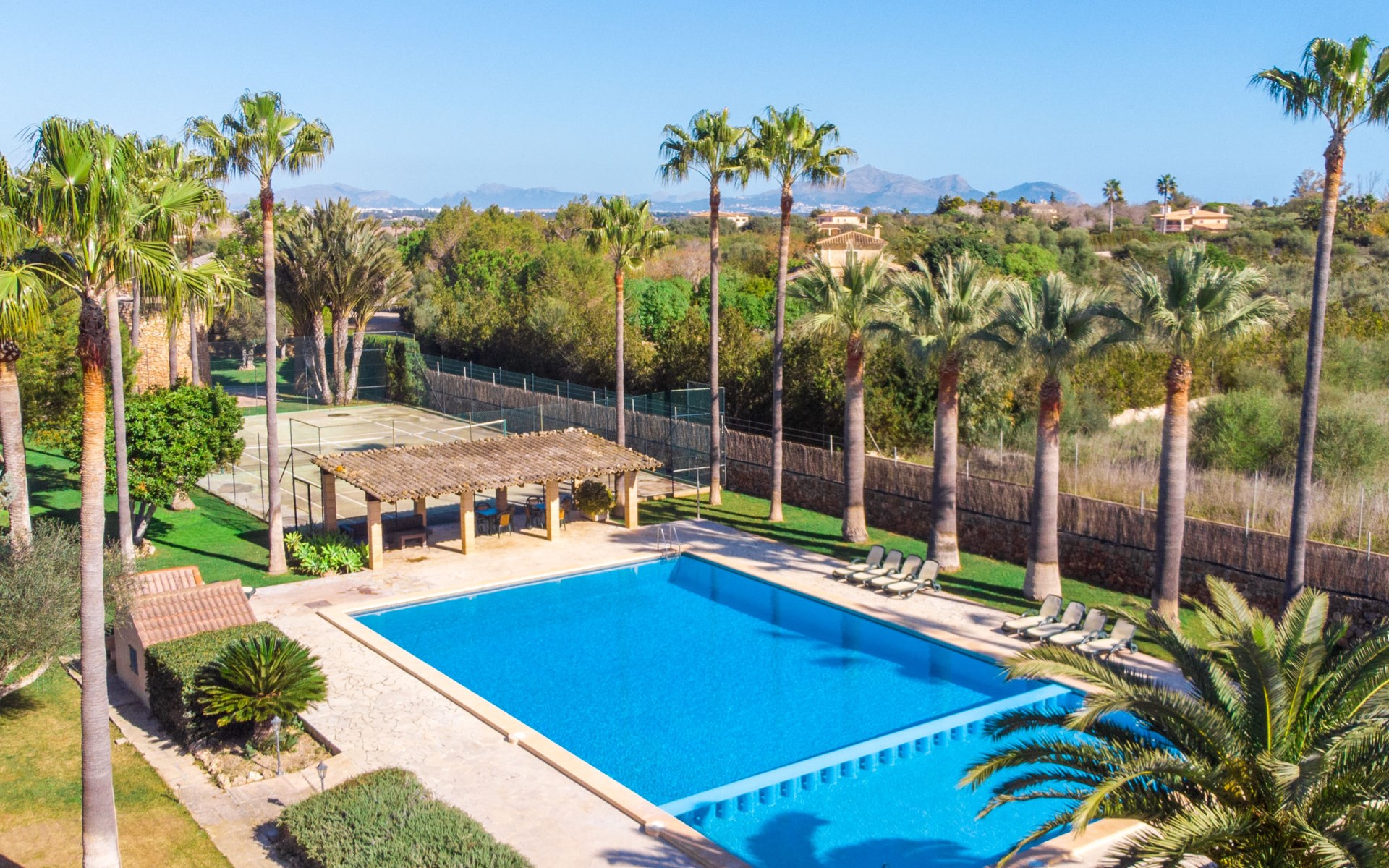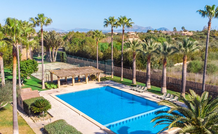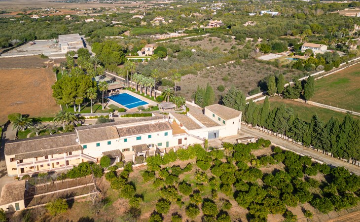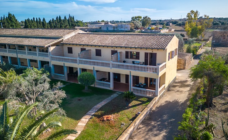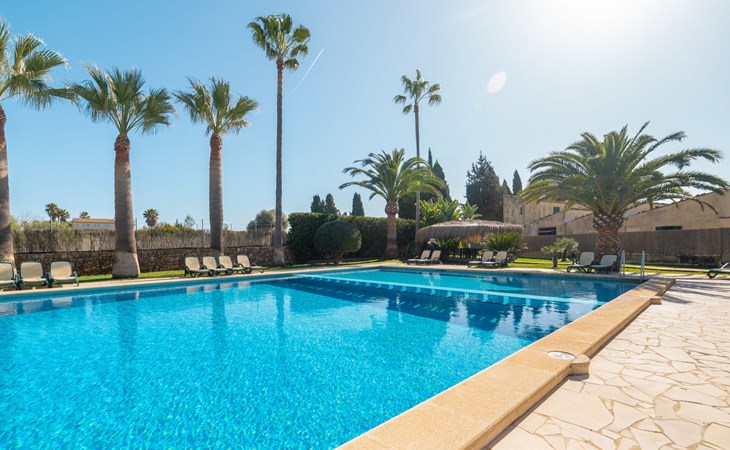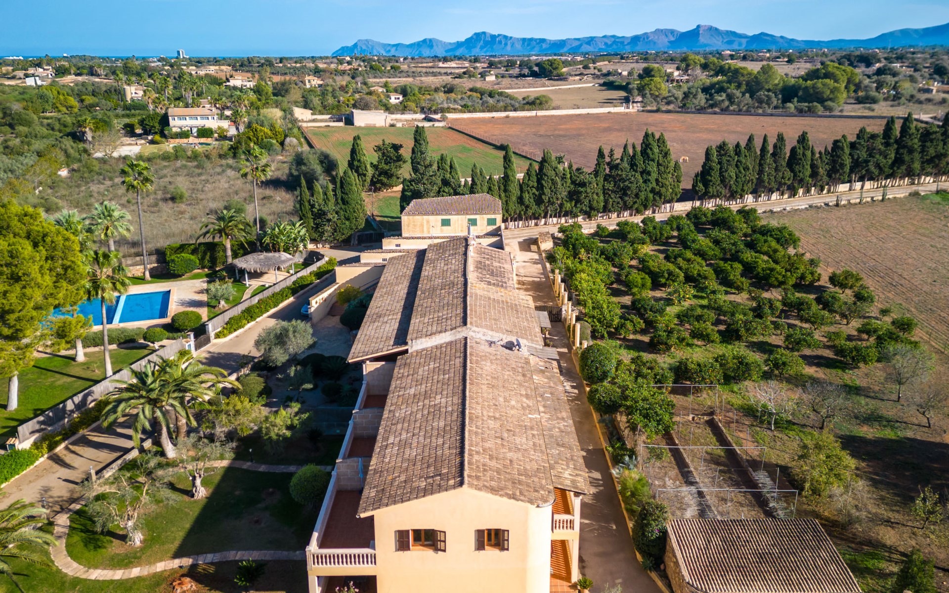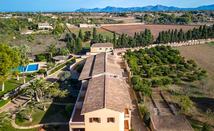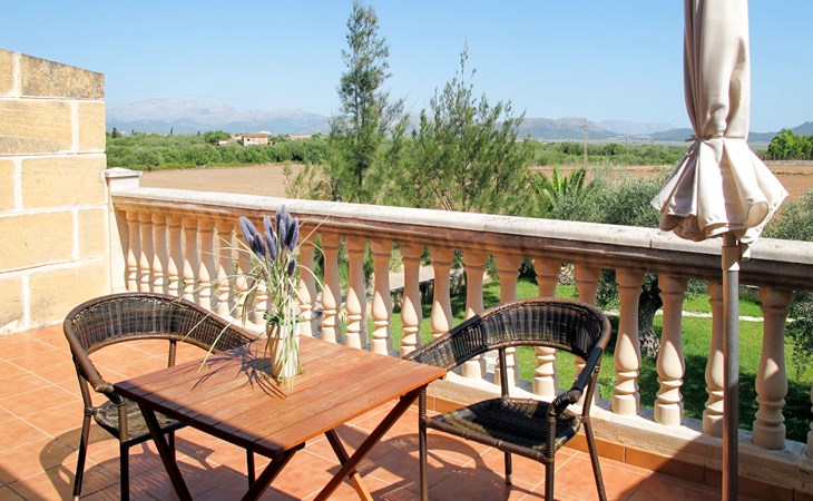 Son Sant Marti 3 km from Can Picafort: Large, child friendly country house "Finca Can Corritx", 2 storeys, surrounded by trees and fields. Property composed of main house and outbuilding 7 km from the centre of Muro, 3 km from the centre of Ca'n Picafort, 12 km from the centre of Alcudia, in a quiet, sunny position, 3 km from the sea, 3 km from the beach, in the countryside, south facing position. For shared use: property 10 ha with lawn and trees, orchard, swimming pool (20 x 12 m, seasonal availability: 01.Jan. - 31.Dec.). WC in the pool area, children's pool, outdoor shower, tennis, patio, terrace, garden furniture, pool maintenance by the owner/gardener. In the house: storage room for bicycles. Roofed, parking on the premises. Shop 3 km, grocery 2 km, supermarket 2 km, restaurant 3 km, bar 1 km, bakery 3 km, café 2 km, bus stop "Camping Can Picafort" 2 km, railway station "Sa Pobla" 10 km, ferry "Puerto de Alcudia" 16 km, sandy beach "Ca'n Picafort" 3 km. Sports harbour 5 km, marina 16 km, golf course (18 hole) 18 km, surf school 6 km, sailing school 6 km, tennis 4 km, riding stable 5 km, sports centre 4 km, walking paths from the house 8 km, cycle lane 6 km. Nearby attractions: Formentor 20 km, Albufera de Alcudia 10 km, Cuevas de Campanet 18 km. Hiking paths: Albufera de Alcudia 10 km. Please note: car recommended. On the estate animal husbandry. The owner lives in the same residence.