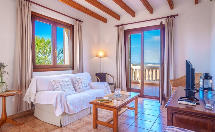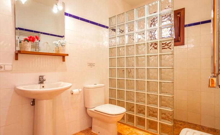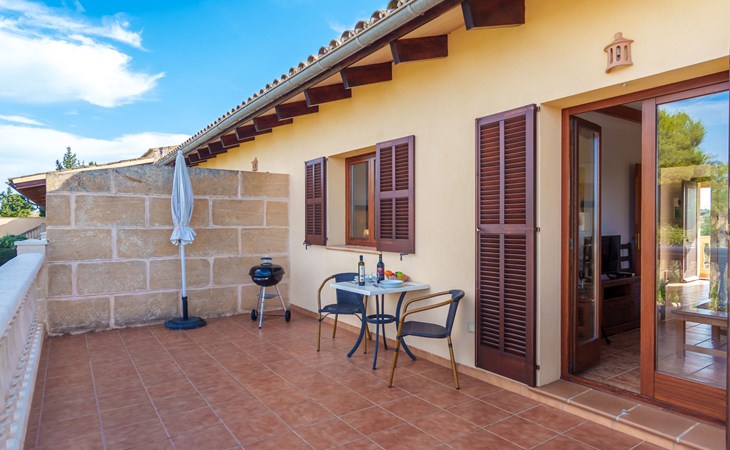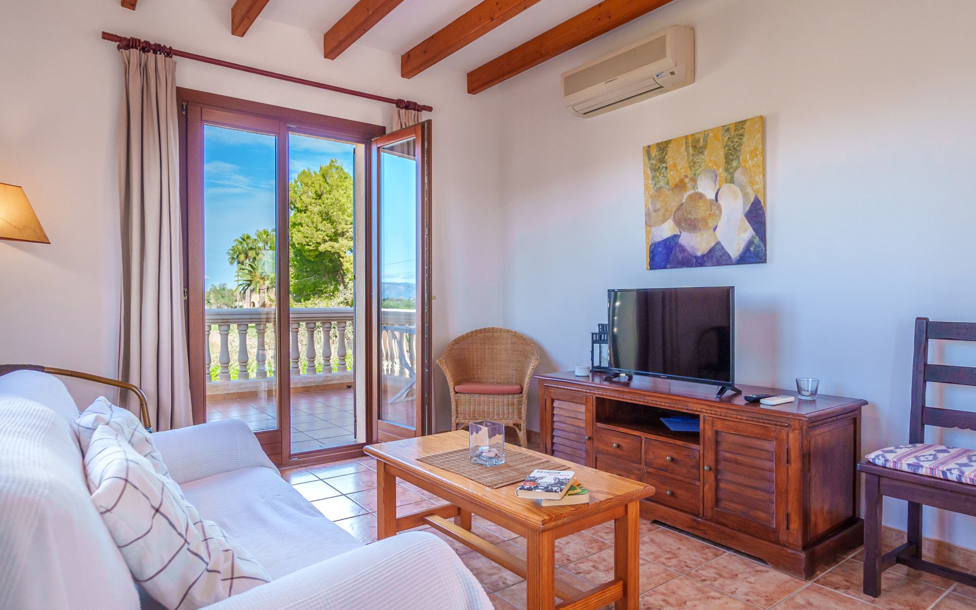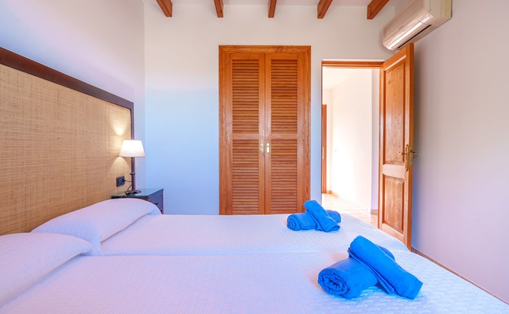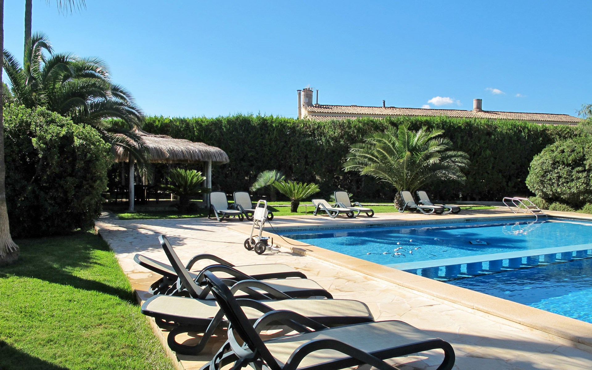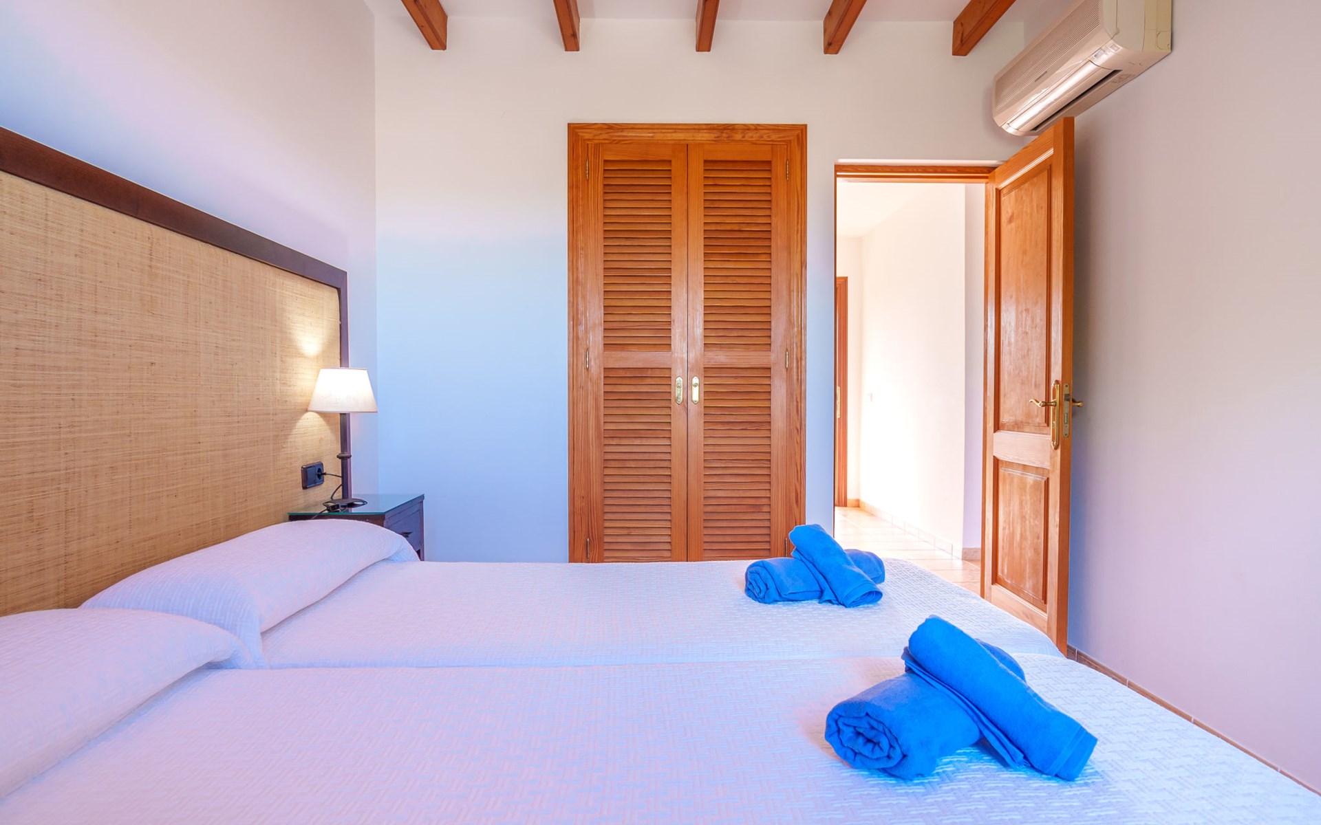 Son Sant Marti 3 km from Can Picafort: Large, child friendly country house "Finca Can Corritx", 2 storeys, surrounded by trees and fields. Property composed of main house and outbuilding 7 km from the centre of Muro, 3 km from the centre of Ca'n Picafort, 12 km from the centre of Alcudia, in a quiet, sunny position, 3 km from the sea, 3 km from the beach, in the countryside, south facing position. For shared use: property 10 ha with lawn and trees, orchard, swimming pool (20 x 12 m, seasonal availability: 01.Jan. - 31.Dec.). WC in the pool area, children's pool, outdoor shower, tennis, patio, terrace, garden furniture, pool maintenance by the owner/gardener. In the house: storage room for bicycles. Roofed, parking on the premises. Shop 3 km, grocery 2 km, supermarket 2 km, restaurant 3 km, bar 1 km, bakery 3 km, café 2 km, bus stop "Camping Can Picafort" 2 km, railway station "Sa Pobla" 10 km, ferry "Puerto de Alcudia" 16 km, sandy beach "Ca'n Picafort" 3 km. Sports harbour 5 km, marina 16 km, golf course (18 hole) 18 km, surf school 6 km, sailing school 6 km, tennis 4 km, riding stable 5 km, sports centre 4 km, walking paths from the house 8 km, cycle lane 6 km. Nearby attractions: Formentor 20 km, Albufera de Alcudia 10 km, Cuevas de Campanet 18 km. Hiking paths: Albufera de Alcudia 10 km. Please note: car recommended. On the estate animal husbandry. The owner lives in the same residence.