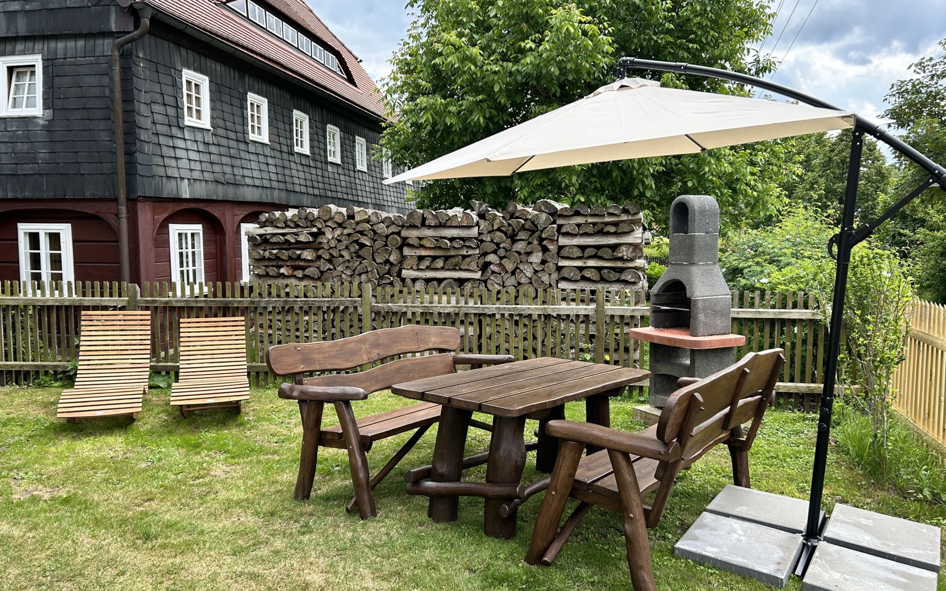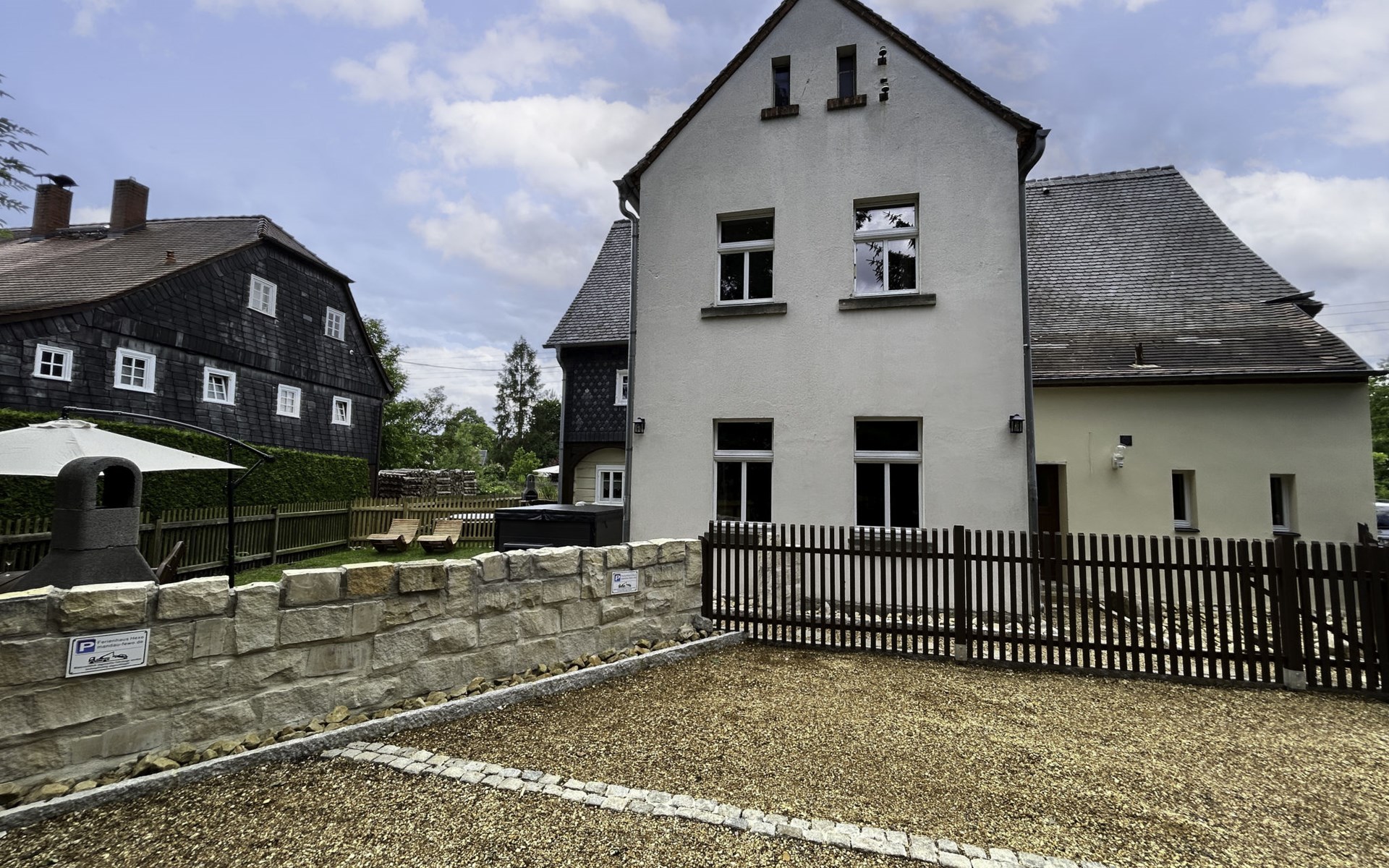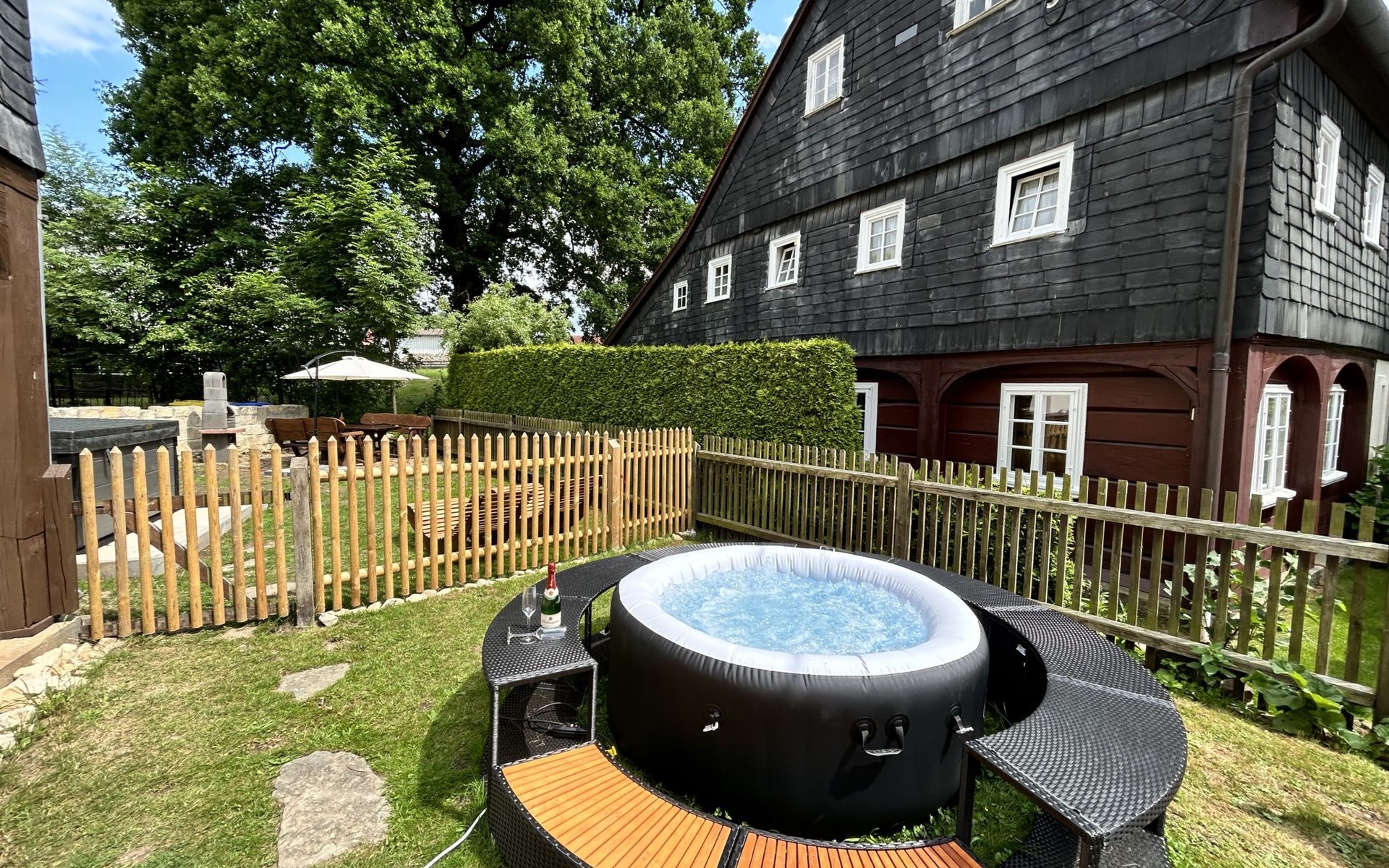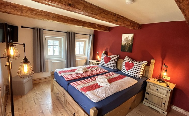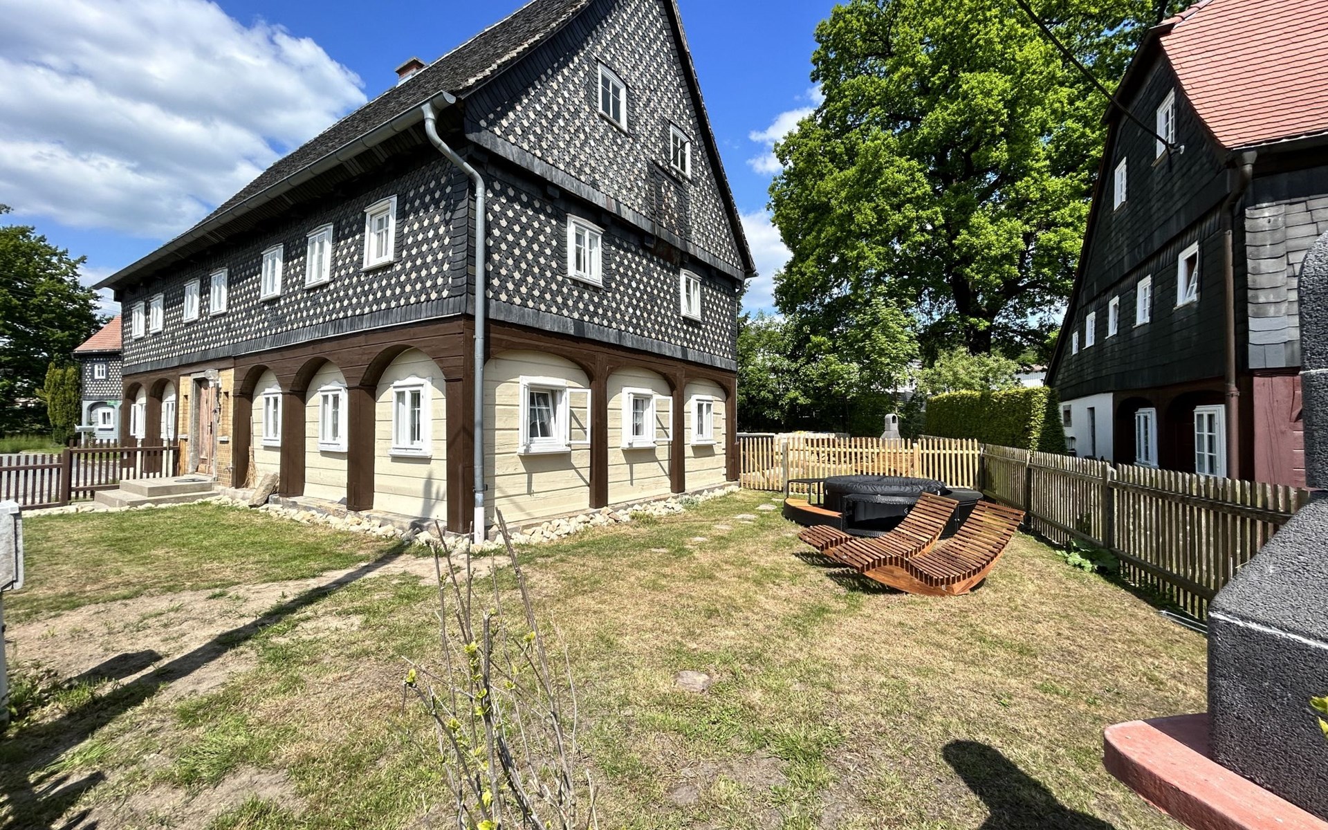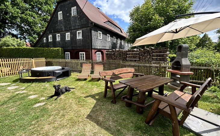 Historical 2-family house, 2 storeys, built in 1790, renovated in 2022. 500 m from the centre of Großschönau, 12 km from the centre of Zittau, 30 km from the centre of Löbau, 20 m from the river. For shared use: natural state property (fenced). Private: hot tub. Bread roll service. Shop 500 m, supermarket 200 m, restaurant 400 m, bakery 300 m, bus stop "Großschönau Weinhaus" 700 m, railway station "Großschönau Bahnhof" 1.5 km, outdoor swimming pool 1.5 km, bathing lake "Olbersdorfer See" 13 km. Walking paths from the house 5 m, ski lift 4 km, ski school 4 km, cross country ski track 4 km. Well-known ski regions can easily be reached: Waltersdorf 4 km. Well-known lakes can easily be reached: Olbersdorfer See 13 km. Please note: Additional accommodations can be booked.