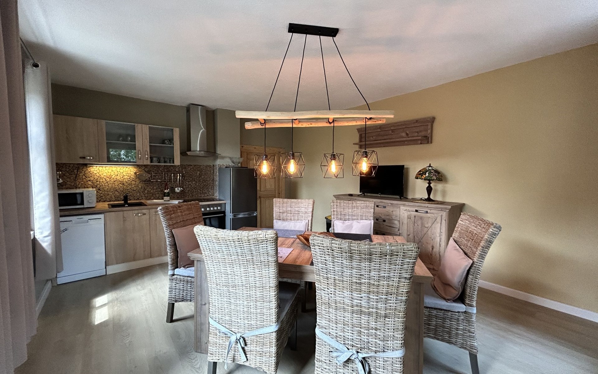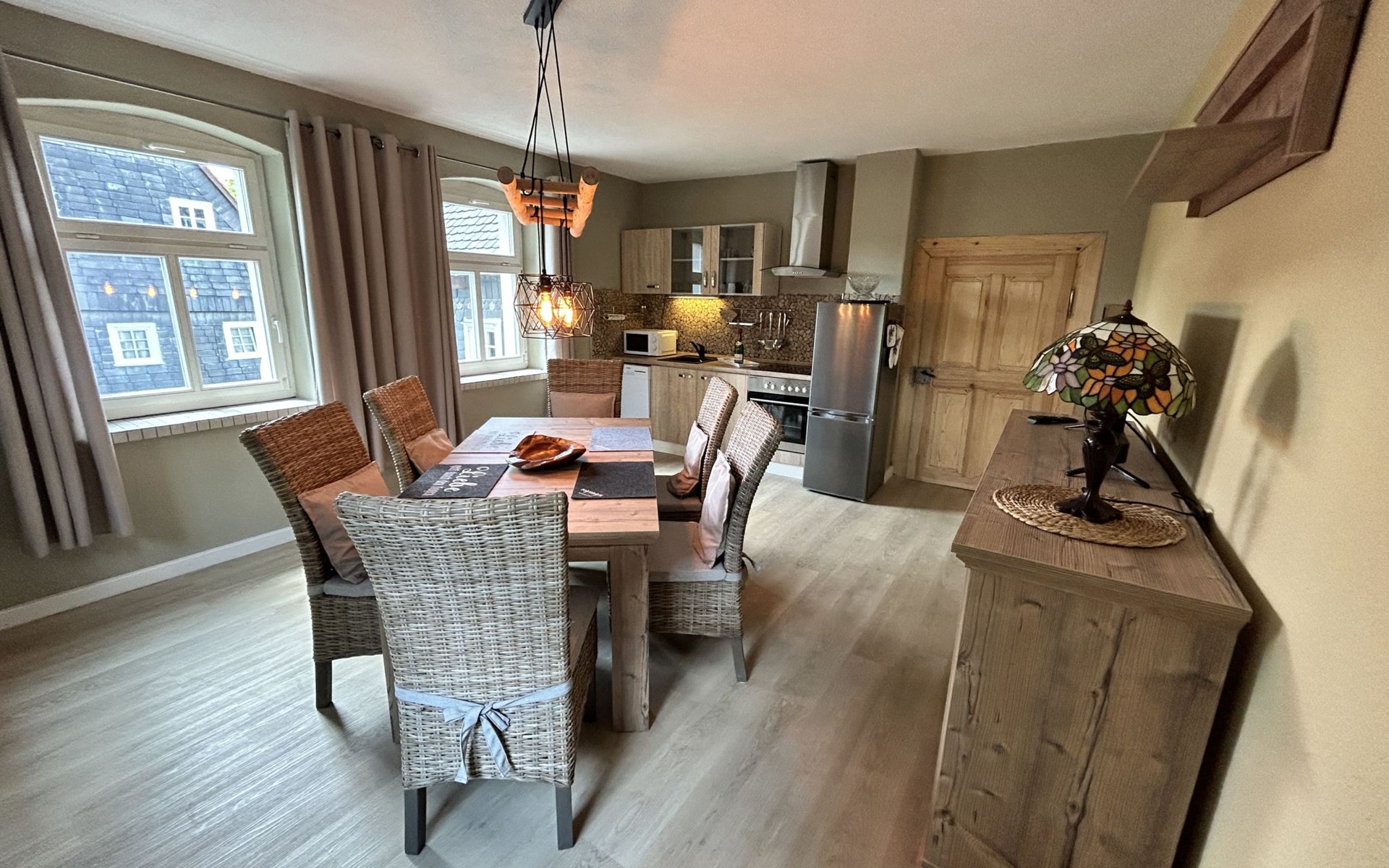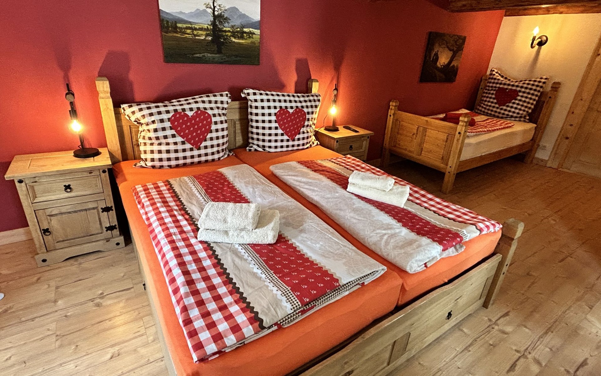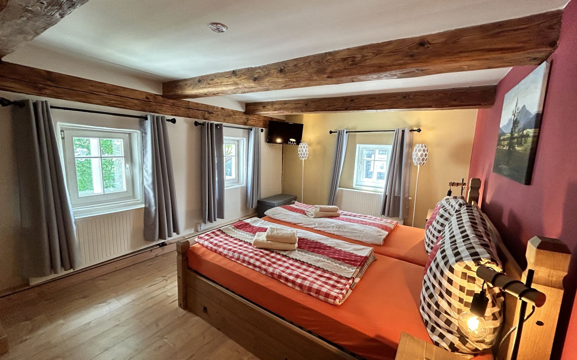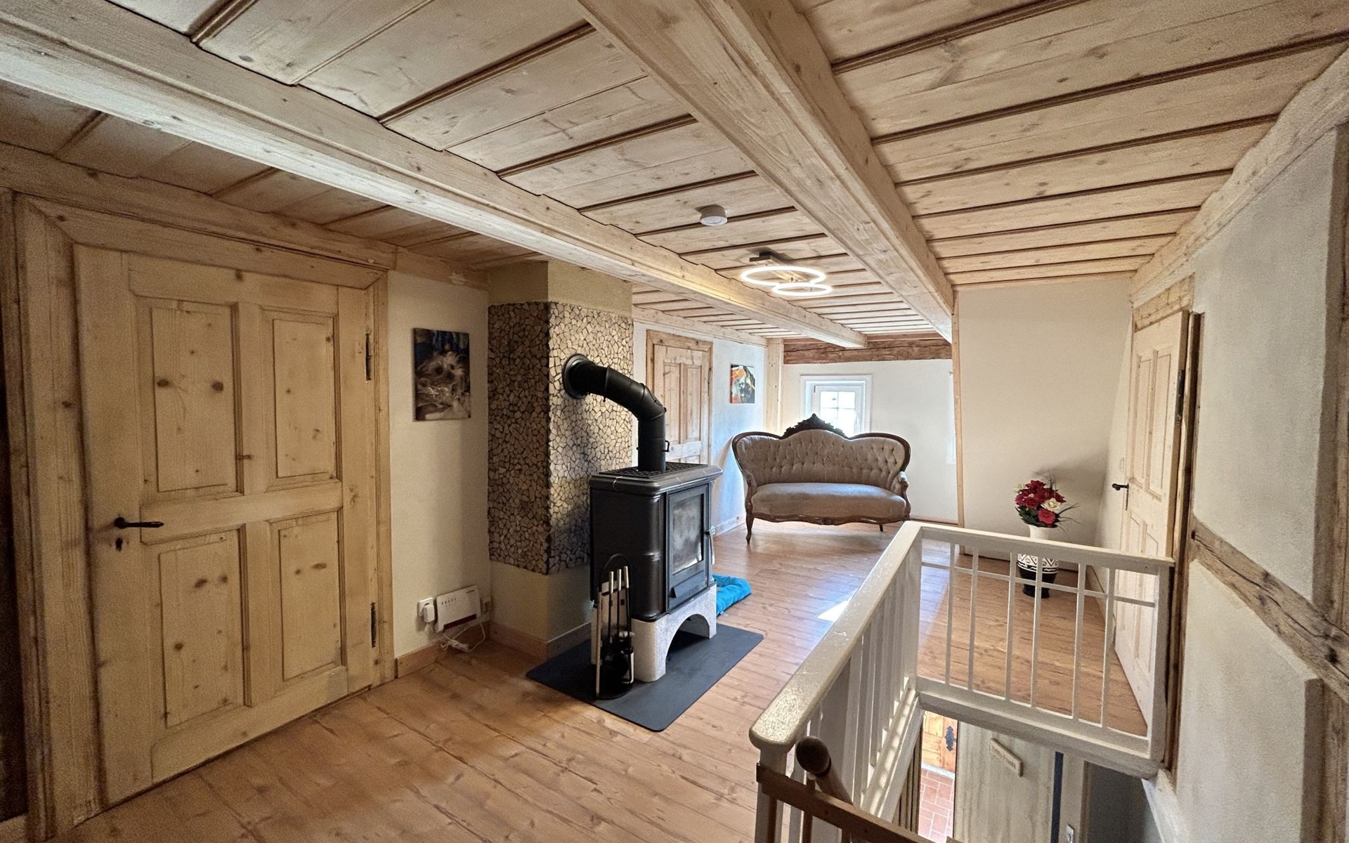 Historical 2-family house, 2 storeys, built in 1790, renovated in 2022. 500 m from the centre of Großschönau, 12 km from the centre of Zittau, 30 km from the centre of Löbau, 20 m from the river. For shared use: natural state property (fenced). Private: hot tub. Bread roll service. Shop 500 m, supermarket 200 m, restaurant 400 m, bakery 300 m, bus stop "Großschönau Weinhaus" 700 m, railway station "Großschönau Bahnhof" 1.5 km, outdoor swimming pool 1.5 km, bathing lake "Olbersdorfer See" 13 km. Walking paths from the house 5 m, ski lift 4 km, ski school 4 km, cross country ski track 4 km. Well-known ski regions can easily be reached: Waltersdorf 4 km. Well-known lakes can easily be reached: Olbersdorfer See 13 km. Please note: Additional accommodations can be booked.