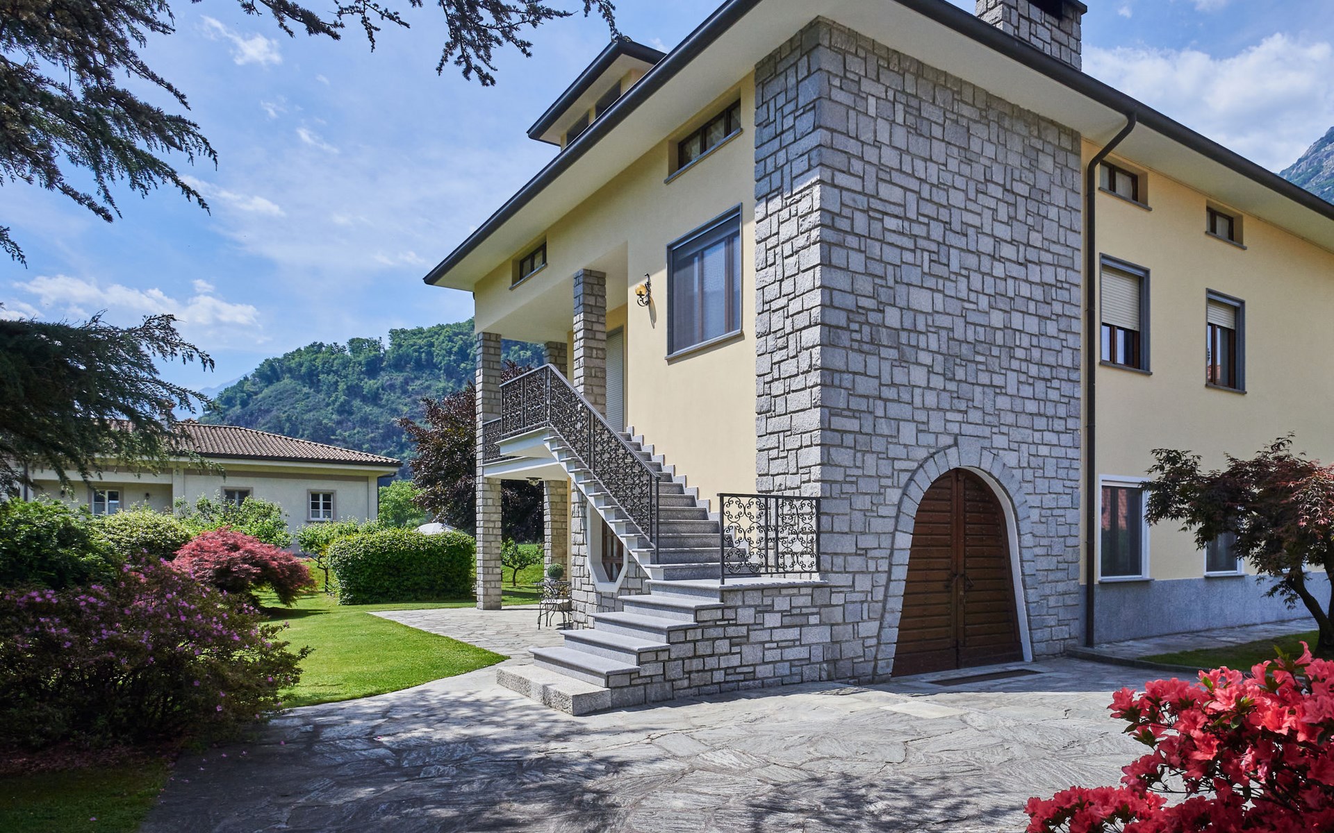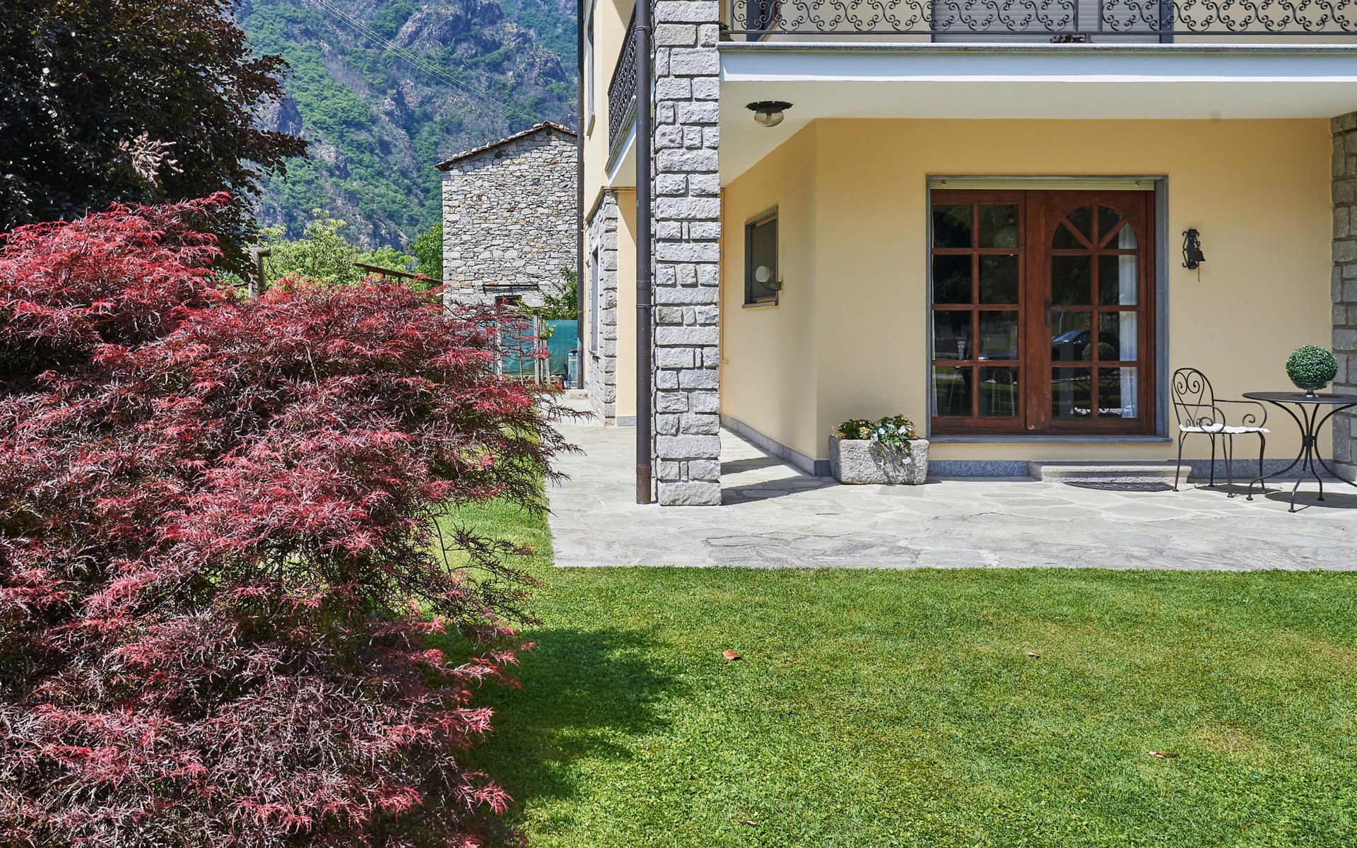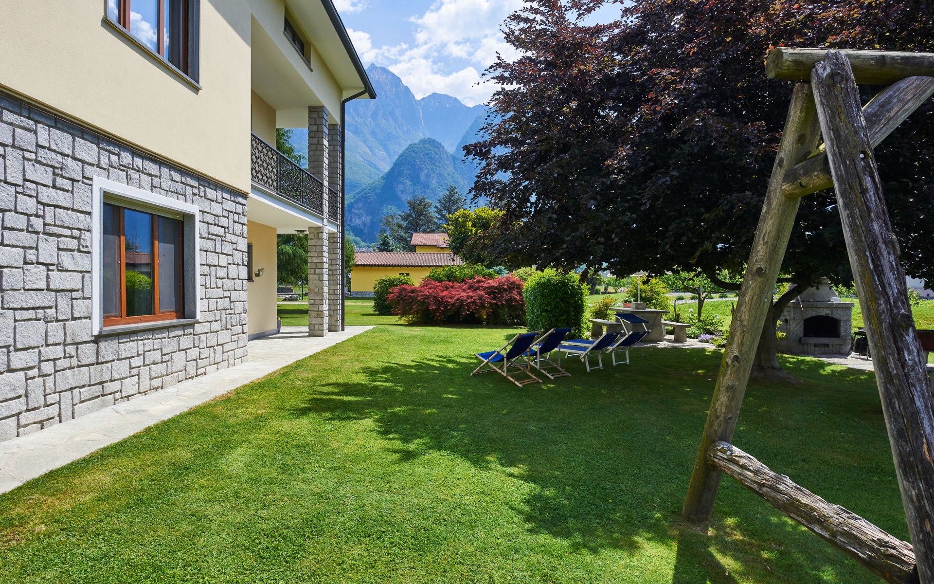 2-family house "Serena". In the district of Giumello 400 m from the centre of Novate Mezzola, 13 km from the centre of Chiavenna, 70 km from the centre of Como, in the residential district, 1.5 km from the lake, in a cul-de-sac. For shared use: large, well-kept garden (not fenced) with lawn and trees. Patio, barbecue (swing), parking on the premises. Supermarket 400 m, bus stop 600 m, railway station "Novate Mezzola" 500 m, sandy beach "Lido di Novate" 1.5 km pebble beach "La Punta (Lago di Como)" 12 km, indoor swimming pool 13 km. Marina 1.5 km, golf course (18 hole) 45 km, cycle lane 10 m, fishing possibilities 1.5 km. Well-known lakes can easily be reached: Lago di Mezzola 1.5 km, Lago di Como 12 km. Please note: the owner lives in the same residence.
