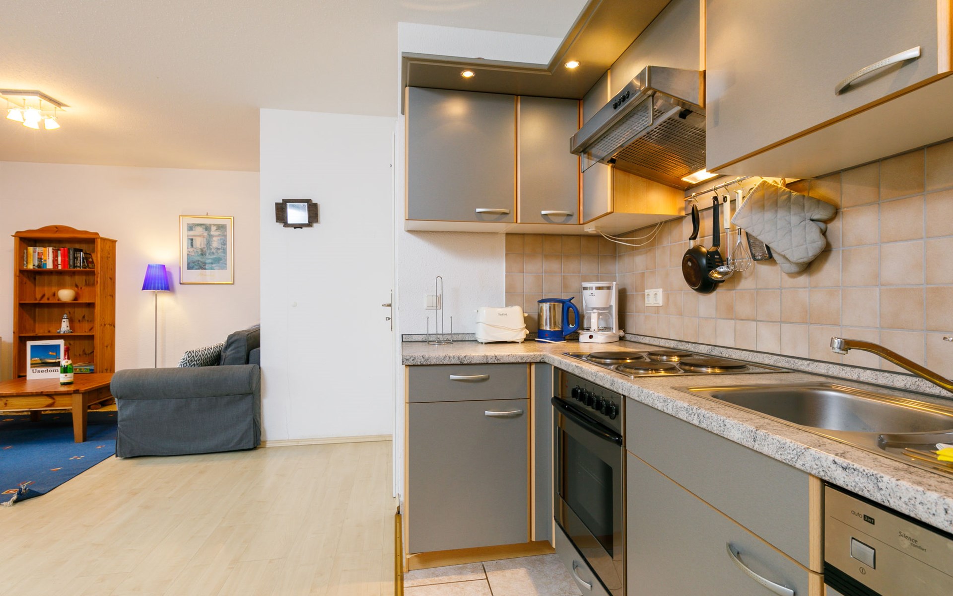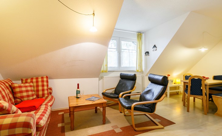 Terraced house "Moeller". In the resort 300 m from the centre of Koserow, 1.2 km from the sea, 1.2 km from the beach. In the house: central heating system. Parking on the premises. Supermarket 500 m, restaurant 200 m, bakery 500 m, café 300 m, bus stop 450 m, railway station 950 m, sandy beach 1.2 km, thermal baths "Bernsteintherme" 9 km. Golf course (18 hole) 18 km, surf school 9 km, minigolf 110 m.