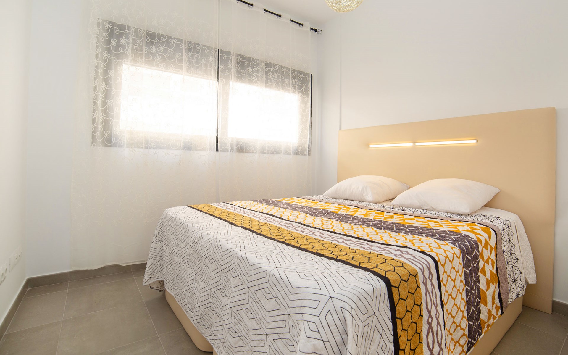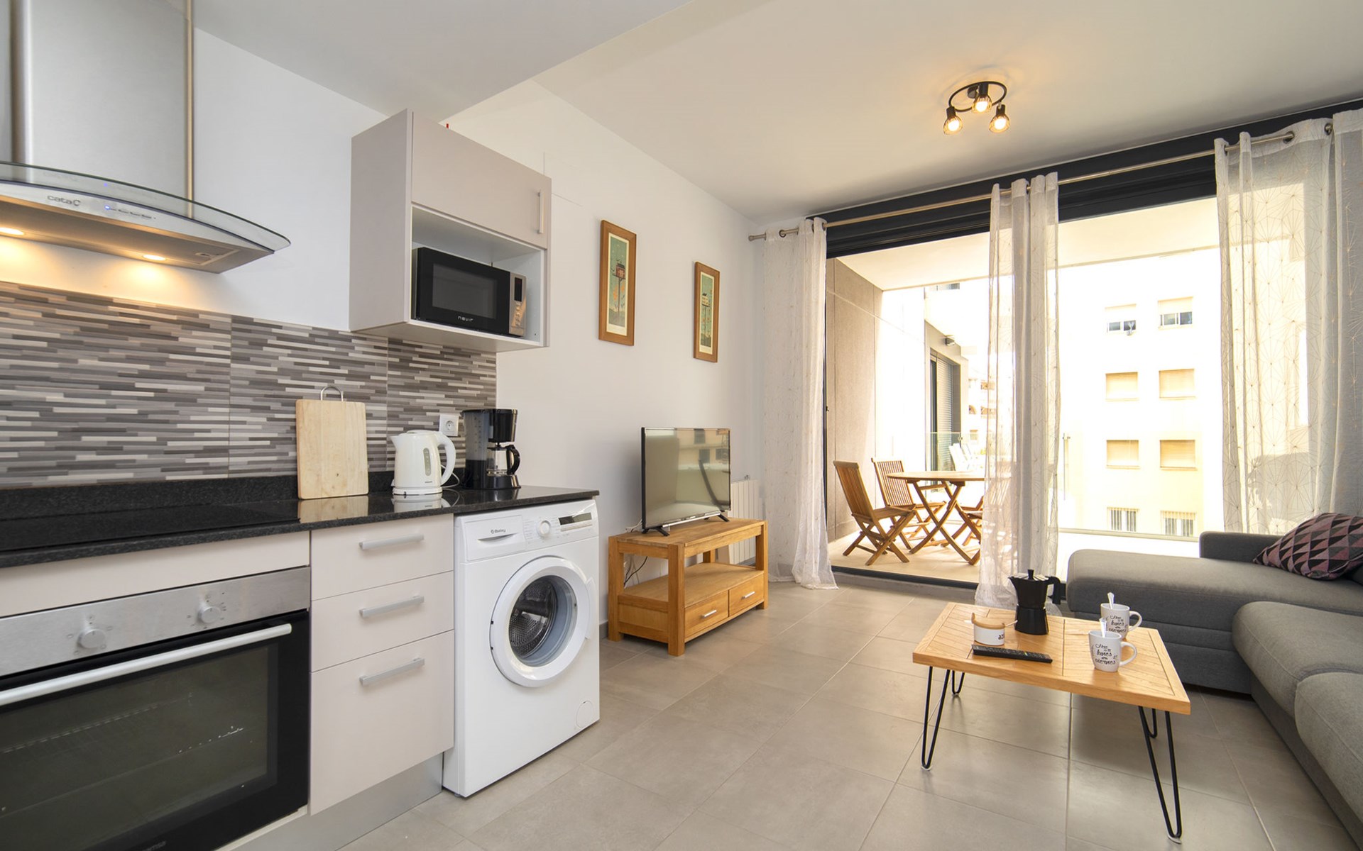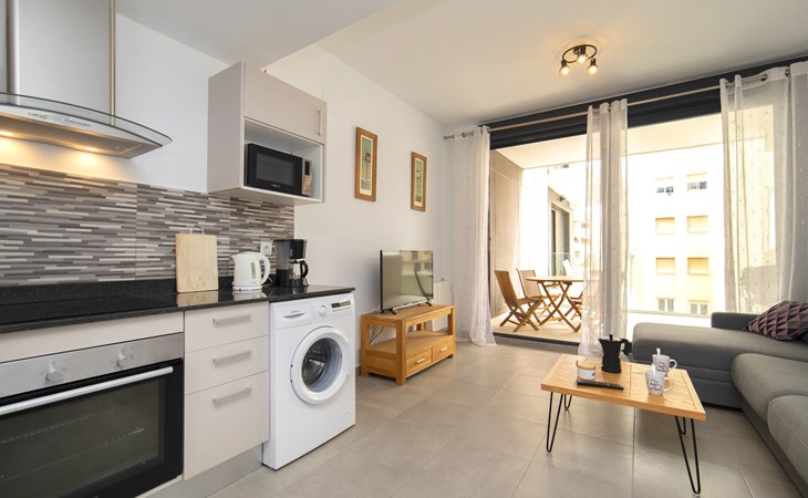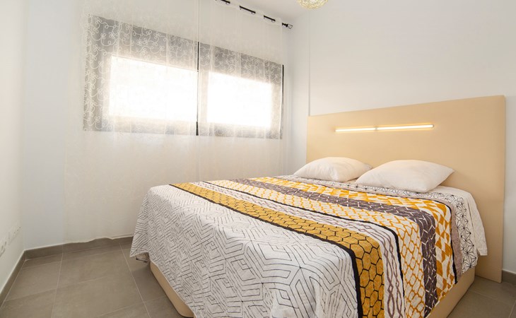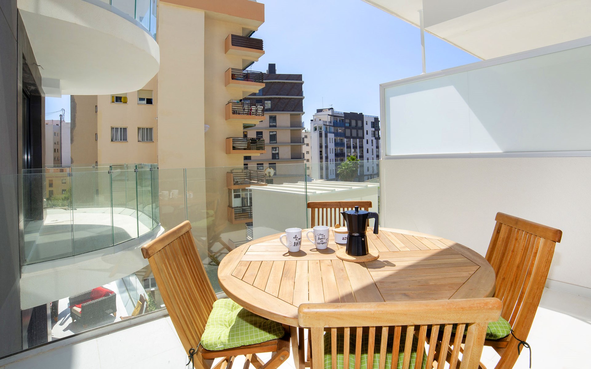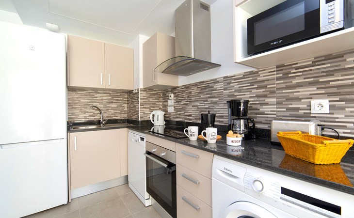 Calpe Centro: Modern, beautiful apartment block "Calpe Beach I", 10 storeys, built in 2019. 62 apartments in the residence. In the centre of Calpe, in a central position, excellent location: right in the centre but still quiet, 100 m from the sea, 100 m from the beach. For shared use: swimming pool (seasonal availability: 16.Apr. - 15.Oct. pool opening hours: 10:00-21:00). WC in the pool area, outdoor shower. In the house: solarium, lift, roof terrace. Grocery, supermarket 100 m, restaurant, bar, café 30 m, bus stop "Parada Bus" 100 m, sandy beach "Playa Arenal" 100 m. Sports harbour 2.4 km, marina 2.4 km, golf course (9 hole) 10 km, sailing school 2.4 km. Nearby attractions: Aqualandia, Terra Mítica, Mundomar, Terra Natura, Benidorm Palace (Benidorm).