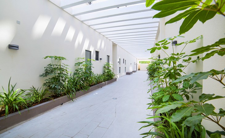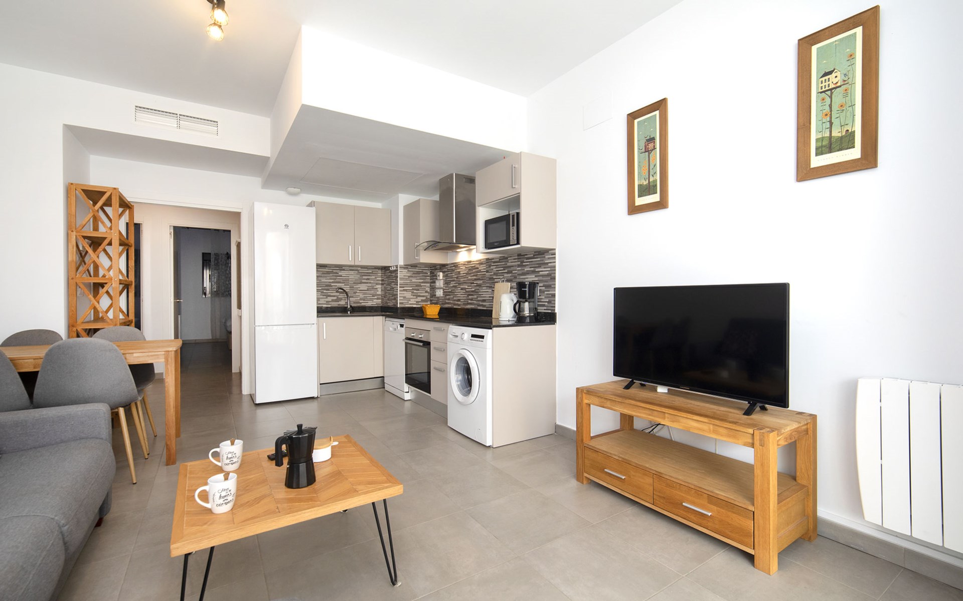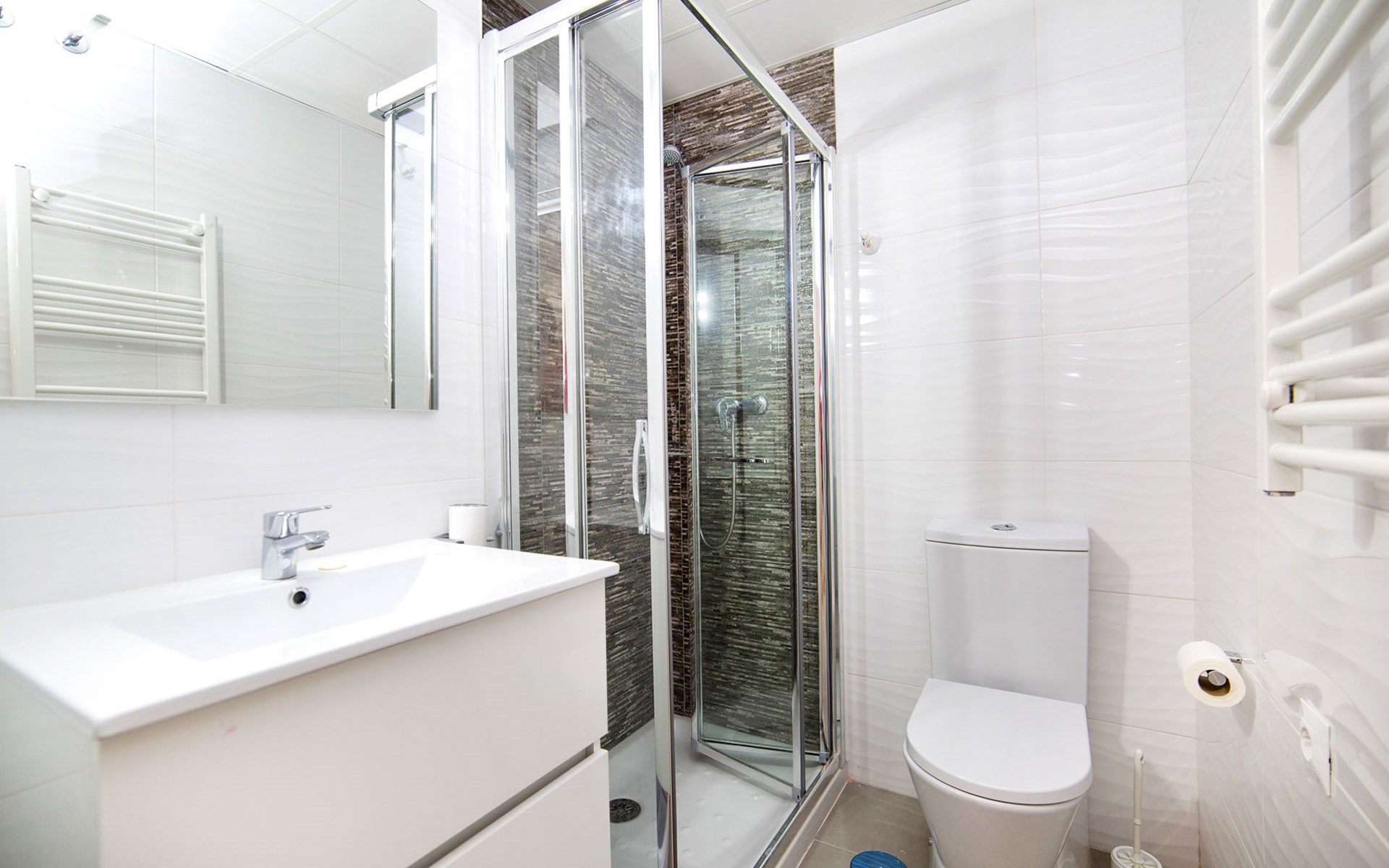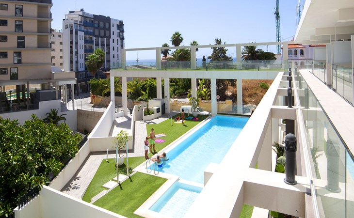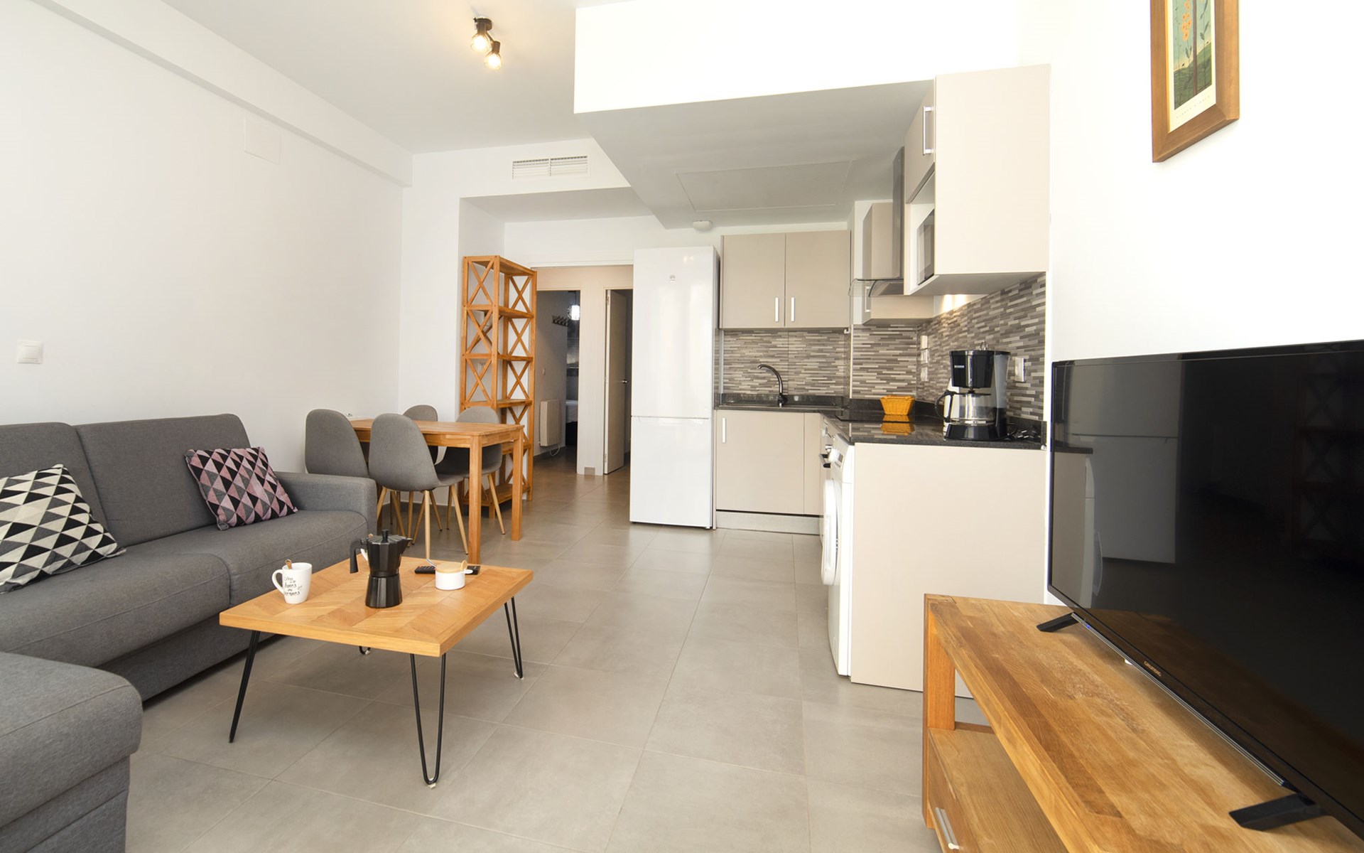 Calpe Centro: Modern, beautiful apartment block "Calpe Beach I", 10 storeys, built in 2019. 62 apartments in the residence. In the centre of Calpe, in a central position, excellent location: right in the centre but still quiet, 100 m from the sea, 100 m from the beach. For shared use: swimming pool (seasonal availability: 16.Apr. - 15.Oct. pool opening hours: 10:00-21:00). WC in the pool area, outdoor shower. In the house: solarium, lift, roof terrace. Grocery, supermarket 100 m, restaurant, bar, café 30 m, bus stop "Parada Bus" 100 m, sandy beach "Playa Arenal" 100 m. Sports harbour 2.4 km, marina 2.4 km, golf course (9 hole) 10 km, sailing school 2.4 km. Nearby attractions: Aqualandia, Terra Mítica, Mundomar, Terra Natura, Benidorm Palace (Benidorm).