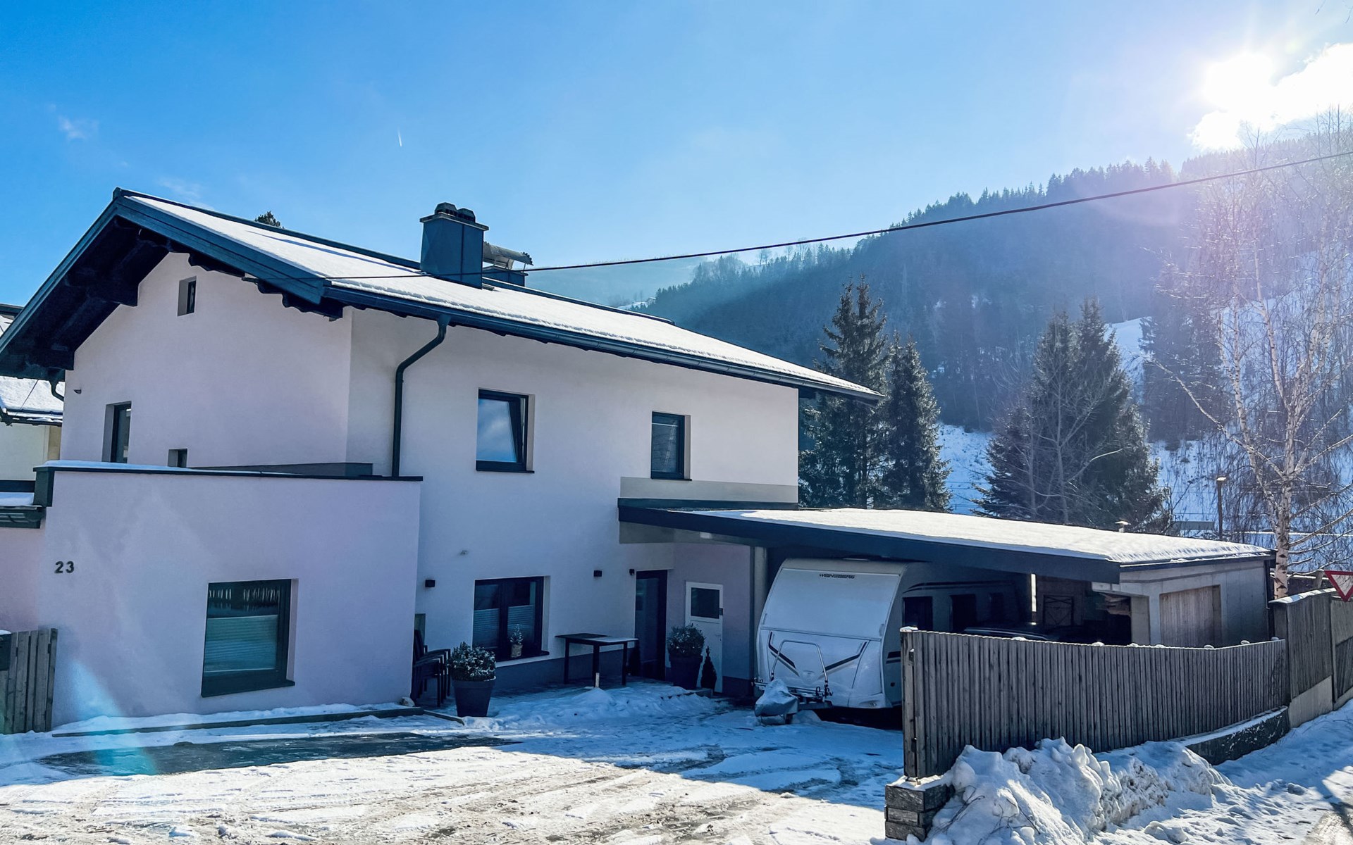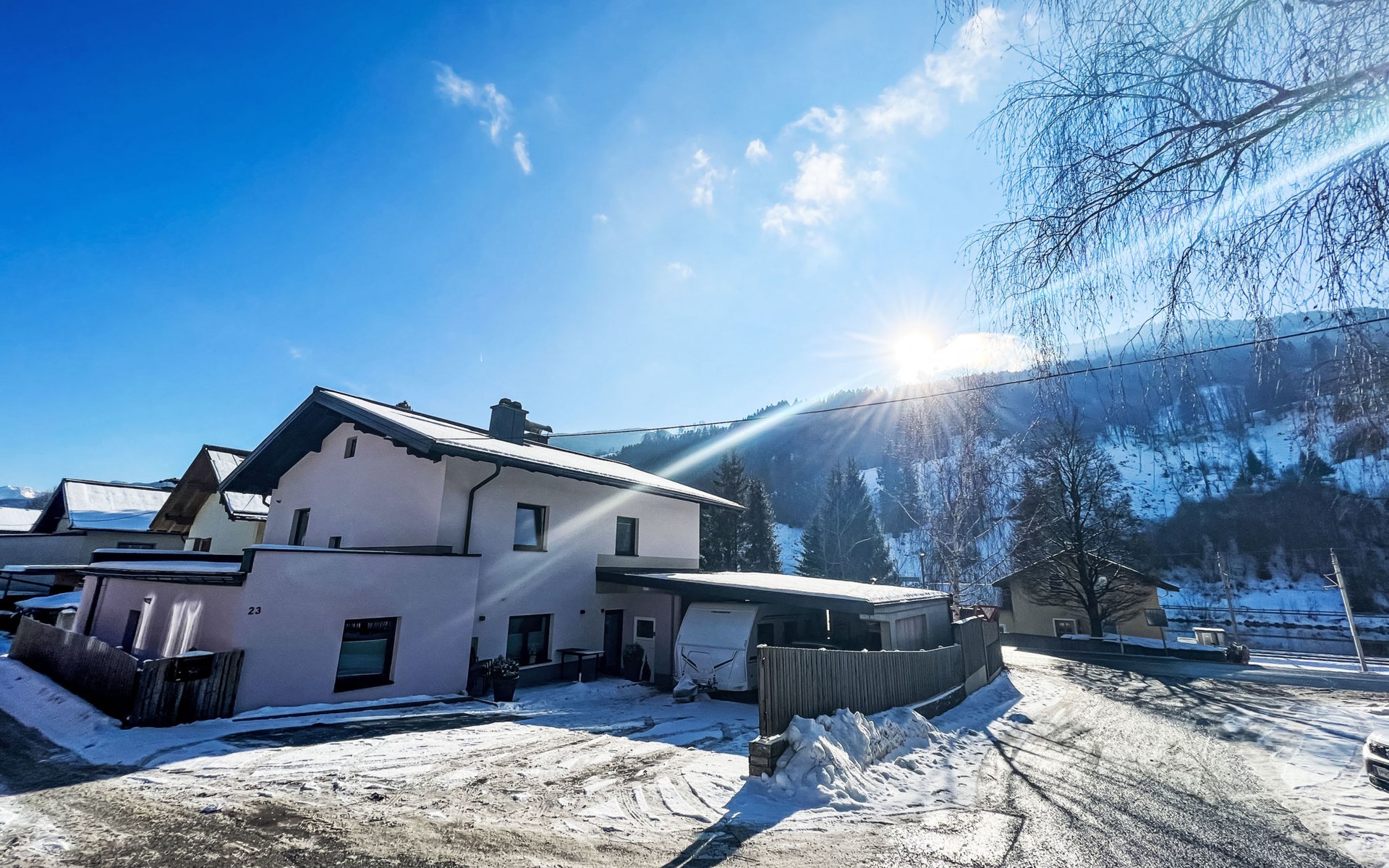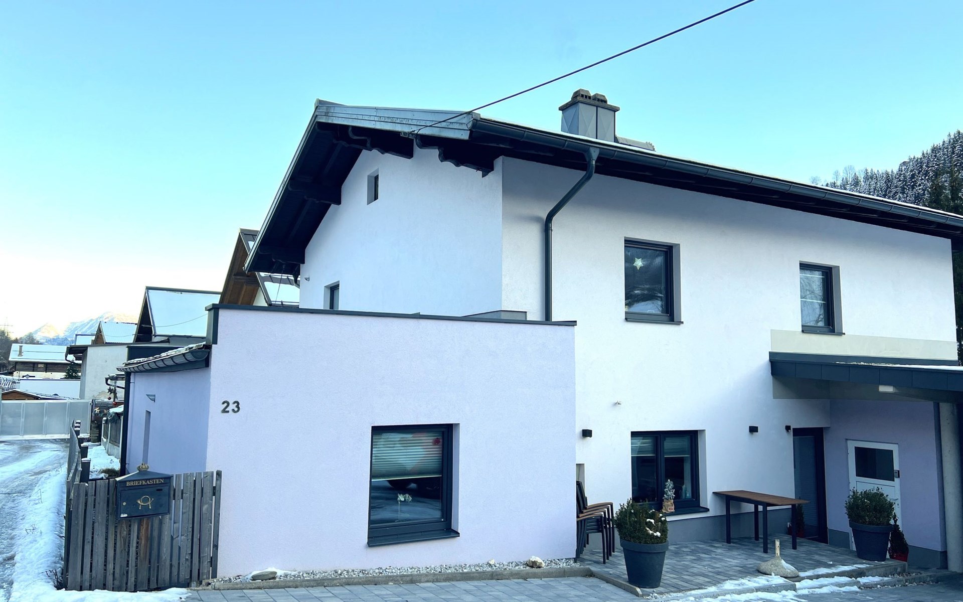 2-family house "Stefanie", renovated in 2020. In the district of Högmoos 8 km from the centre of Bruck, on a main road. For shared use: property 800 m2. In the house: storage room for bicycles, storage room for skis, washing machine, ski boot dryer. Parking at the house. Supermarket 300 m, bus stop 500 m, railway station 2.9 km. Gondola lift 12 km. Well-known ski regions can easily be reached: Schmittenhöhe, Kitzsteinhorn, Saalbach-Hinterglemm. Please note: the owner lives in the same residence.