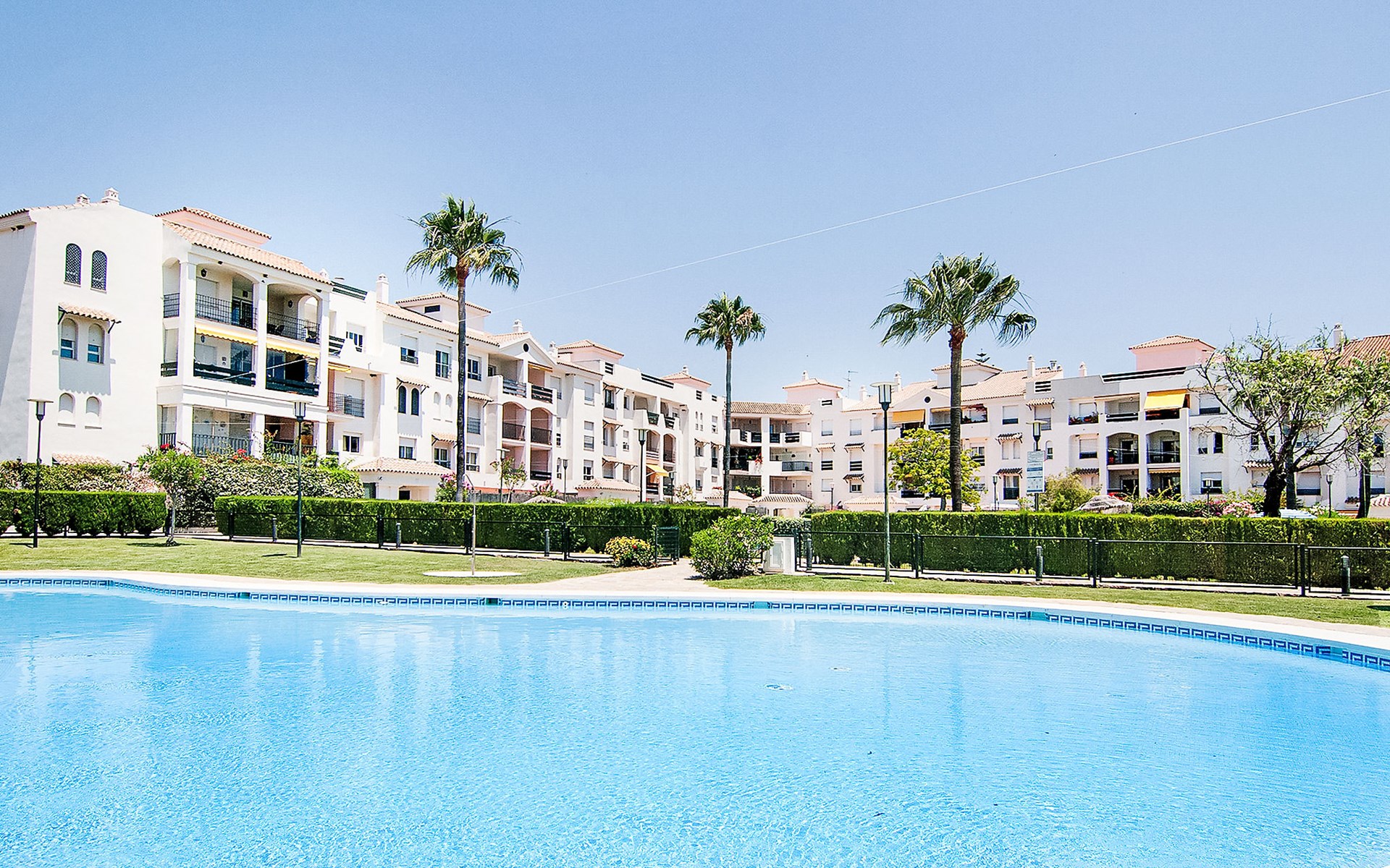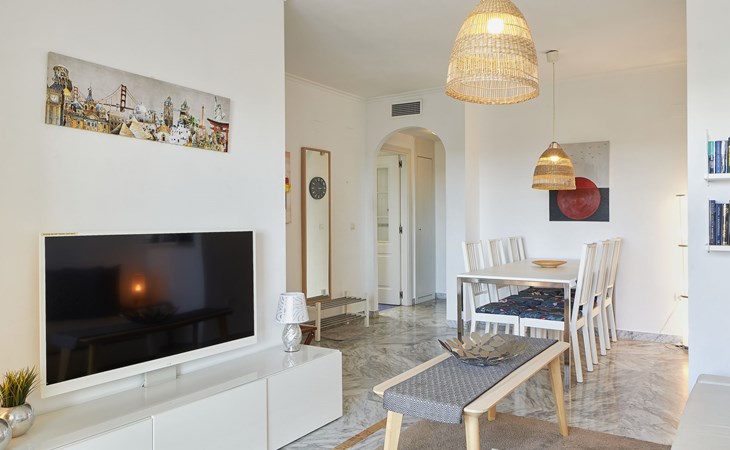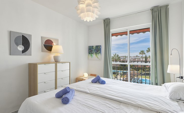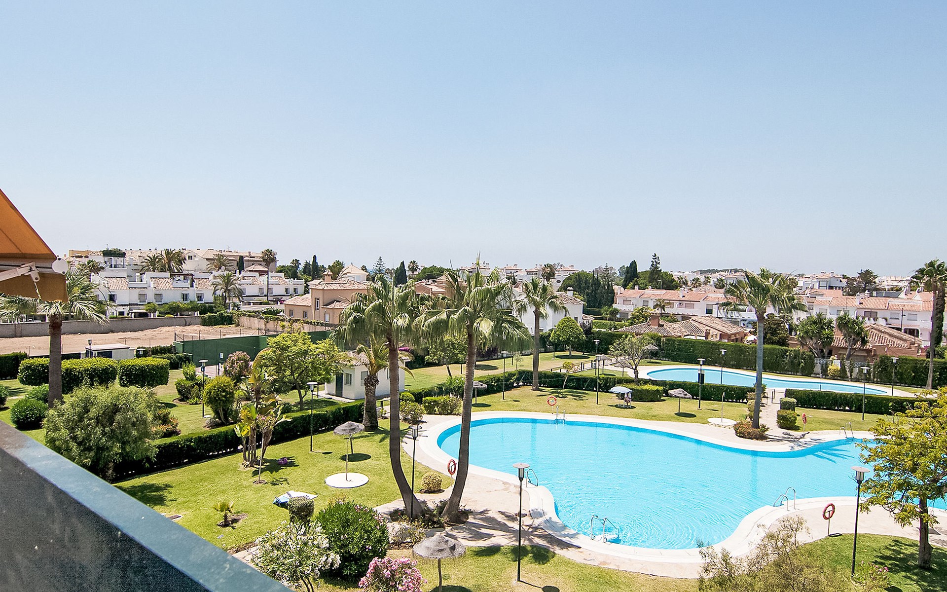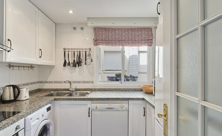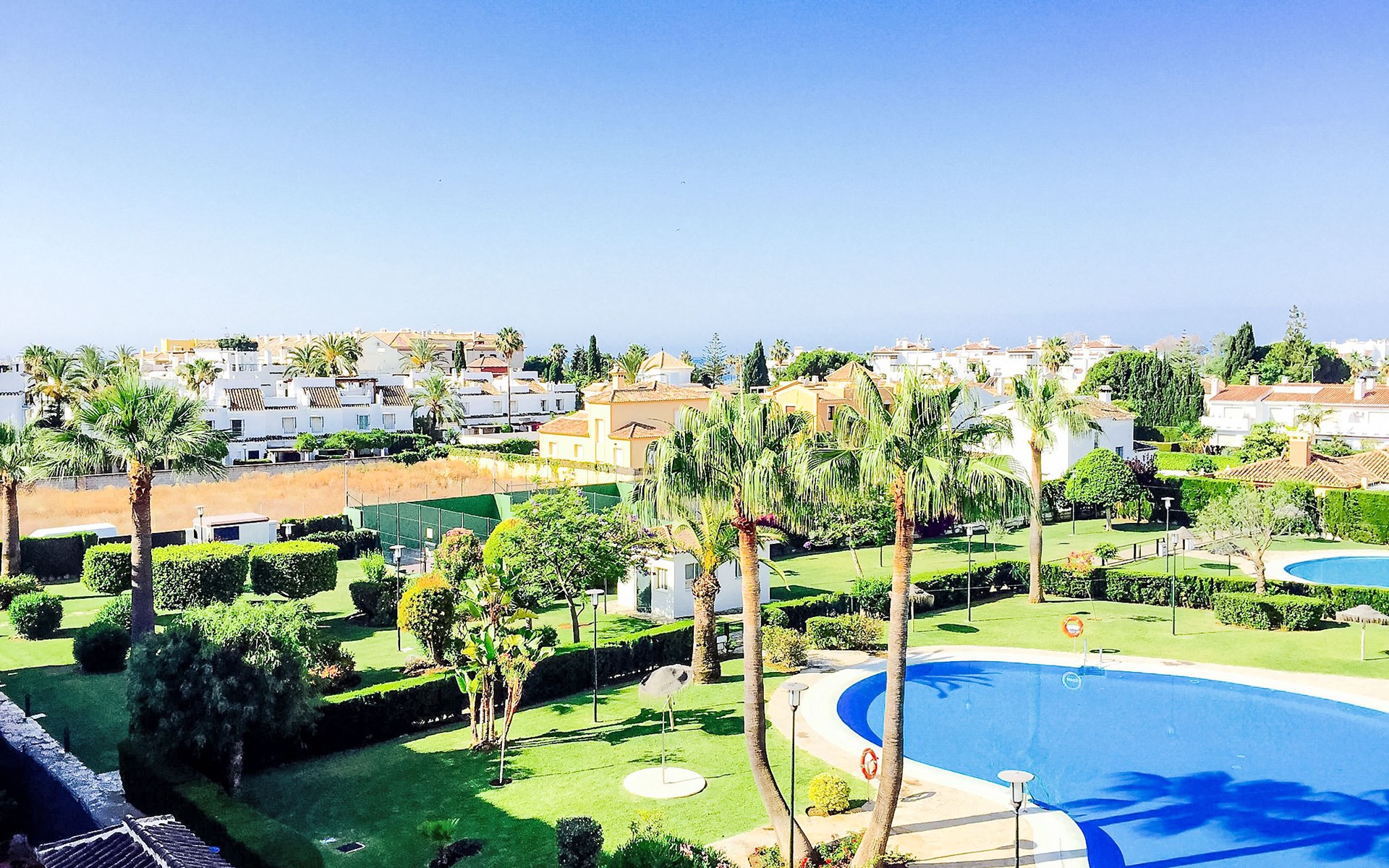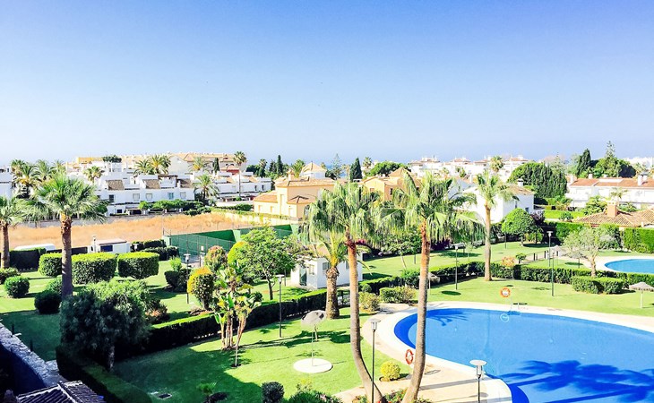 Modern, beautiful, cosy apartment block "Lorcrisur". 2 km from the centre of Puerto Banús, 1 km from the centre of San Pedro, 8 km from the centre of Marbella, in a quiet, sunny position, 100 m from the sea, 100 m from the beach. For shared use: beautiful garden to relax, 2 swimming pools kidney-shaped (depth 140 - 140 cm, seasonal availability: 01.Jan. - 31.Dec.). Shower/WC in the pool area, children's pool, tennis, terrace. In the house: lift. Communal covered parking. Shop 1 km, supermarket 200 m, shopping centre 2 km, restaurant, bar 100 m, bakery 1 km, café, pedestrian zone, pub garden 100 m, bus stop "Boulevard San Pedro" 1.1 km. Please note: suitable for families. Neighbourhood highly sensitive to noise. Quietness and good behaviour expected.