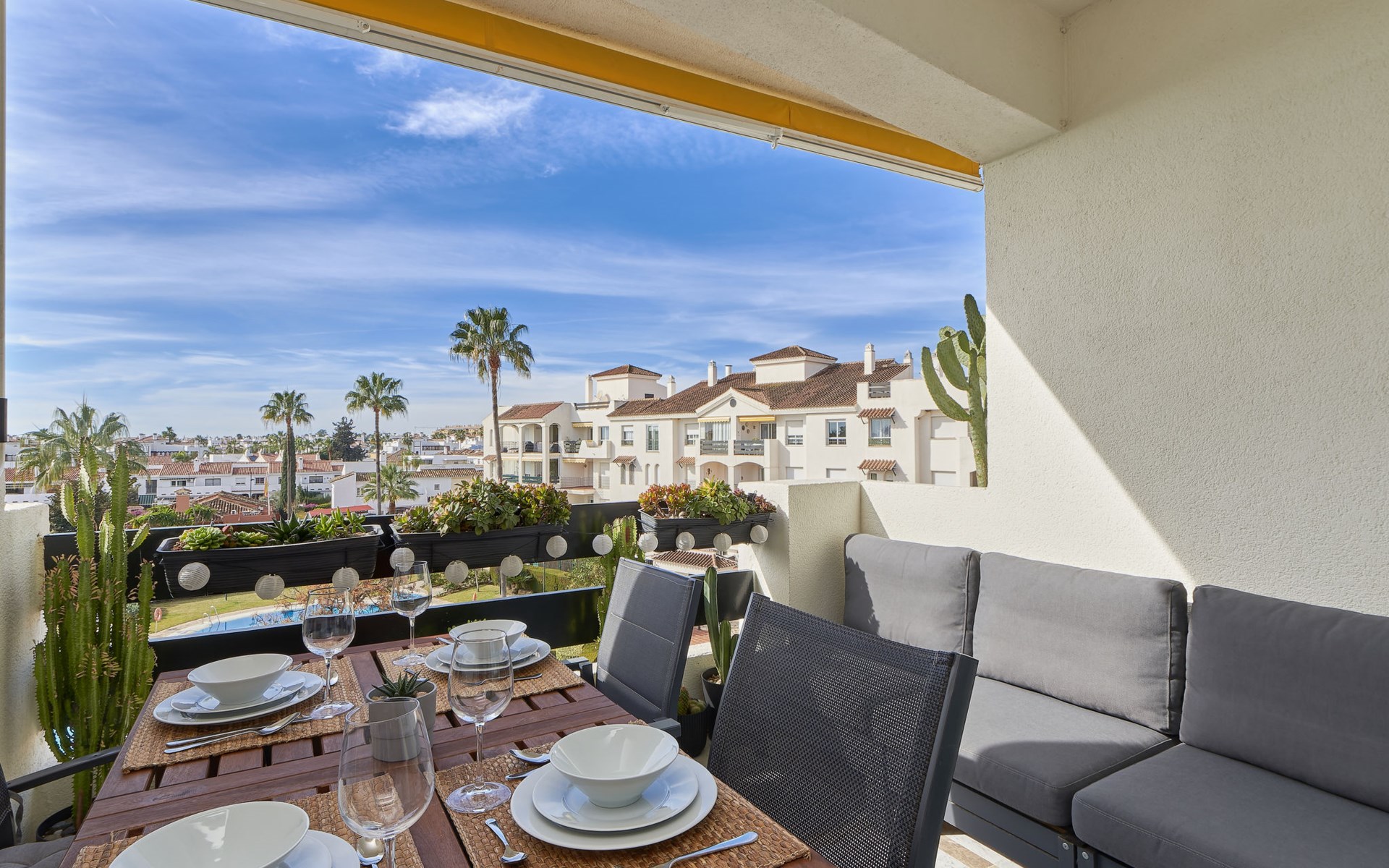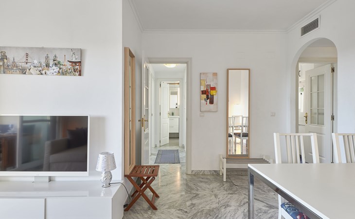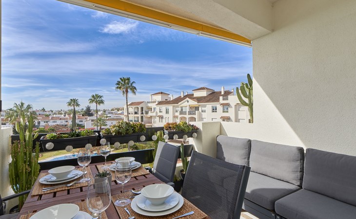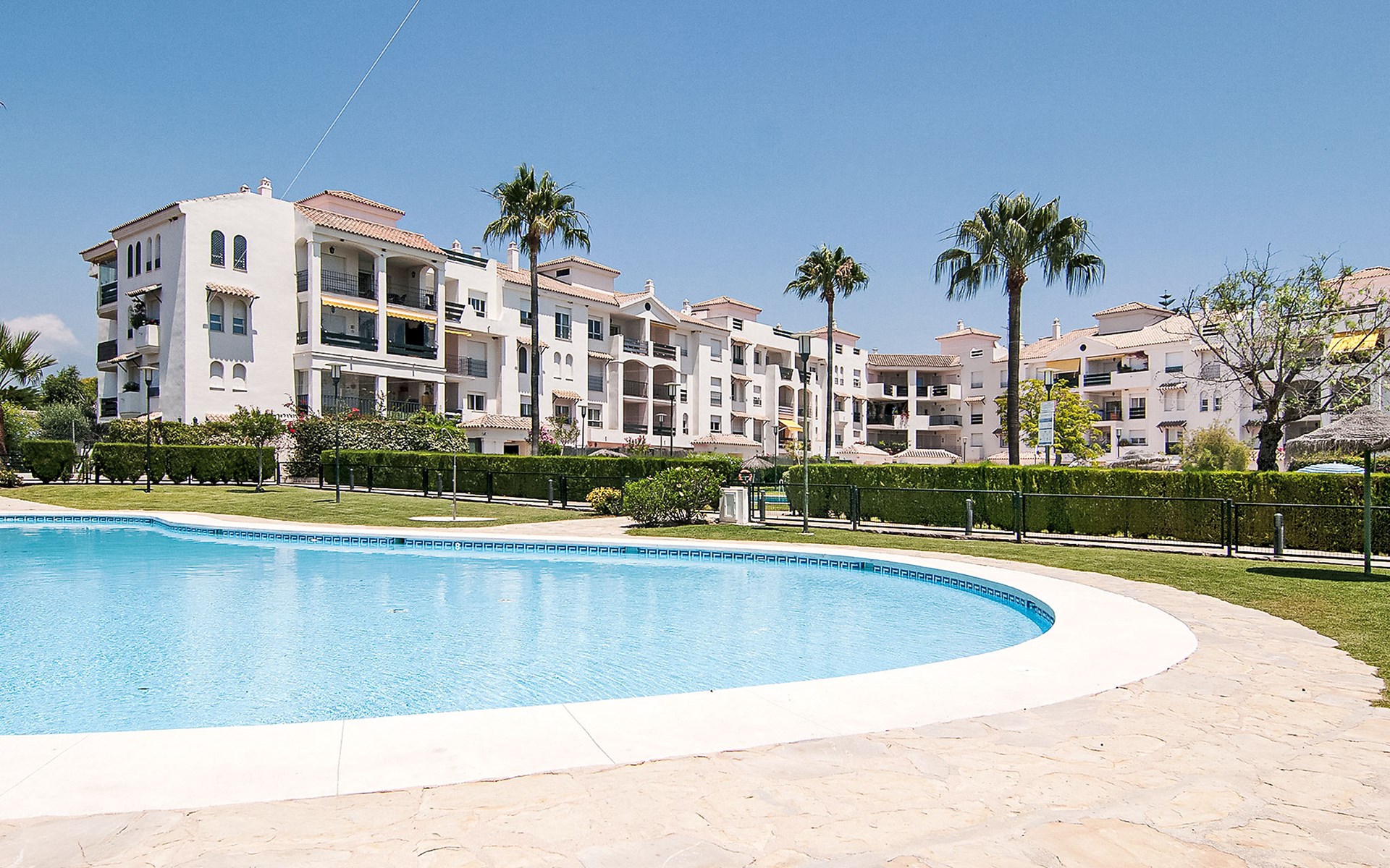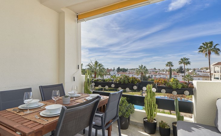 Modern, beautiful, cosy apartment block "Lorcrisur". 2 km from the centre of Puerto Banús, 1 km from the centre of San Pedro, 8 km from the centre of Marbella, in a quiet, sunny position, 100 m from the sea, 100 m from the beach. For shared use: beautiful garden to relax, 2 swimming pools kidney-shaped (depth 140 - 140 cm, seasonal availability: 01.Jan. - 31.Dec.). Shower/WC in the pool area, children's pool, tennis, terrace. In the house: lift. Communal covered parking. Shop 1 km, supermarket 200 m, shopping centre 2 km, restaurant, bar 100 m, bakery 1 km, café, pedestrian zone, pub garden 100 m, bus stop "Boulevard San Pedro" 1.1 km. Please note: suitable for families. Neighbourhood highly sensitive to noise. Quietness and good behaviour expected.