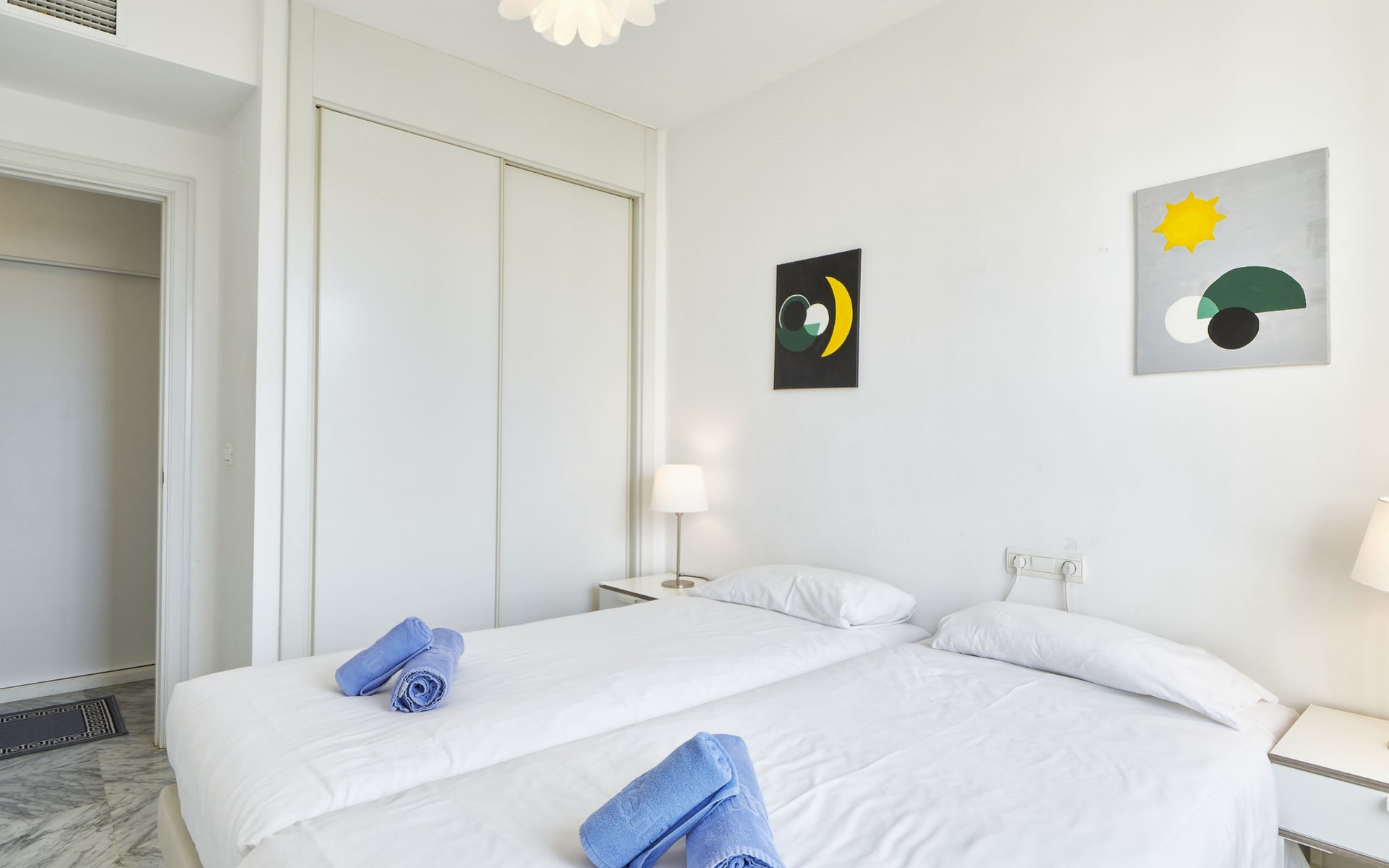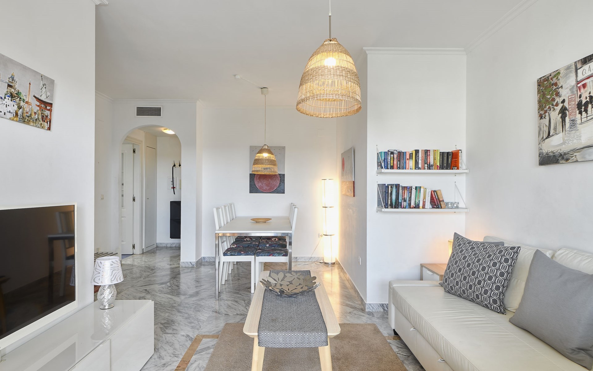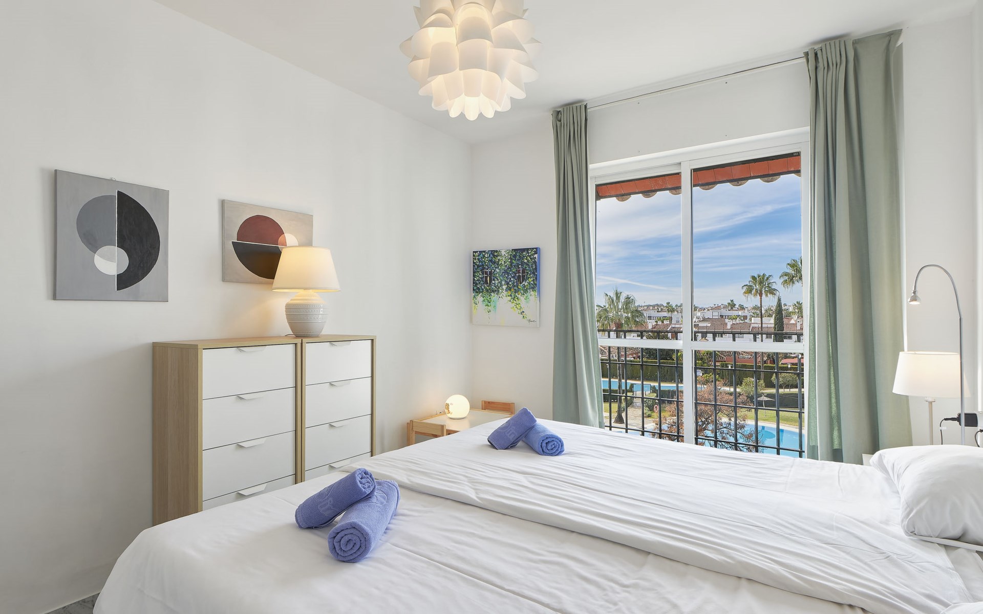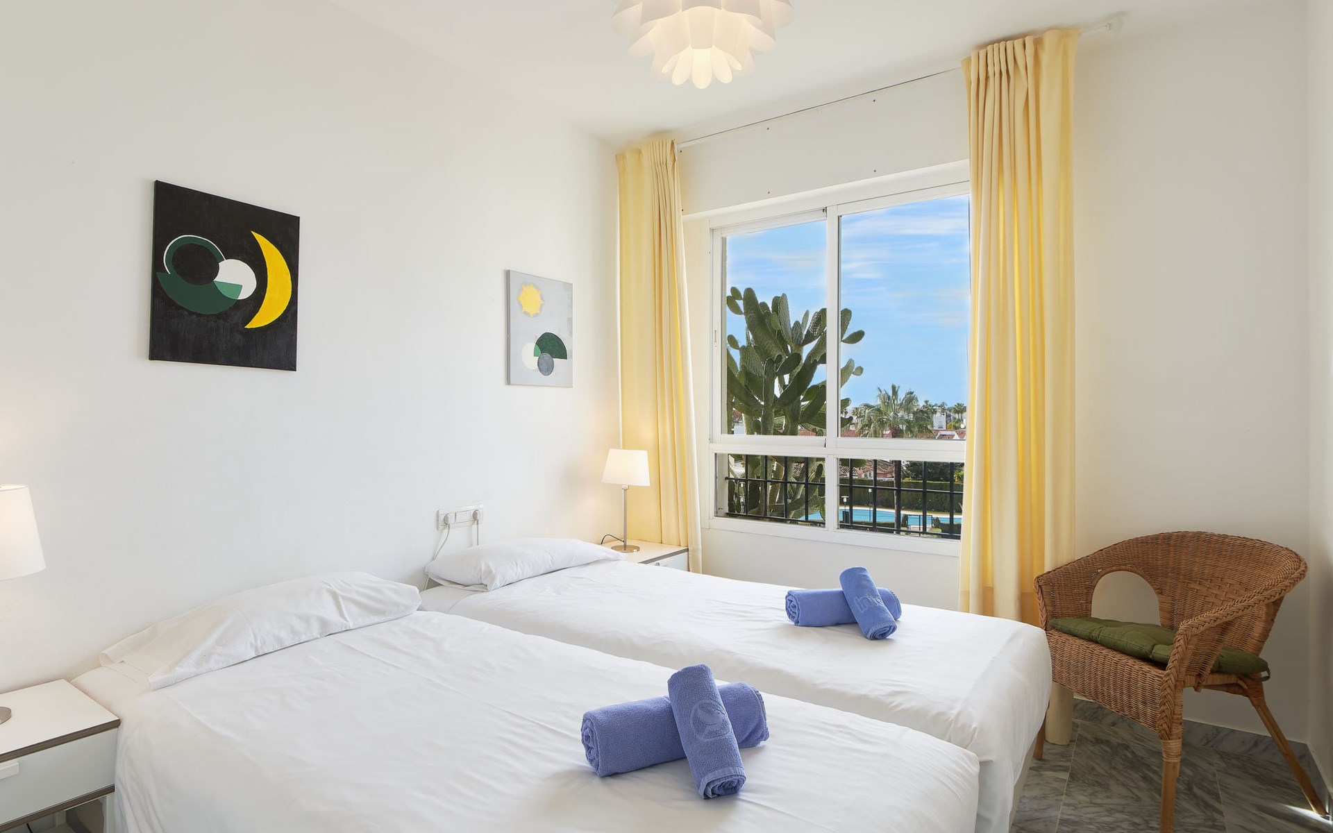 Modern, beautiful, cosy apartment block "Lorcrisur". 2 km from the centre of Puerto Banús, 1 km from the centre of San Pedro, 8 km from the centre of Marbella, in a quiet, sunny position, 100 m from the sea, 100 m from the beach. For shared use: beautiful garden to relax, 2 swimming pools kidney-shaped (depth 140 - 140 cm, seasonal availability: 01.Jan. - 31.Dec.). Shower/WC in the pool area, children's pool, tennis, terrace. In the house: lift. Communal covered parking. Shop 1 km, supermarket 200 m, shopping centre 2 km, restaurant, bar 100 m, bakery 1 km, café, pedestrian zone, pub garden 100 m, bus stop "Boulevard San Pedro" 1.1 km. Please note: suitable for families. Neighbourhood highly sensitive to noise. Quietness and good behaviour expected.