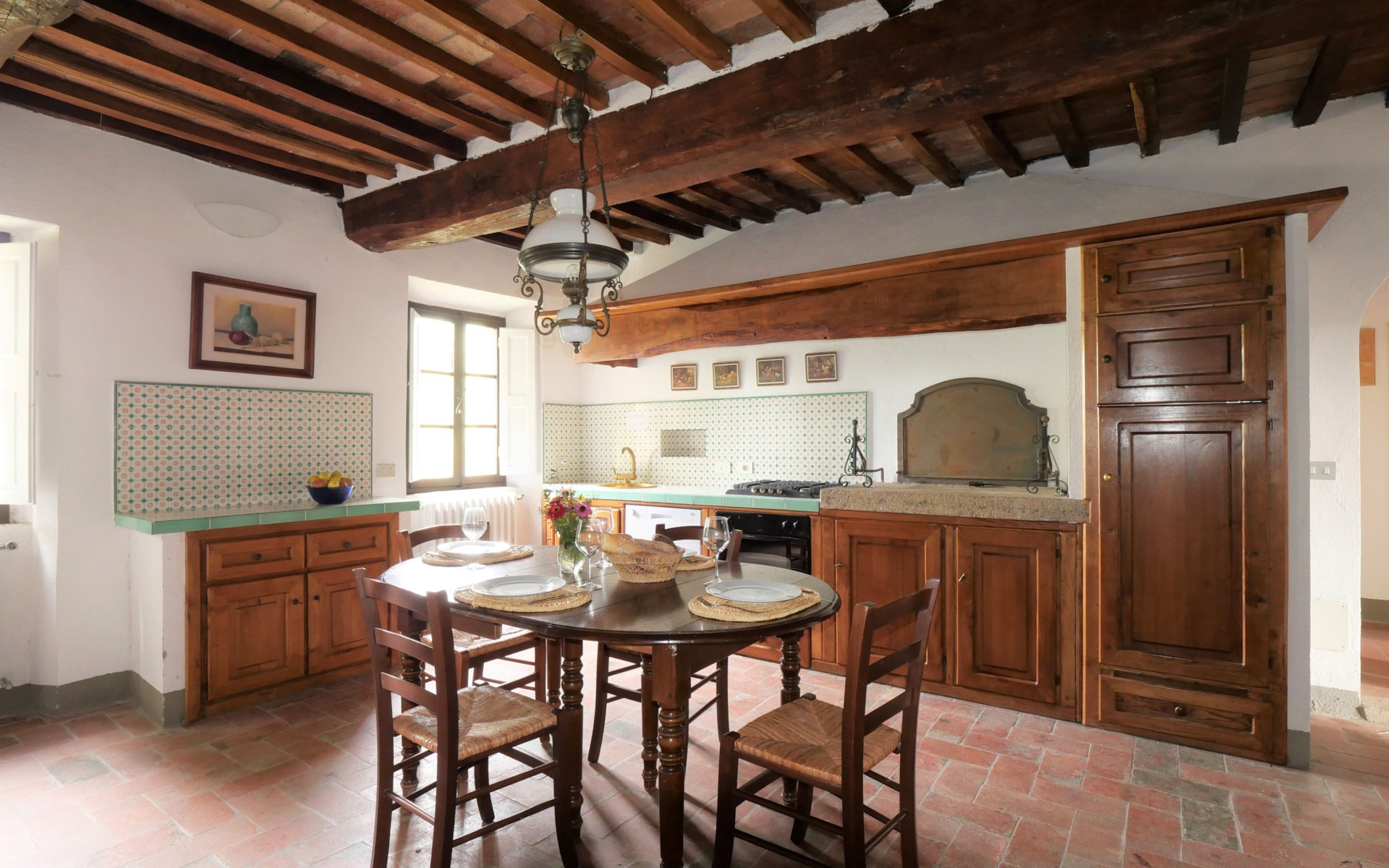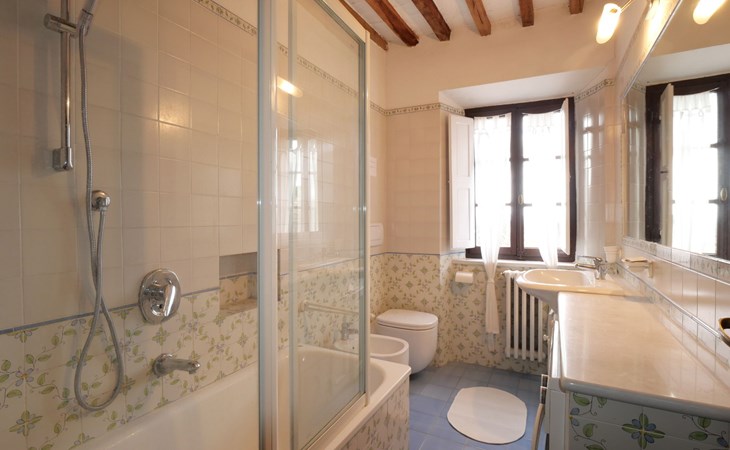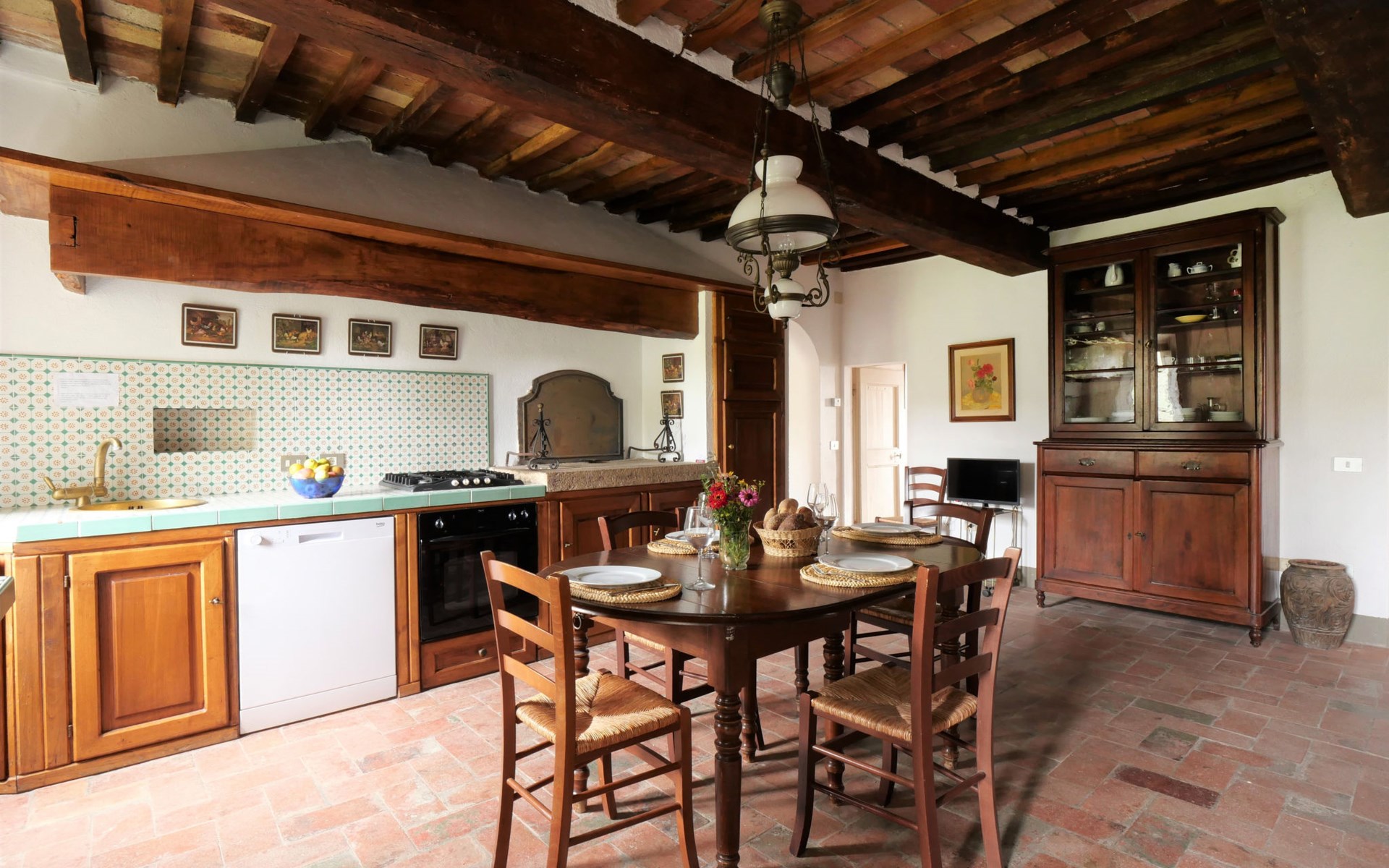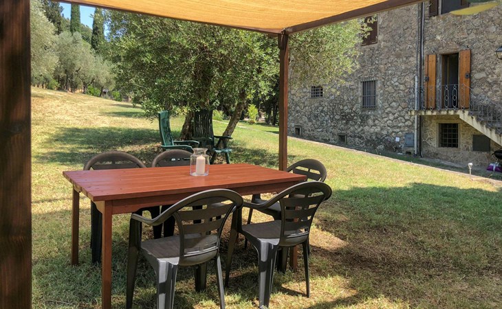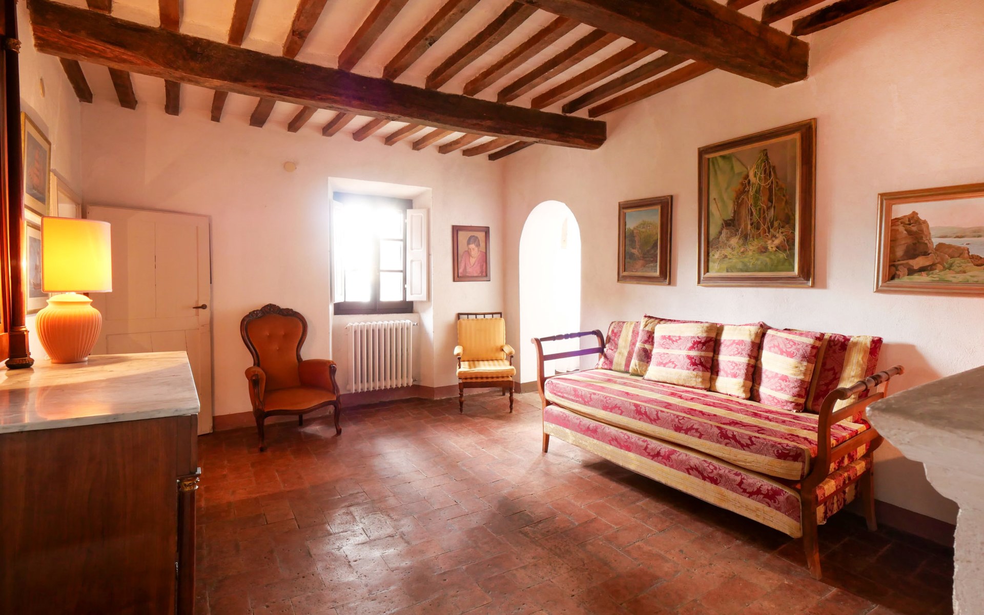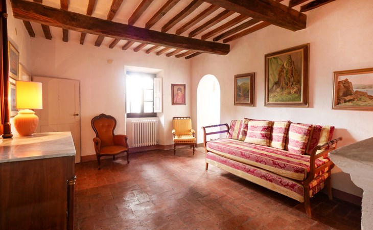 Beautiful, historical large working farm "Tenuta di Peruzzo", from the 18th century, surrounded by trees and vineyards. 10 apartments in the residence. 3.5 km from the centre of Sassofortino, 4 km from the centre of Roccatederighi, in a secluded, quiet, sunny position, 35 km from the sea, in the countryside. For shared use: park 450 ha, garden (not fenced) with plants and trees, pond, swimming pool (12 x 6 m, depth 150 cm, seasonal availability: 15.May. - 15.Oct.). Shower/WC in the pool area, children's pool, outdoor shower, table tennis, children's playground. Heating available only from 22.Oct. - 15.Apr.. Motor access (500 m via unmade road). Parking on the premises. Shop 3.5 km, supermarket 7 km, restaurant 3 km, bar 3.5 km, bus stop 3 km, ferry "Piombino" 60 km, sandy beach "Follonica" 36 km. Golf course (18 hole) 28 km, walking paths from the house 20 m. Nearby attractions: Roccastrada 16 km, Grosseto 30 km, Castiglione della Pescaia 42 km, Siena 60 km. Please note: car recommended. On the estate animal husbandry. The owner lives on the same property.