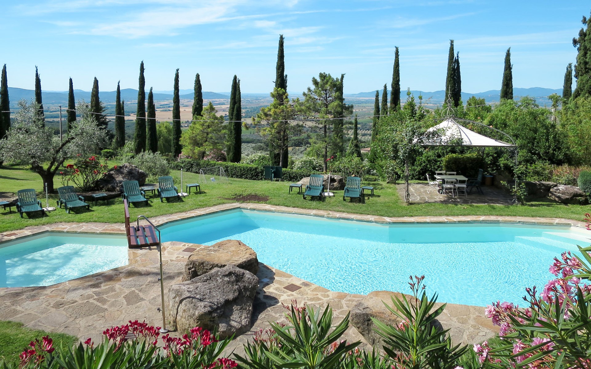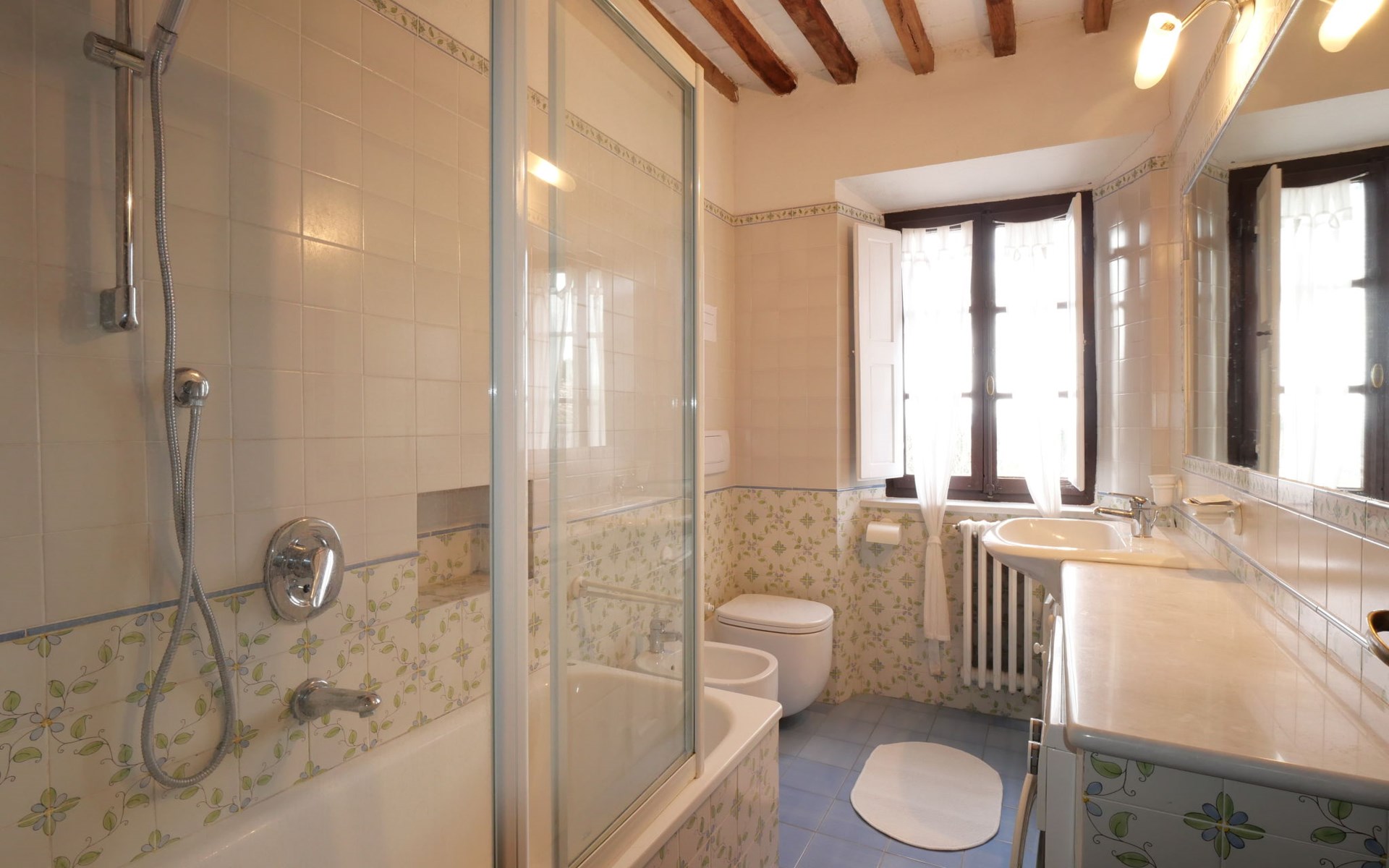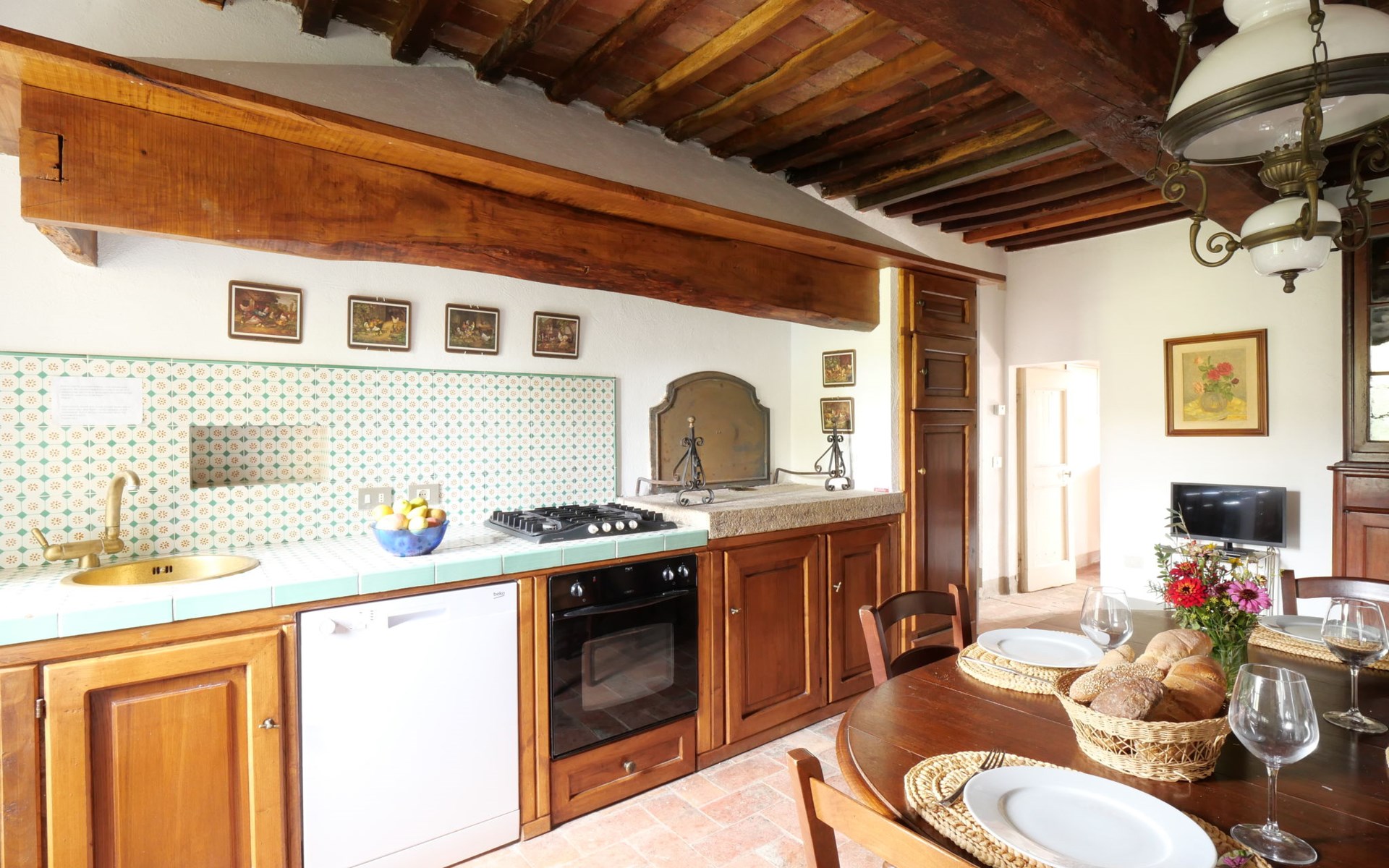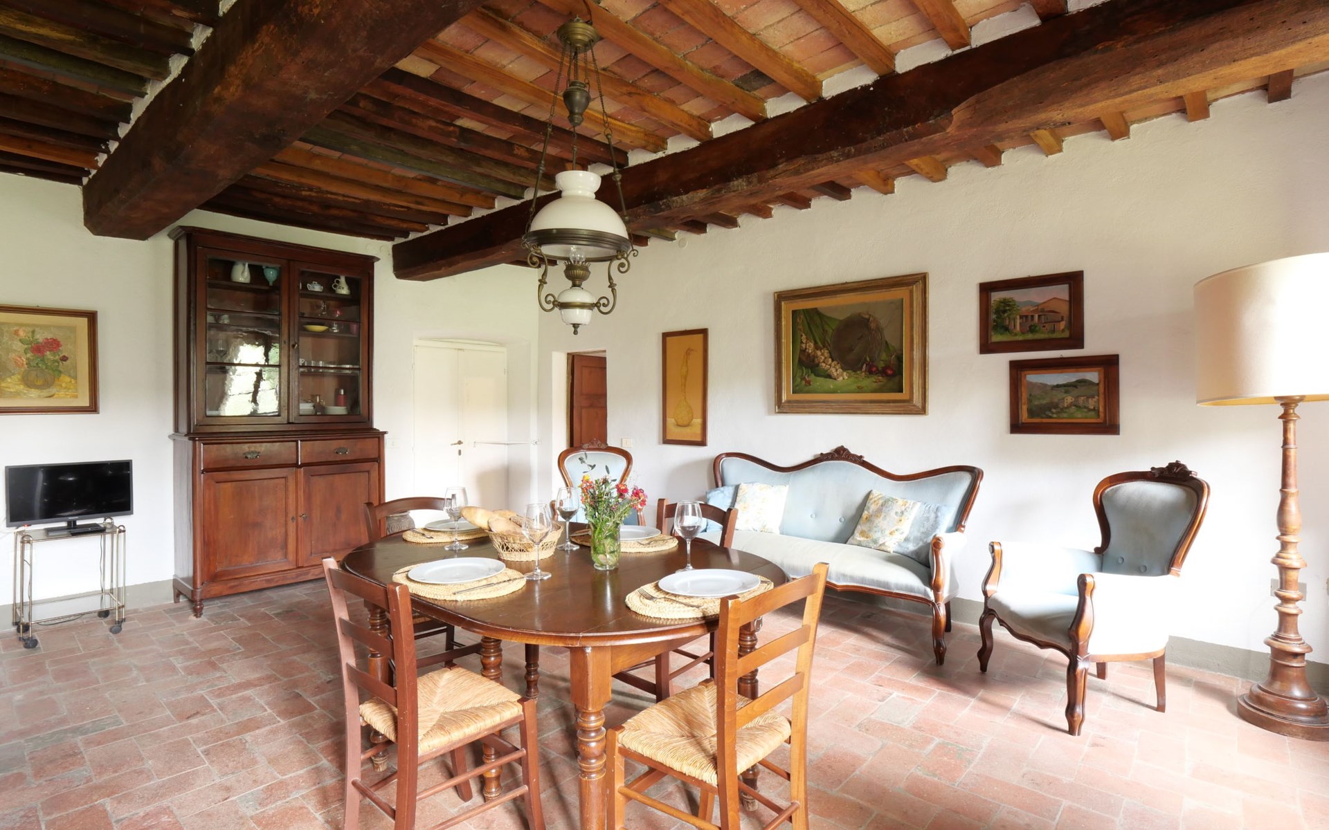 Beautiful, historical large working farm "Tenuta di Peruzzo", from the 18th century, surrounded by trees and vineyards. 10 apartments in the residence. 3.5 km from the centre of Sassofortino, 4 km from the centre of Roccatederighi, in a secluded, quiet, sunny position, 35 km from the sea, in the countryside. For shared use: park 450 ha, garden (not fenced) with plants and trees, pond, swimming pool (12 x 6 m, depth 150 cm, seasonal availability: 15.May. - 15.Oct.). Shower/WC in the pool area, children's pool, outdoor shower, table tennis, children's playground. Heating available only from 22.Oct. - 15.Apr.. Motor access (500 m via unmade road). Parking on the premises. Shop 3.5 km, supermarket 7 km, restaurant 3 km, bar 3.5 km, bus stop 3 km, ferry "Piombino" 60 km, sandy beach "Follonica" 36 km. Golf course (18 hole) 28 km, walking paths from the house 20 m. Nearby attractions: Roccastrada 16 km, Grosseto 30 km, Castiglione della Pescaia 42 km, Siena 60 km. Please note: car recommended. On the estate animal husbandry. The owner lives on the same property.