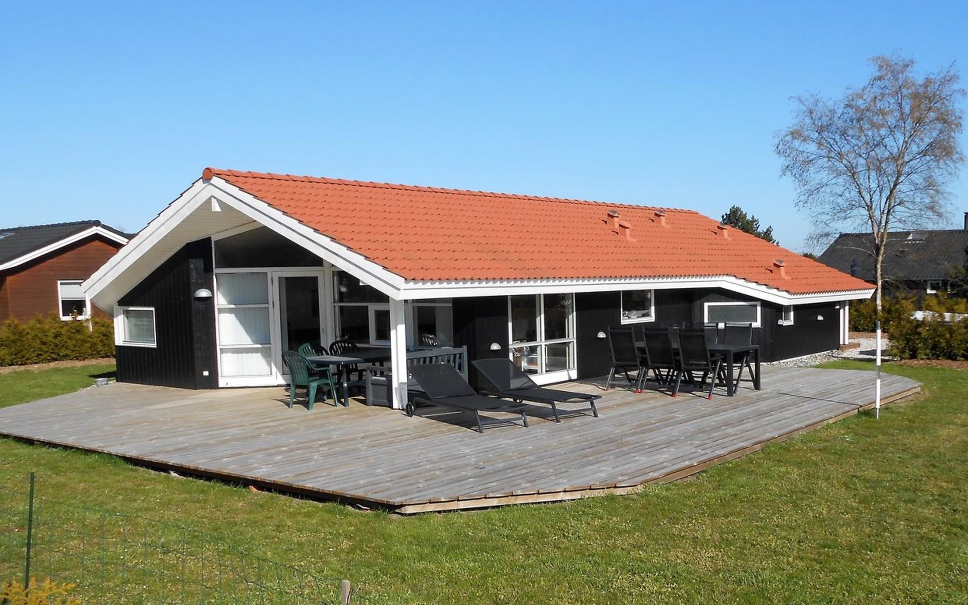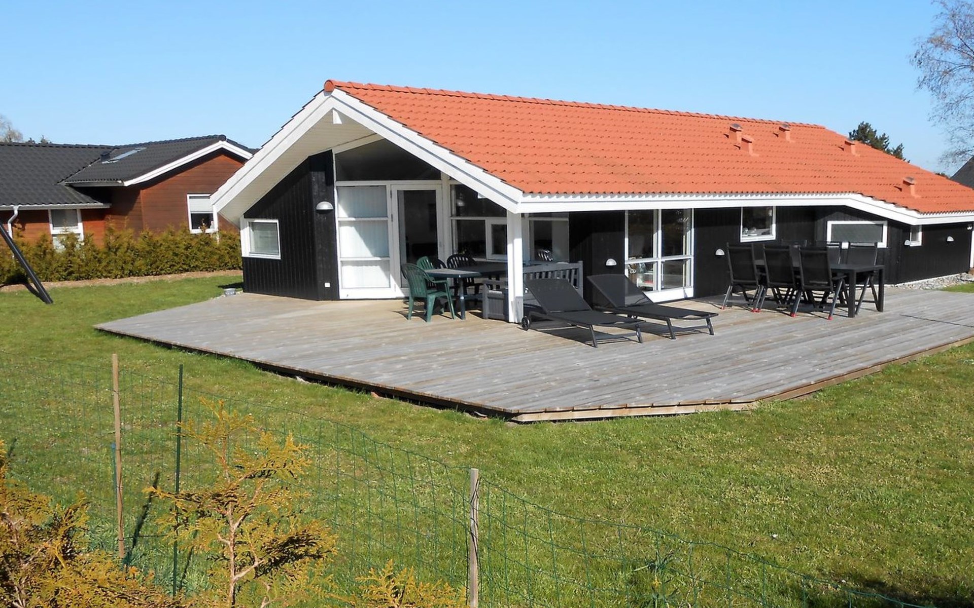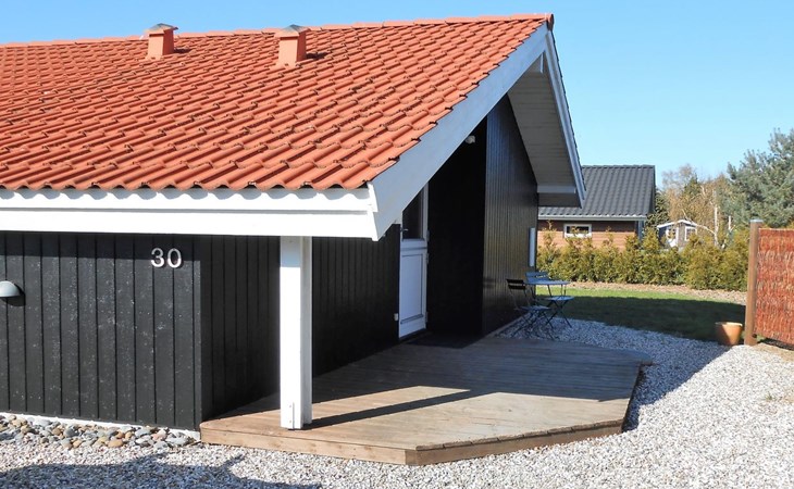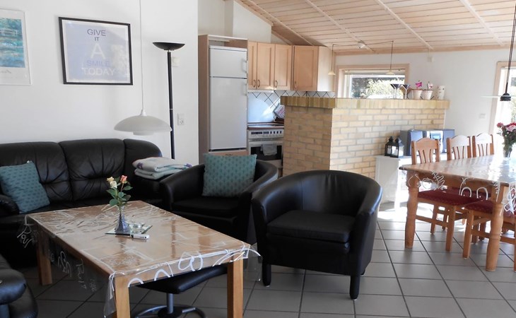 Single-family house, built in 2001. 1 km from the sea. Private: property 701 m2, well-kept garden. Terrace (22 m2), barbecue, children's playground (swing). In the house: sauna, washing machine, tumble dryer. Parking at the house. Grocery 850 m. Golf course 2.5 km. The owner does not accept any youth groups.