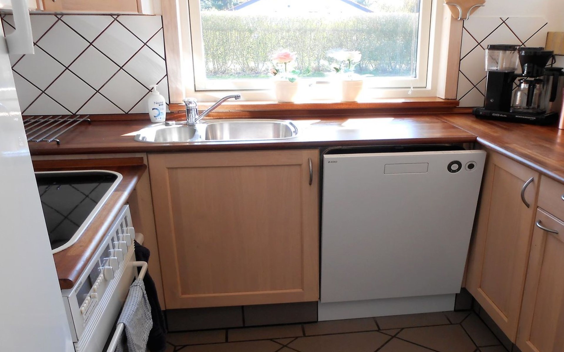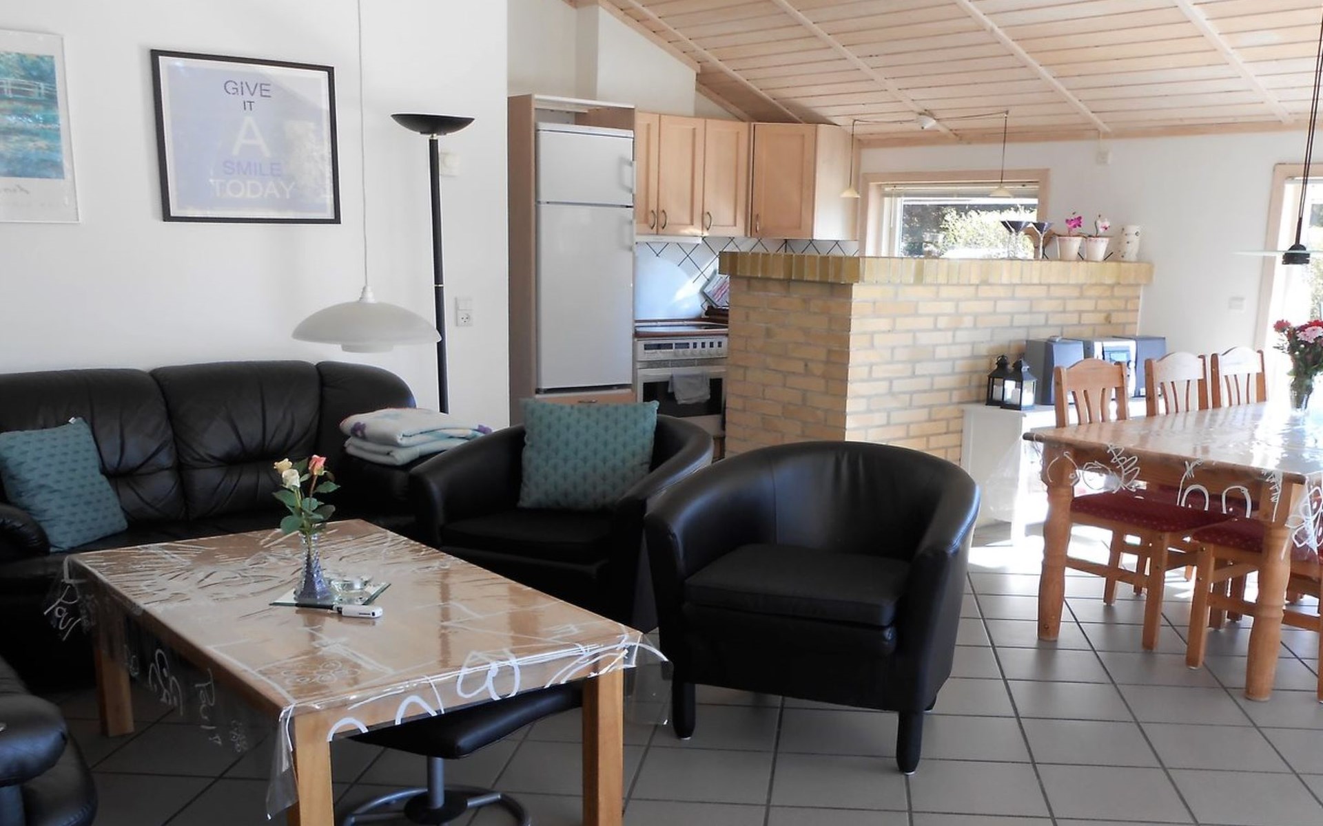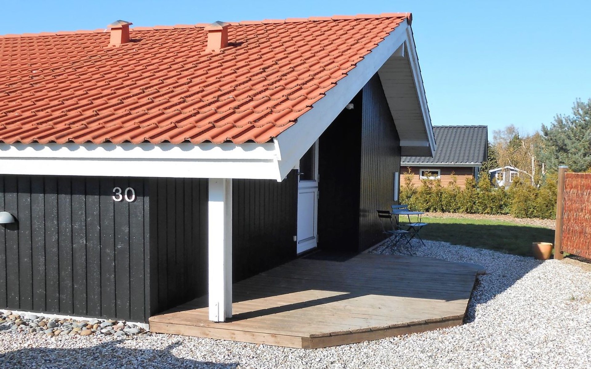 Single-family house, built in 2001. 1 km from the sea. Private: property 701 m2, well-kept garden. Terrace (22 m2), barbecue, children's playground (swing). In the house: sauna, washing machine, tumble dryer. Parking at the house. Grocery 850 m. Golf course 2.5 km. The owner does not accept any youth groups.