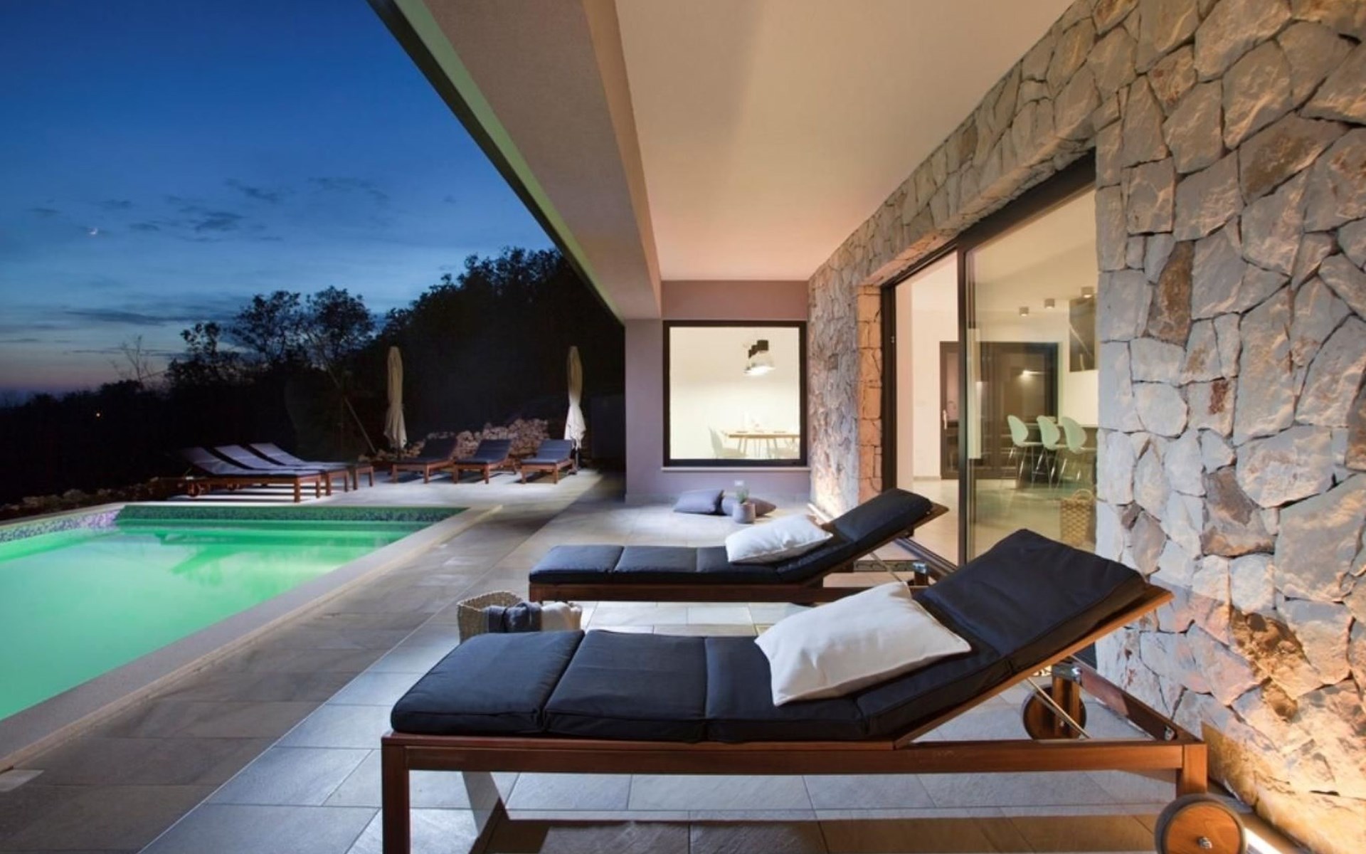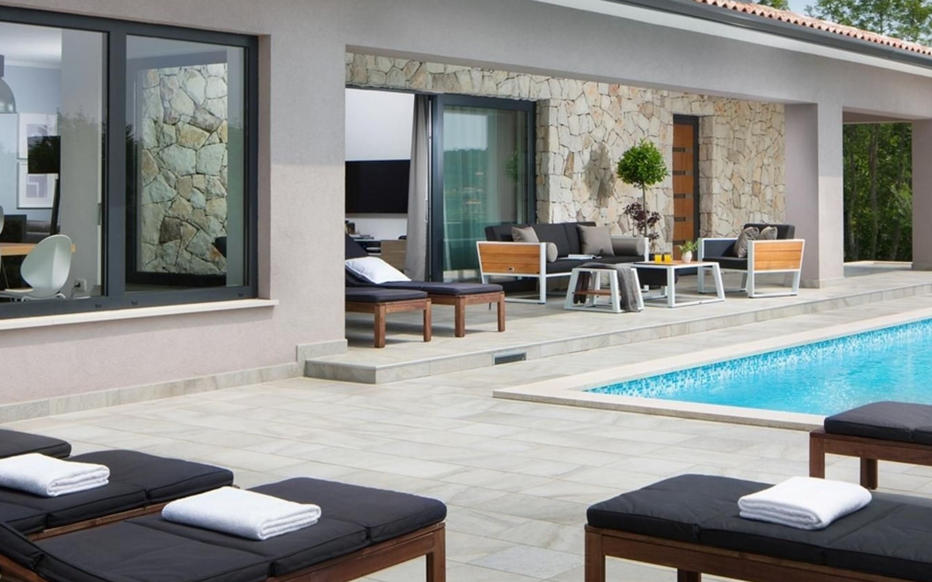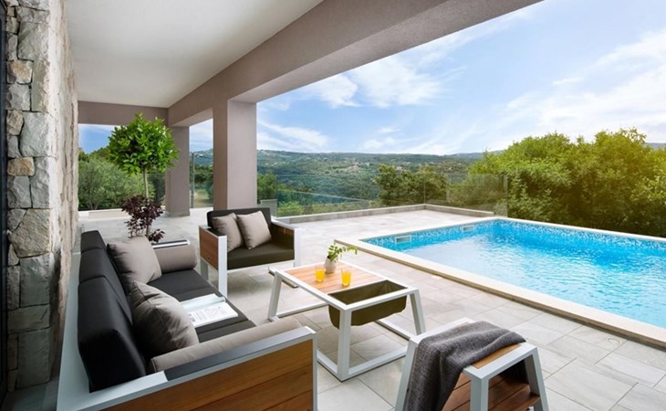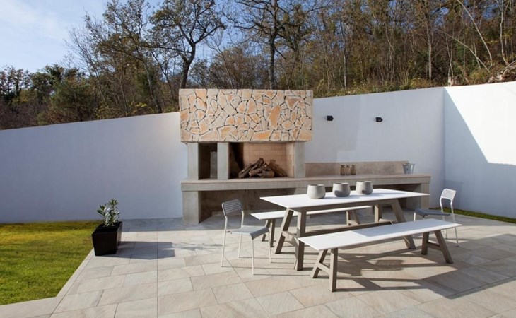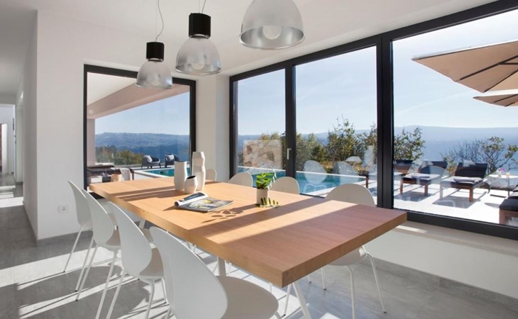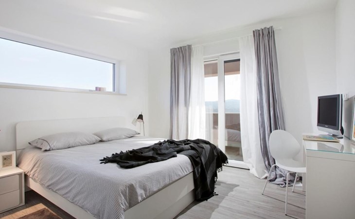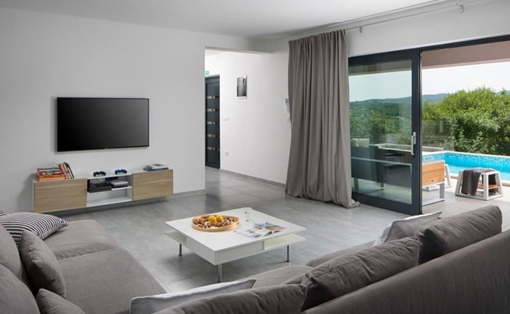 For a total of 8 guests, Villa Arsia offers 4 cosy and modernly designed bedrooms, 3 of them having their own spacious en-suite bathrooms. Modern style furniture and decor spreads over the whole 200m2 big interior. Natural materials, neutral colours, and the elimination of unnecessary detailing are found on both floors of Villa Arsia. The wide-open kitchen is fully equipped, the roomy living room has everything for fun film nights with the family, and it has also a direct exit to the terrace where the fun and memorable nights continue.