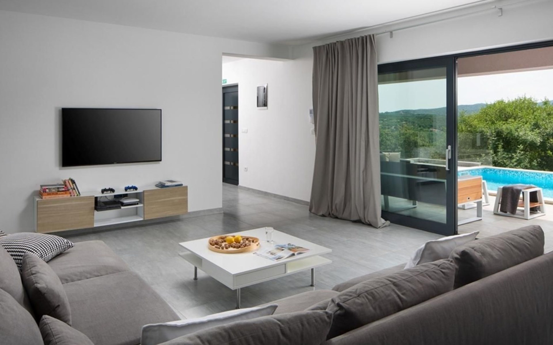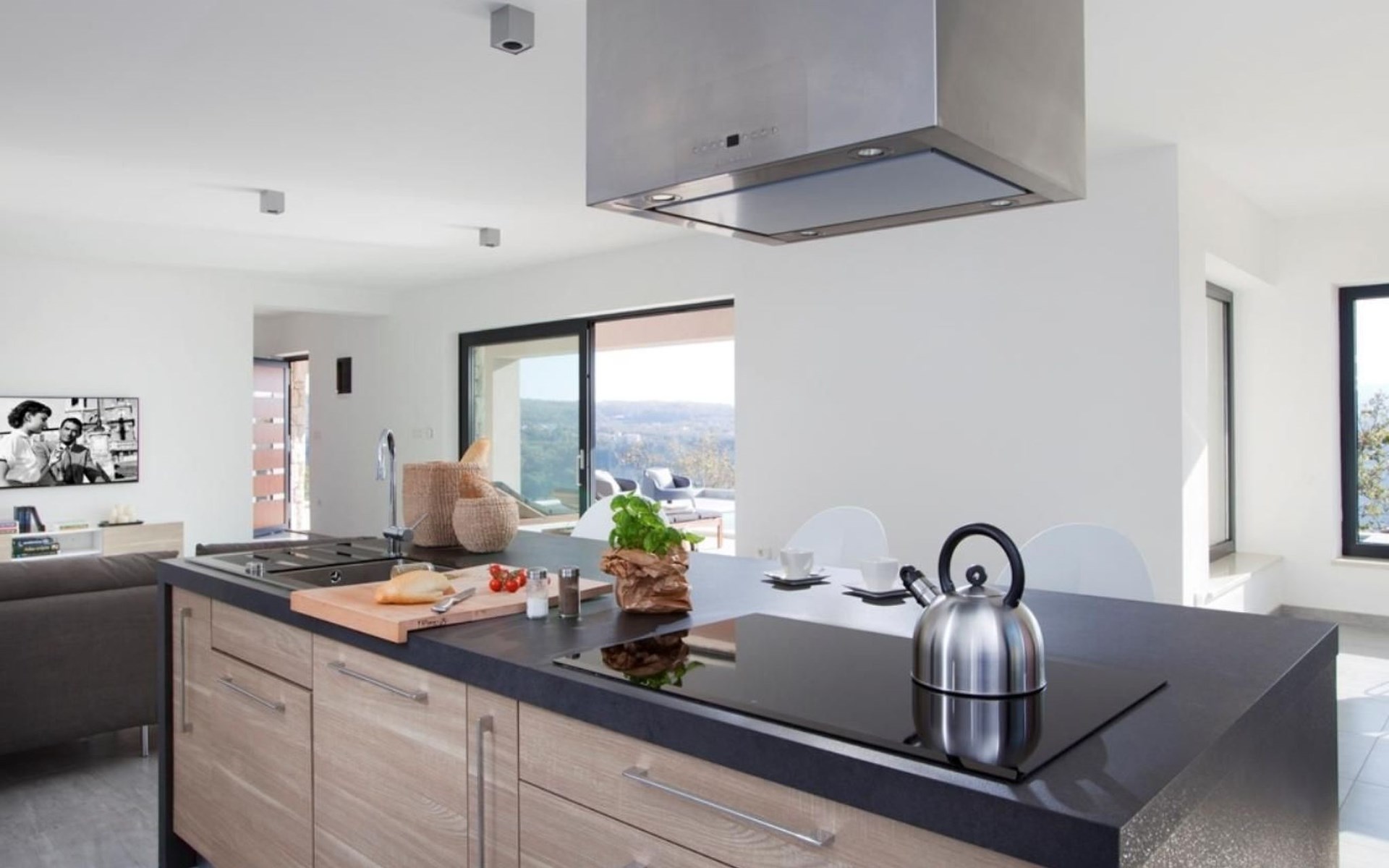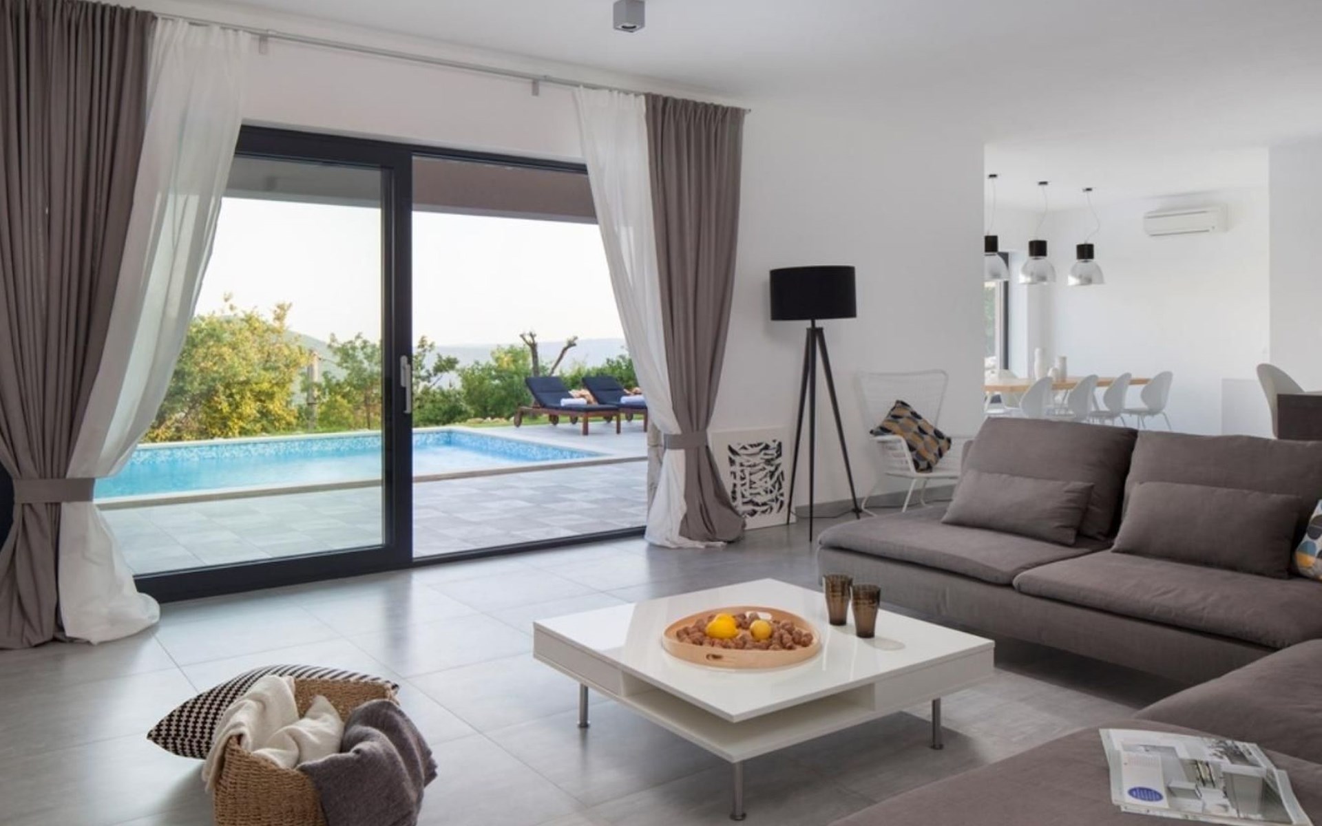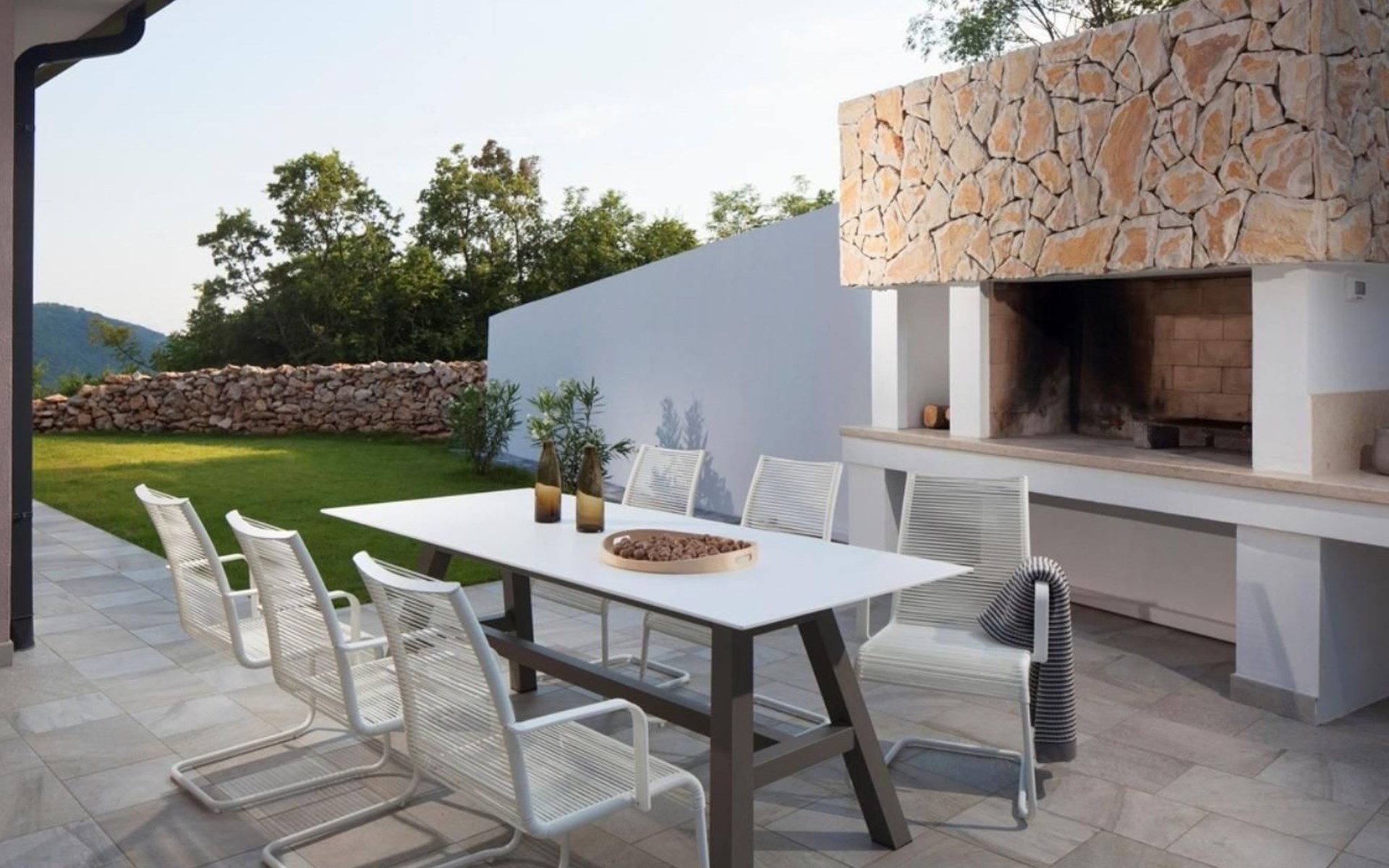 For a total of 8 guests, Villa Arsia offers 4 cosy and modernly designed bedrooms, 3 of them having their own spacious en-suite bathrooms. Modern style furniture and decor spreads over the whole 200m2 big interior. Natural materials, neutral colours, and the elimination of unnecessary detailing are found on both floors of Villa Arsia. The wide-open kitchen is fully equipped, the roomy living room has everything for fun film nights with the family, and it has also a direct exit to the terrace where the fun and memorable nights continue.
